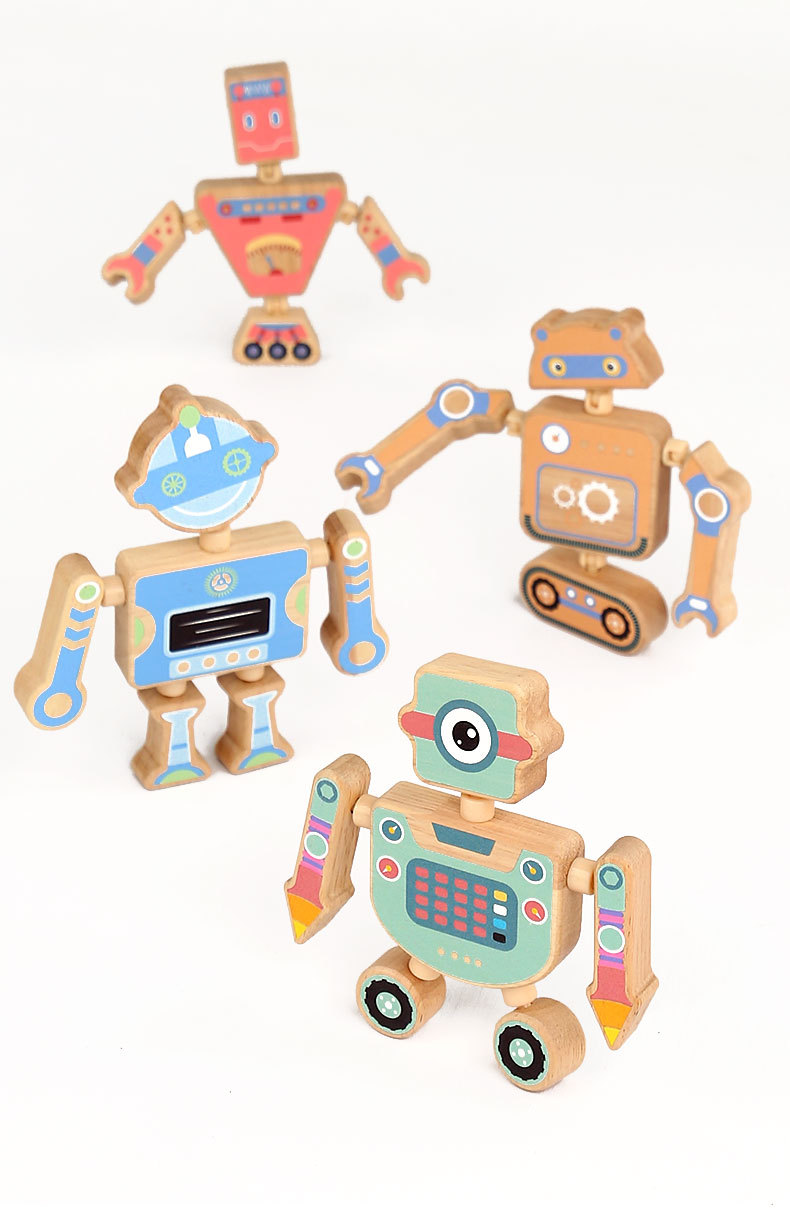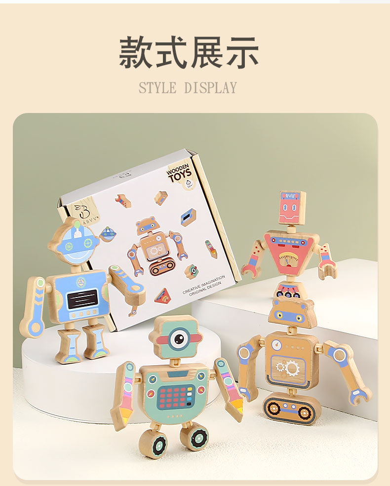 로봇 세트 초등학생 데스크탑 장난감 어린이 분해 및 조립 건물 블록 나무 장난감 보조 단단한 나무스토어 가기