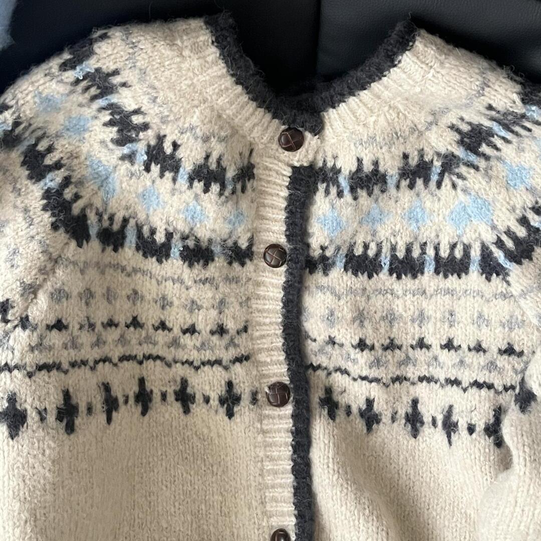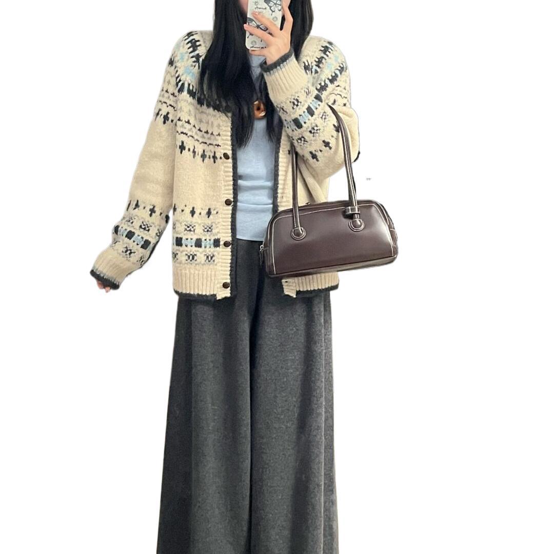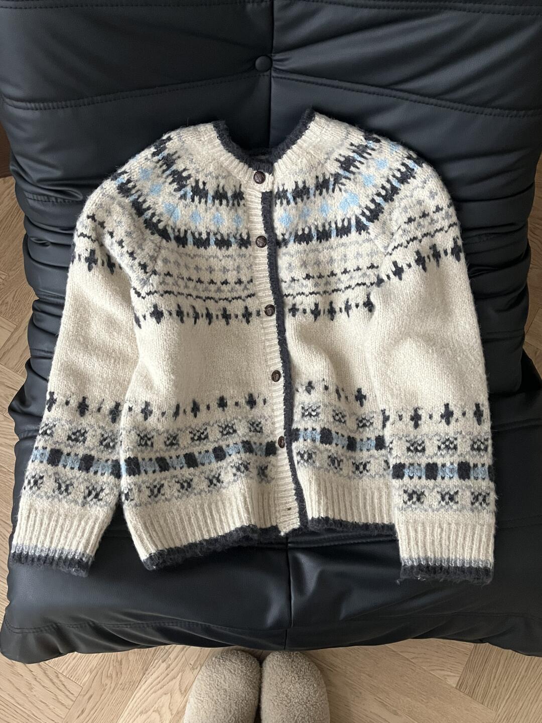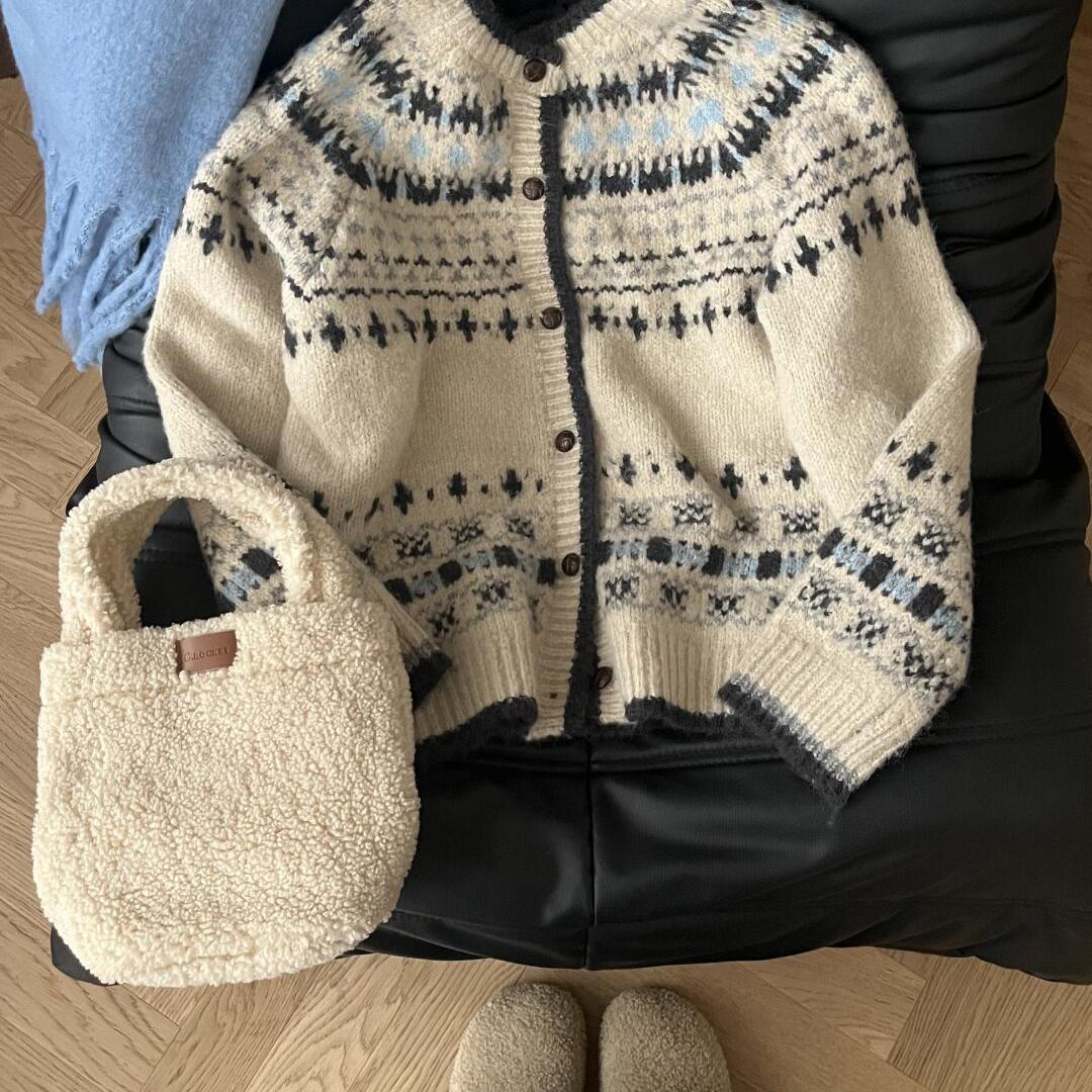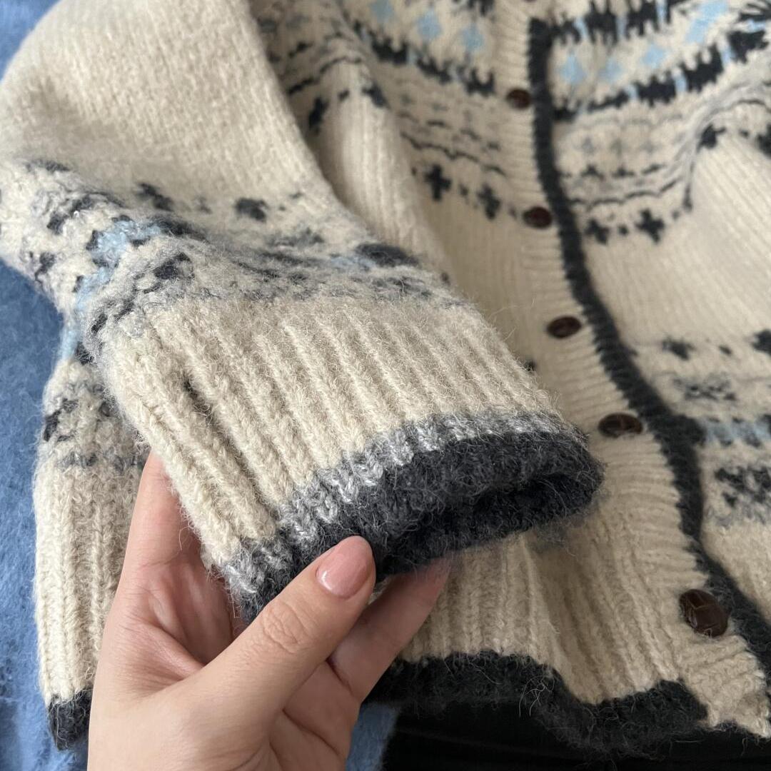 빈티지 페어 아일랜드 스웨터 카디건 여성 가을과 겨울 2025 새로운 디자인 감각 겉옷 두꺼운 울 고대 코트스토어 가기