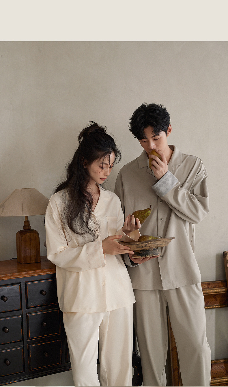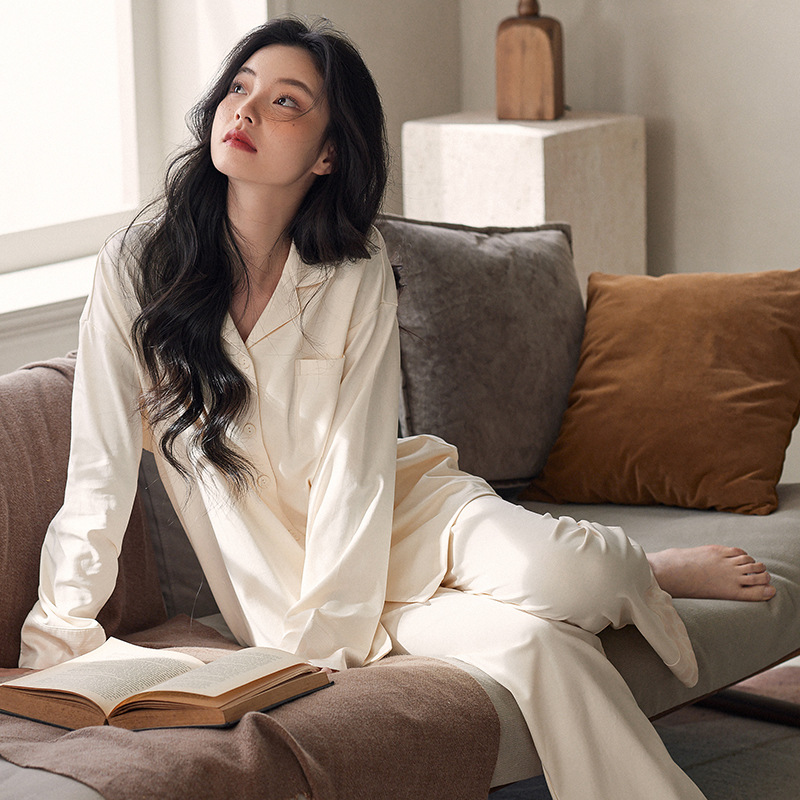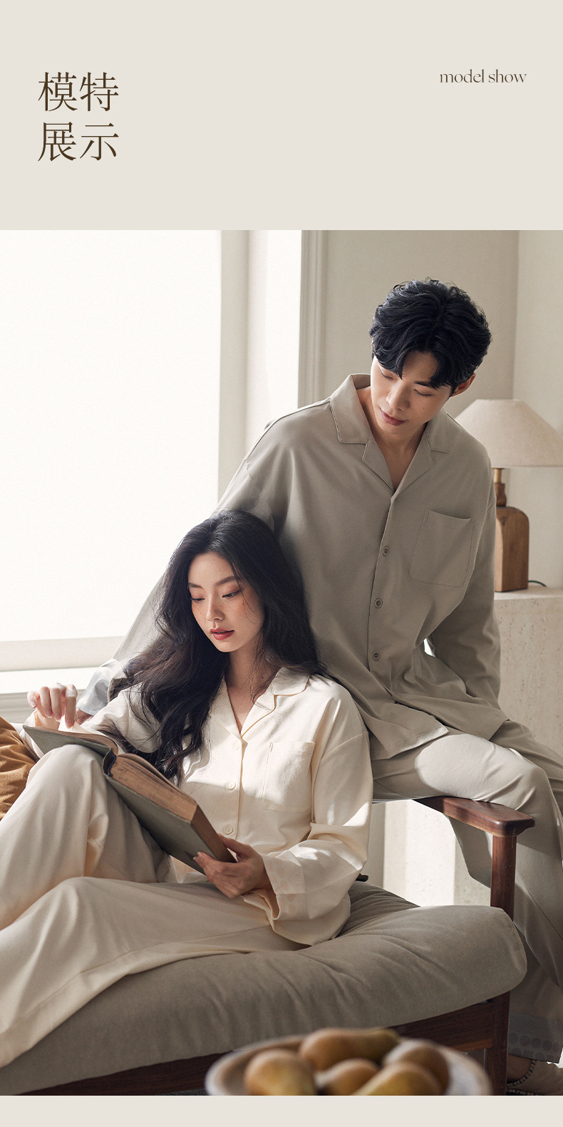 봄과 가을 커플 잠옷 긴팔 바지 여성용 모데 일 코튼 단색 최고급 가을과 겨울 남성 홈 의류 세트스토어 가기