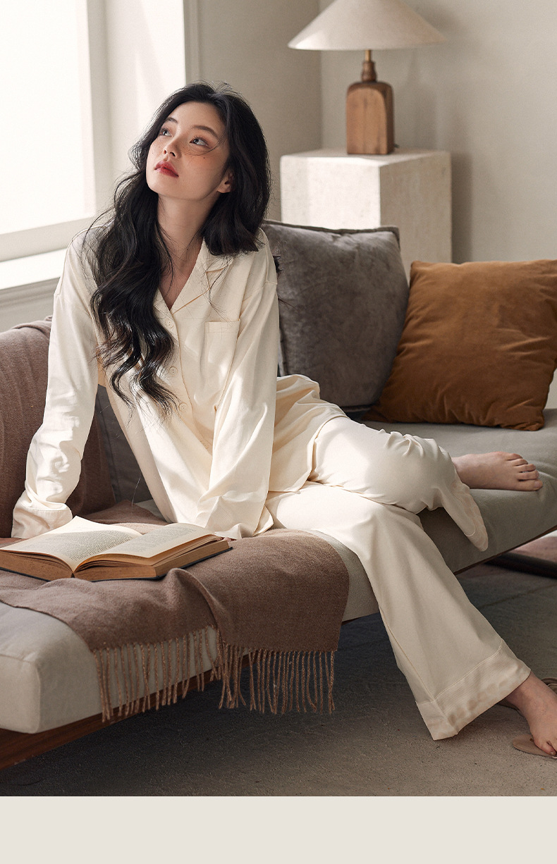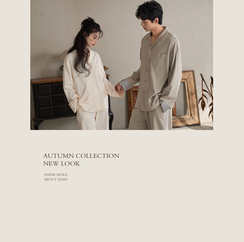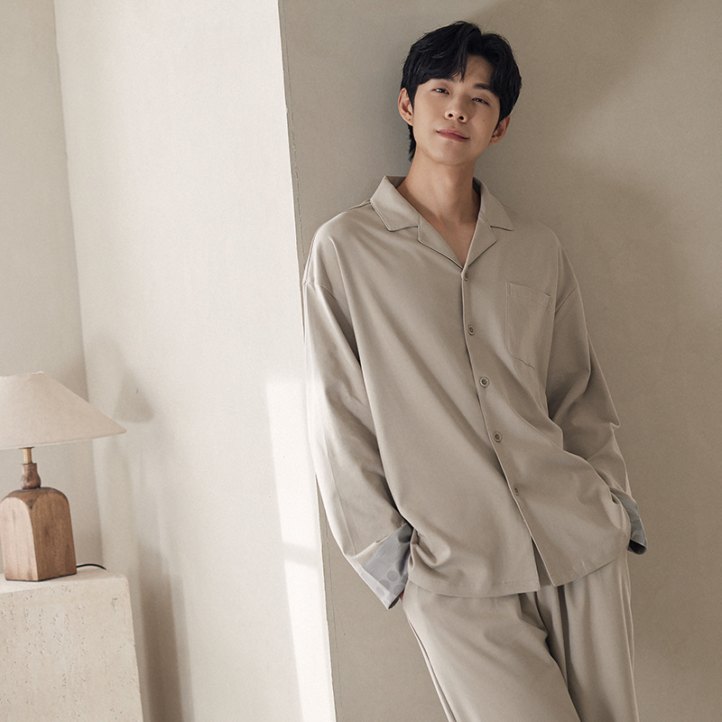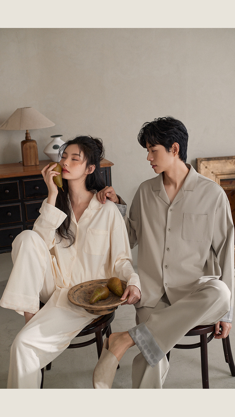 봄과 가을 커플 잠옷 긴팔 바지 여성용 모데 일 코튼 단색 최고급 가을과 겨울 남성 홈 의류 세트스토어 가기