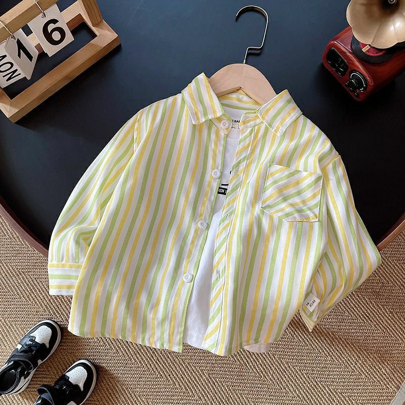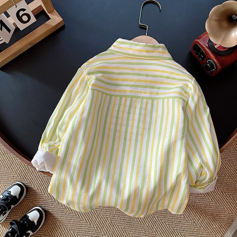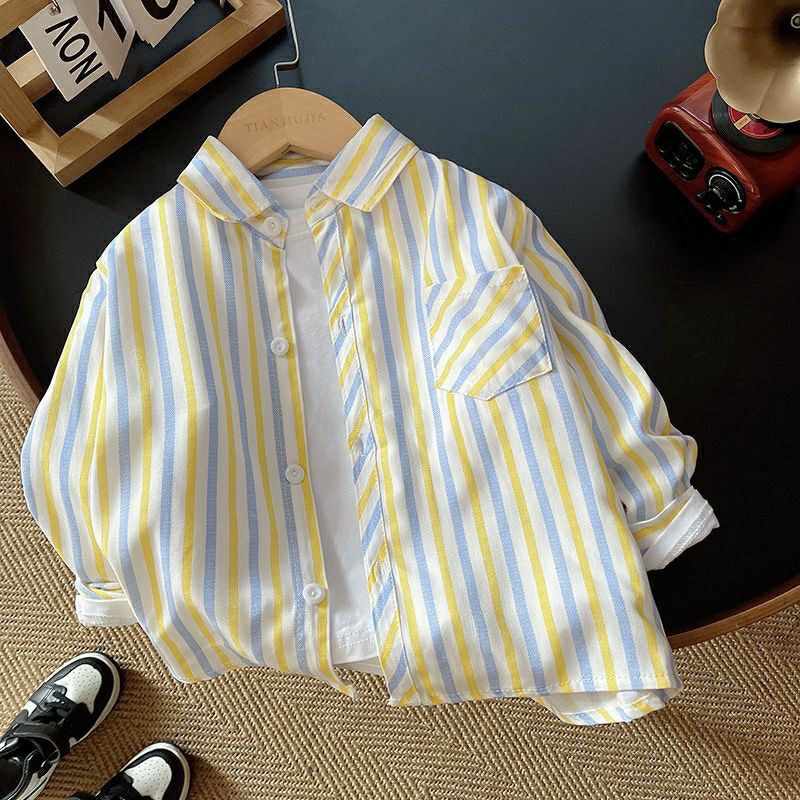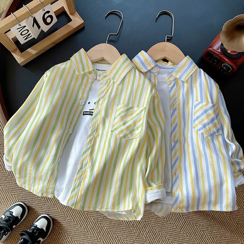 어린이 줄무늬 셔츠 한국 소년의 봄과 가을 유행 아기의 최고 어린이 유행 캐주얼 셔츠 중 큰 어린이스토어 가기