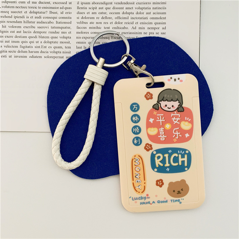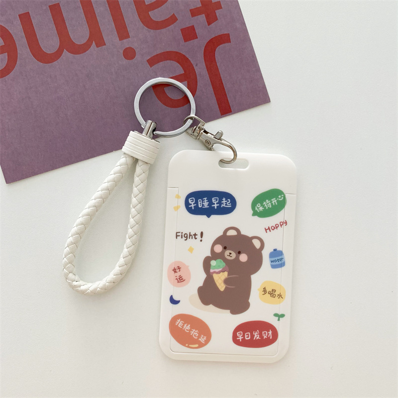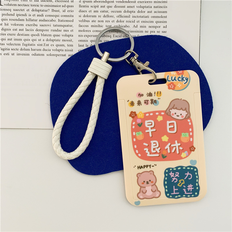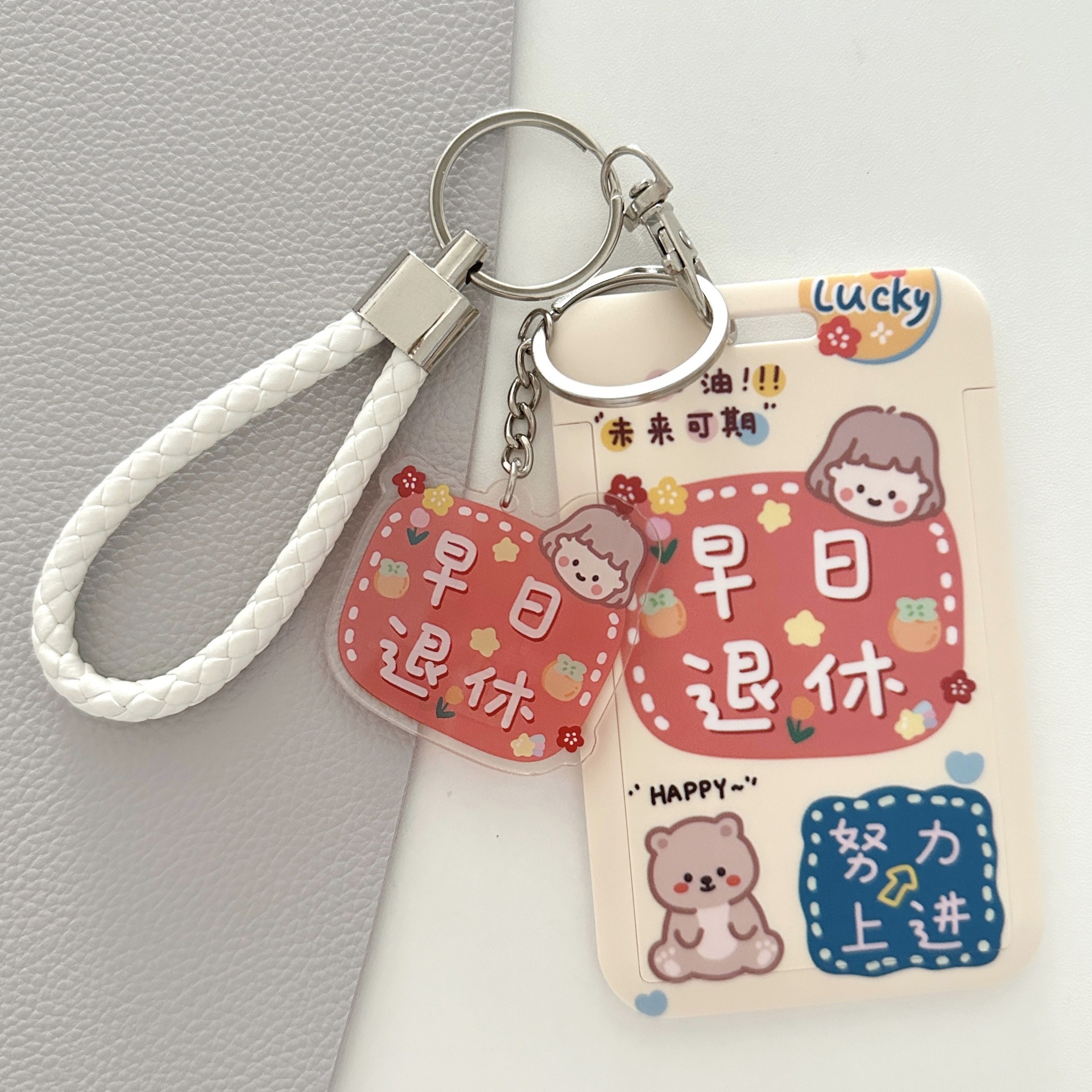 귀여운 버스 카드 보호 커버 학생 식사 카드 캠퍼스 액세스 제어 인증서 브랜드 도어 카드 커버 키 체인 통합 끈스토어 가기