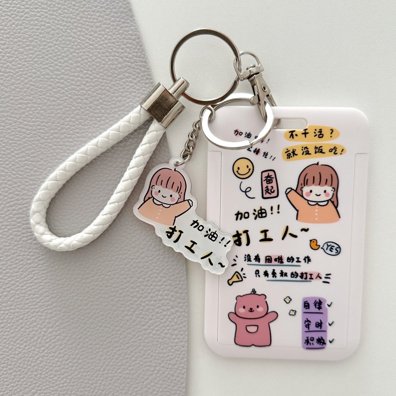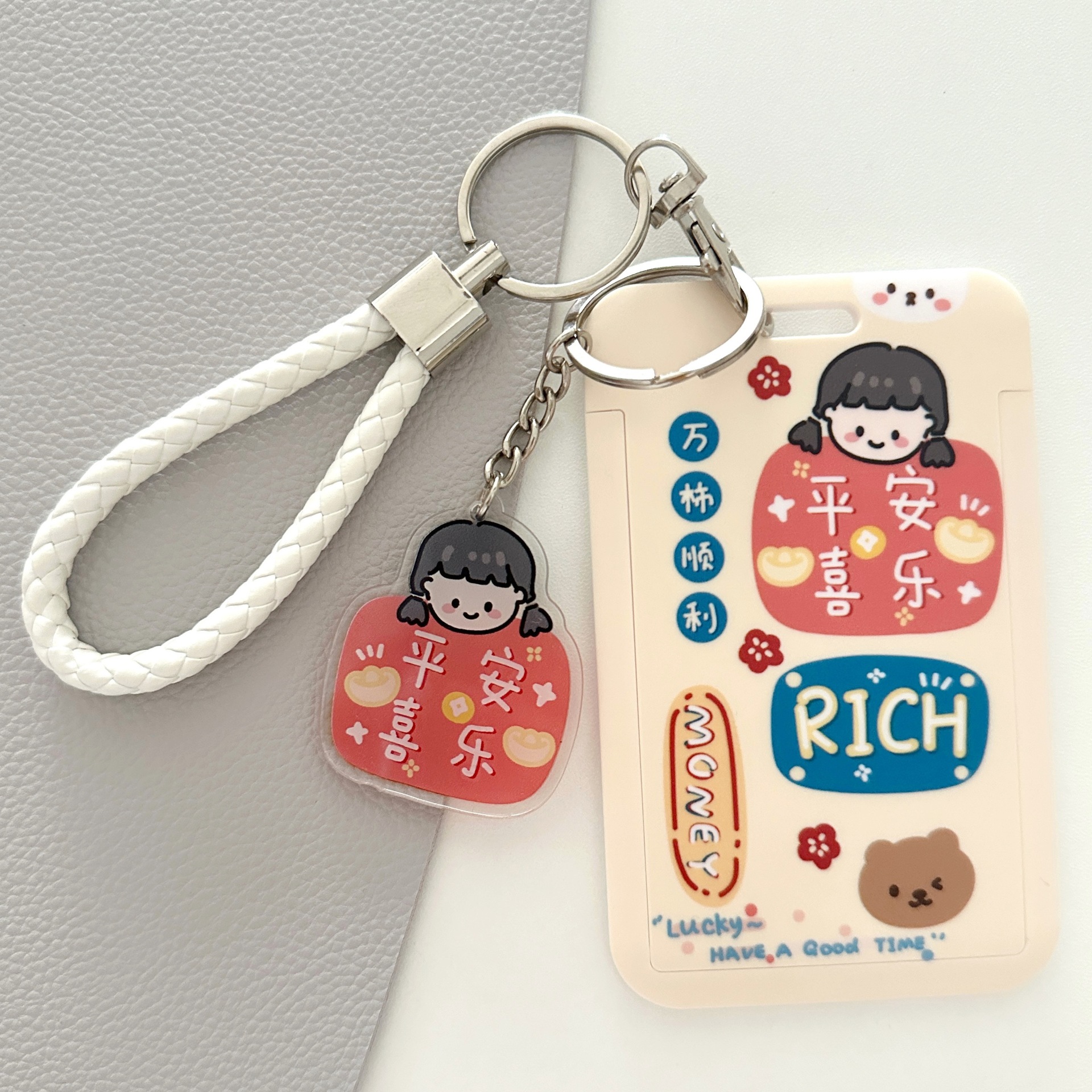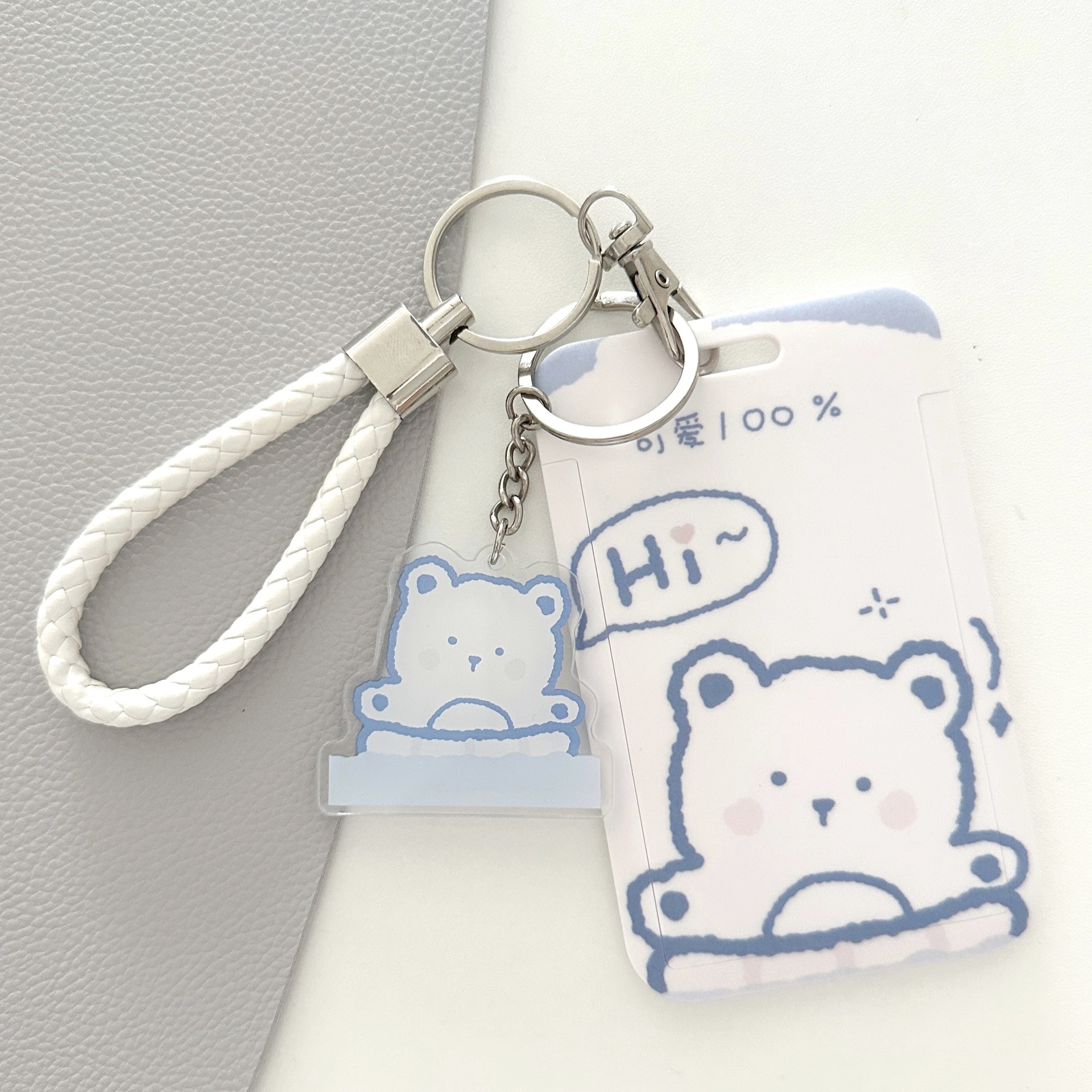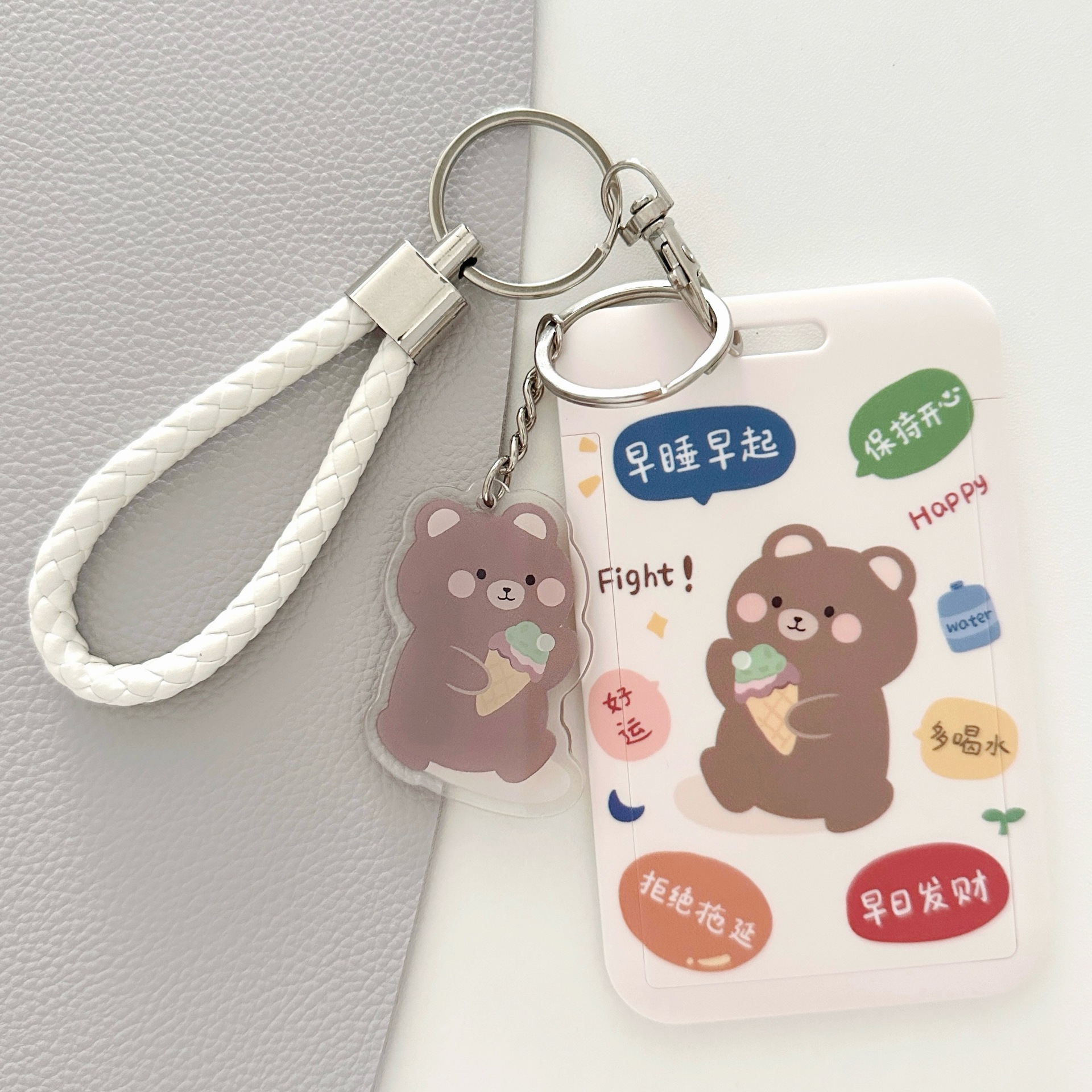귀여운 버스 카드 보호 커버 학생 식사 카드 캠퍼스 액세스 제어 인증서 브랜드 도어 카드 커버 키 체인 통합 끈스토어 가기