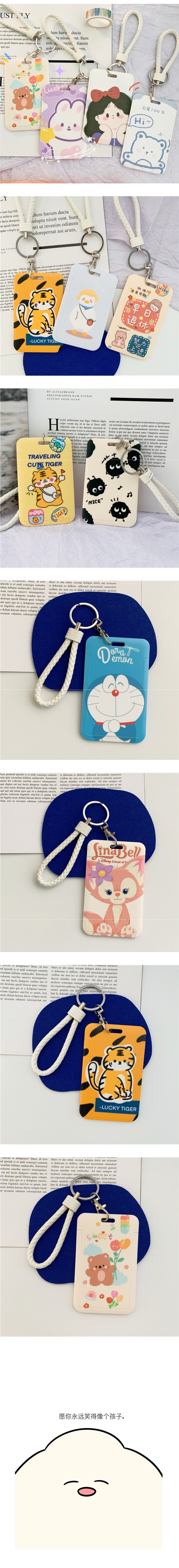 귀여운 버스 카드 보호 커버 학생 식사 카드 캠퍼스 액세스 제어 인증서 브랜드 도어 카드 커버 키 체인 통합 끈