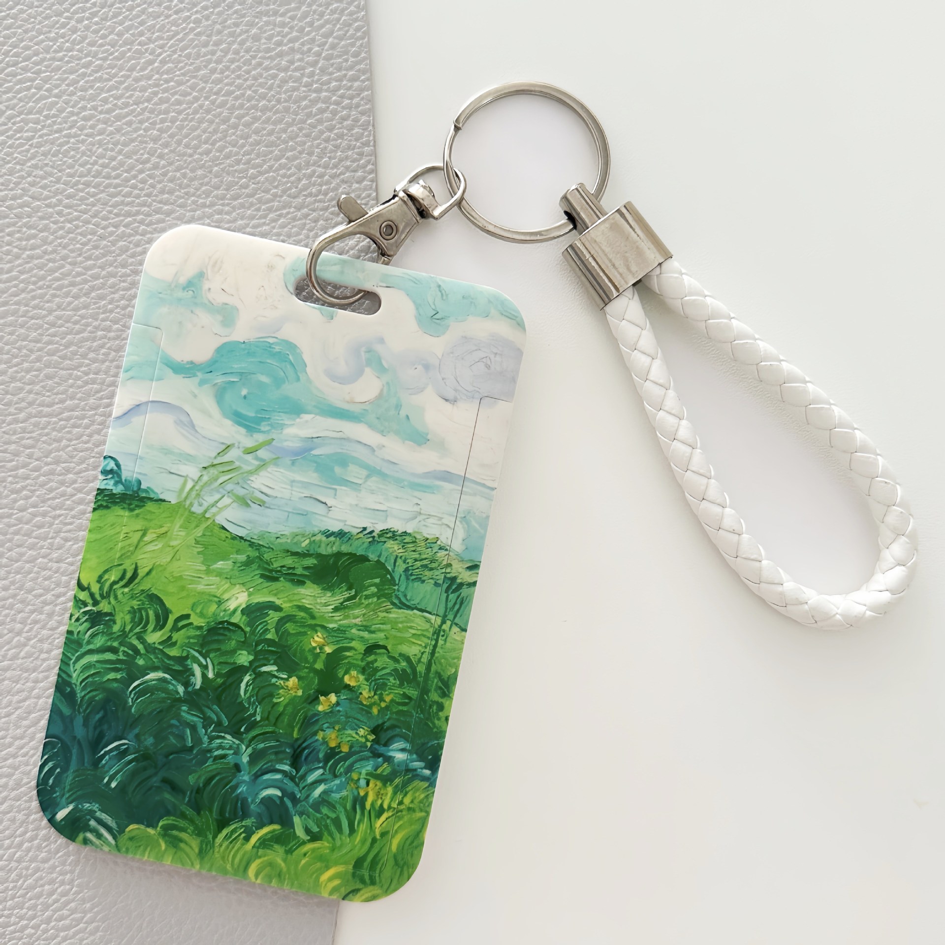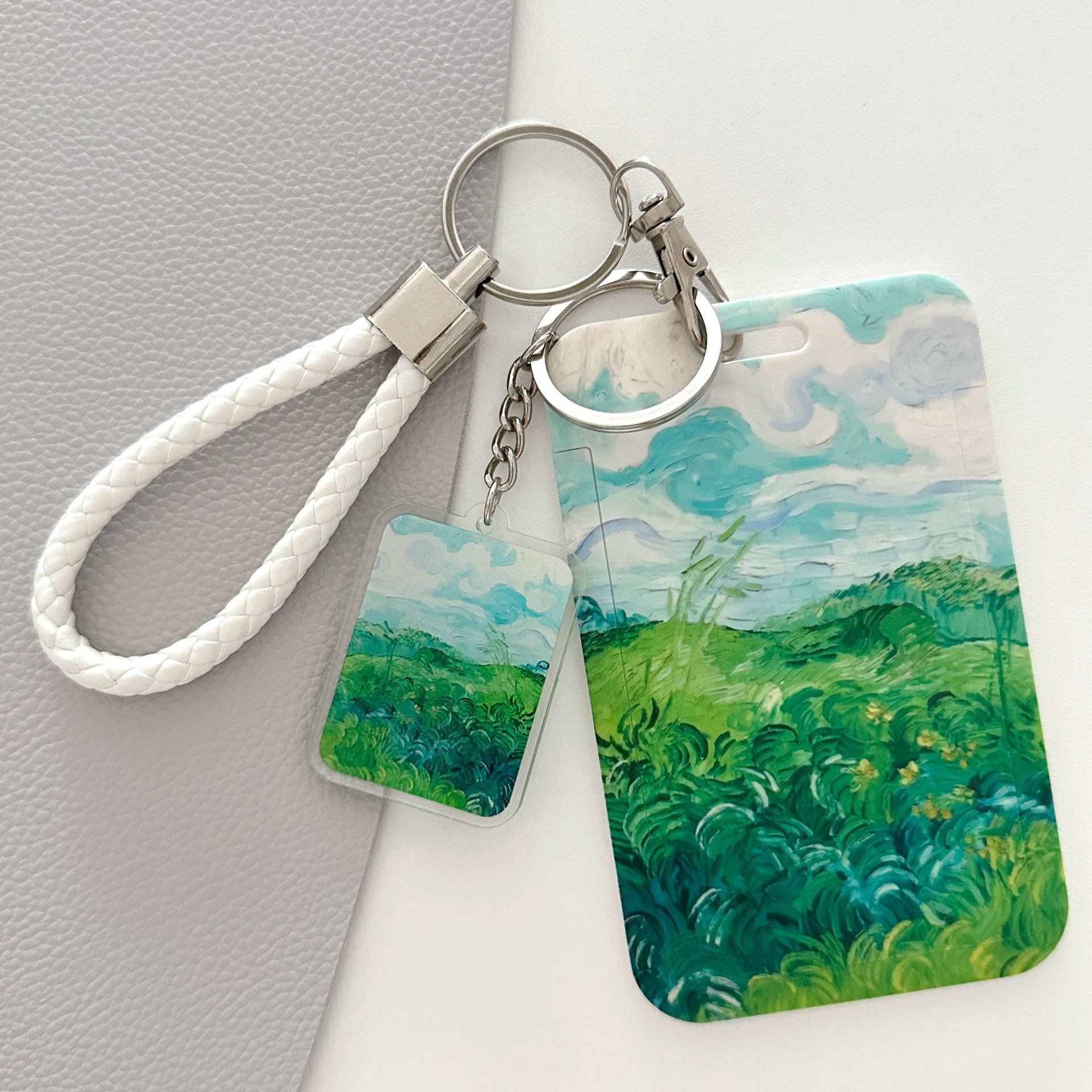 • 밀밭 유화 카드홀더 + 흰줄 + 같은 스타일의 펜던트 (신분증 사이즈 카드 수납)