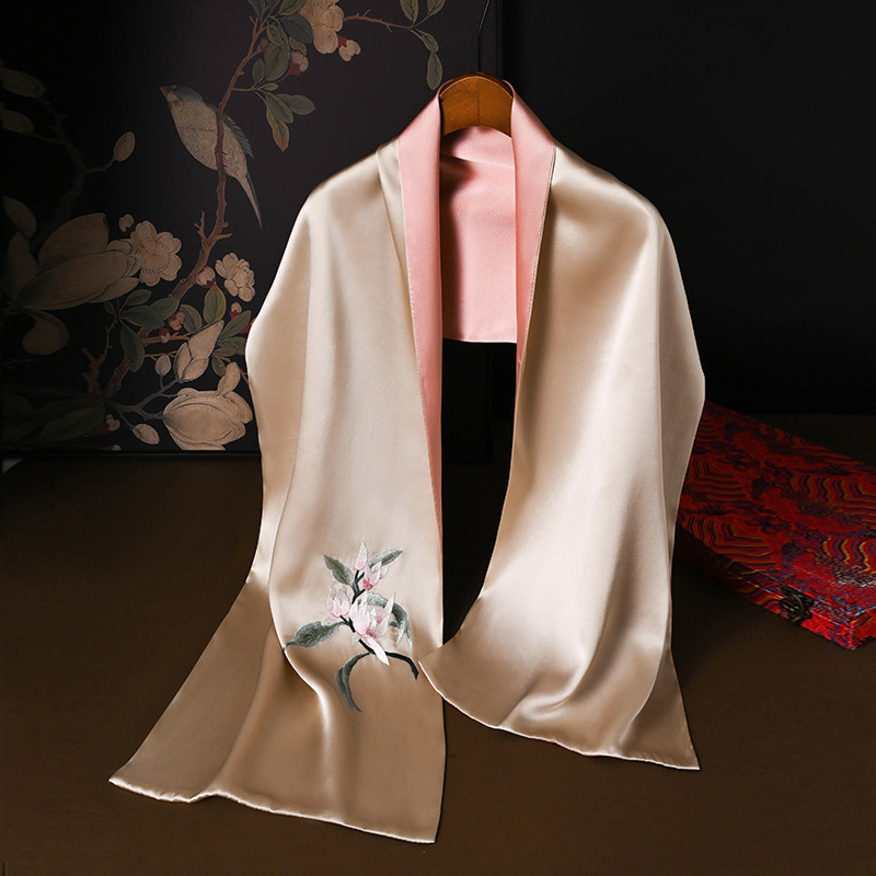 소주 자수 보물 실크 실크 스카프 소주 자수 수제 자수 중국 스타일 뽕나무 실크 목도리 스카프 선물