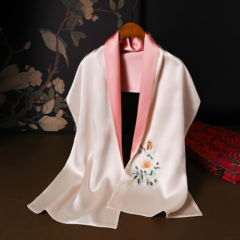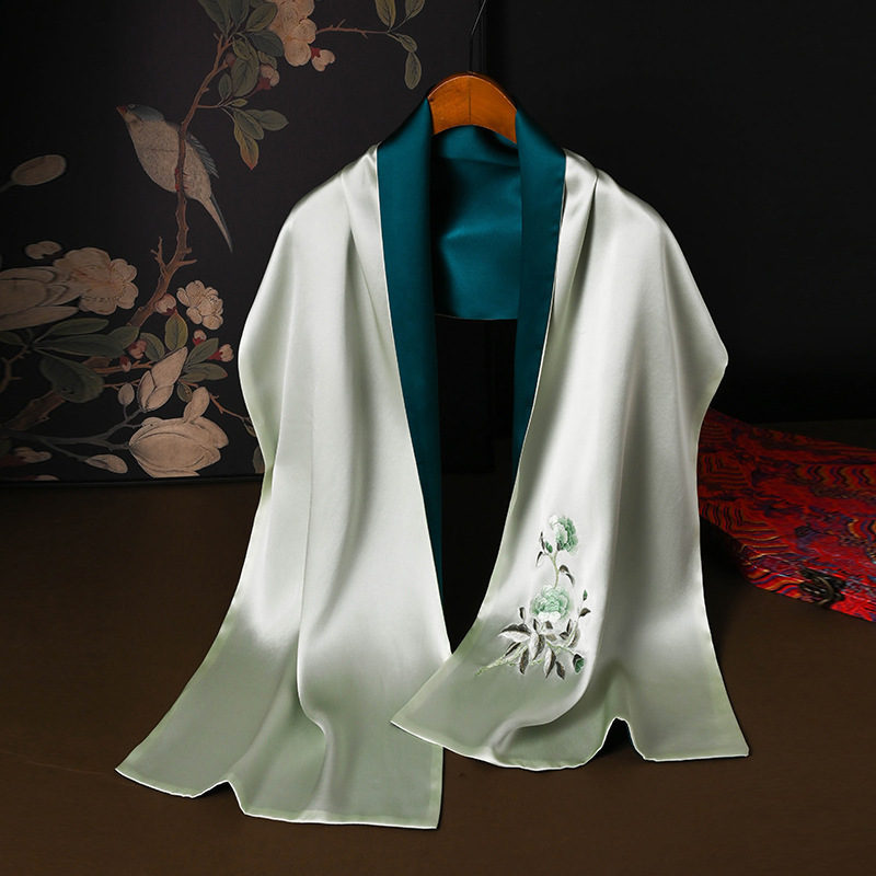새로운 하이 엔드 실크 스카프 수 자수 봄 양면 뽕나무 실크 자수 긴 스카프 어머니 선물 상자 스카프