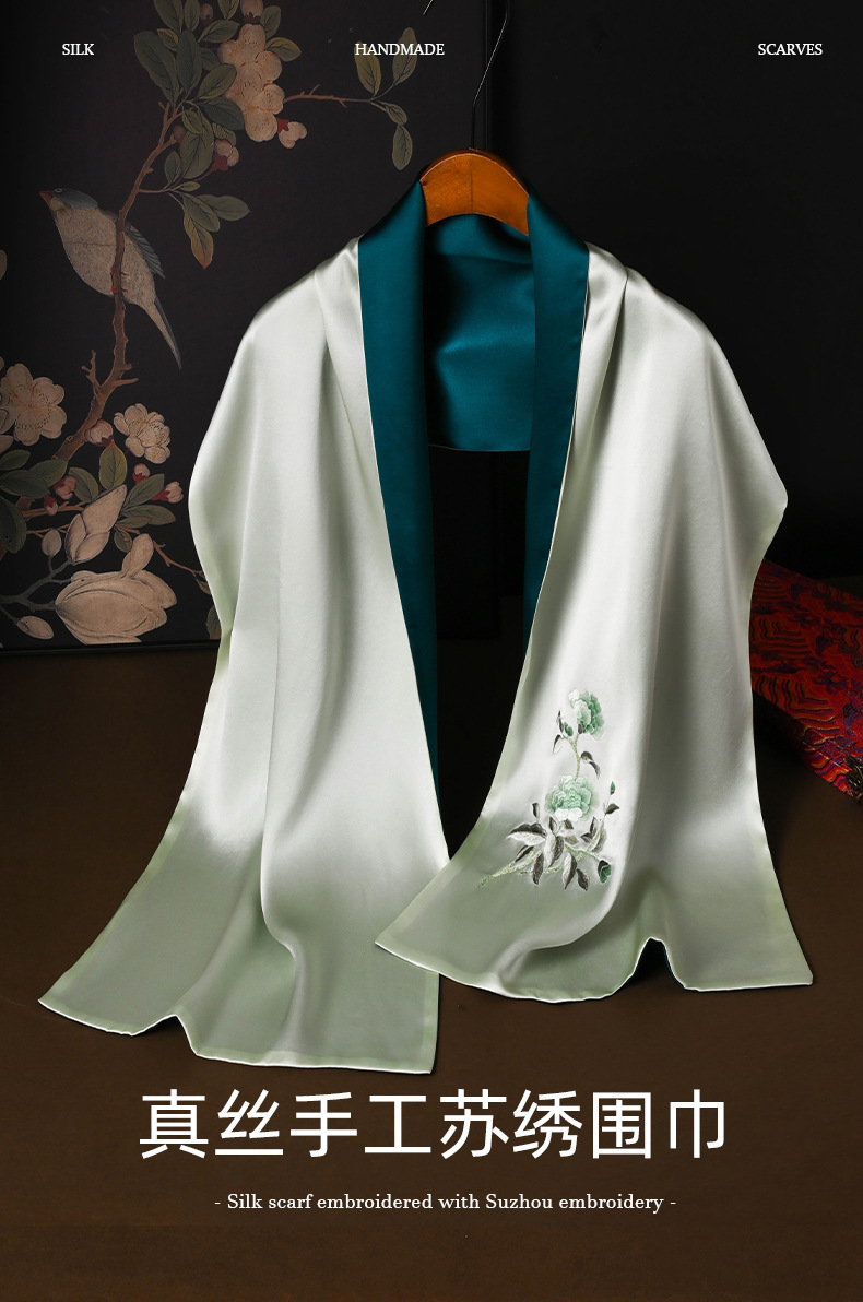 새로운 하이 엔드 실크 스카프 수 자수 봄 양면 뽕나무 실크 자수 긴 스카프 어머니 선물 상자 스카프스토어 가기