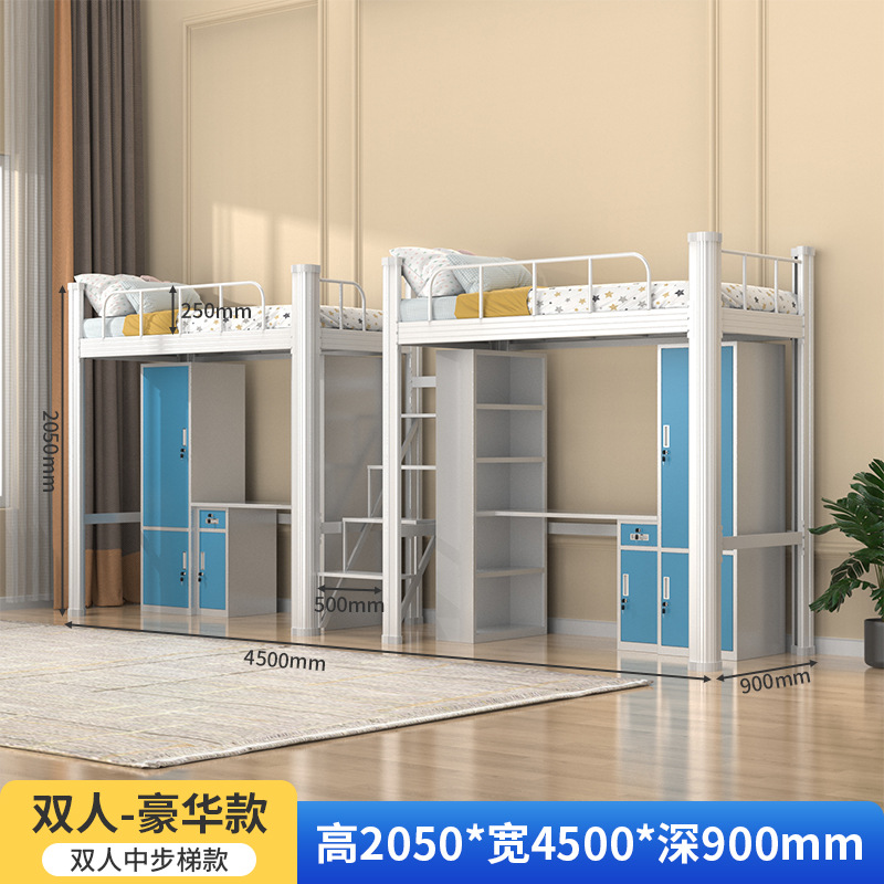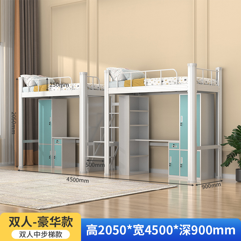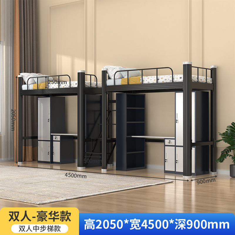 침대 더 낮은 테이블 조합 침대 대학 학생 기숙사 상하 이층 침대 아이언 프레임 벙크 침대 아파트 작은 침대 더 낮은 테이블 아파트 침대
