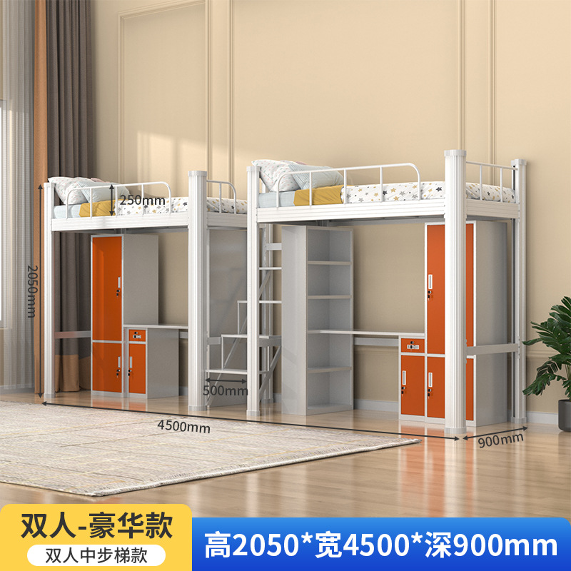 • 침대 상부 및 하부 테이블 2인용 중단 사다리 모델 [주황색]