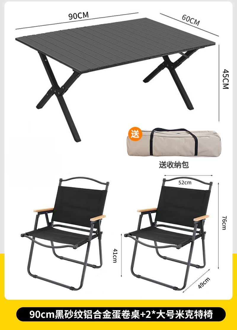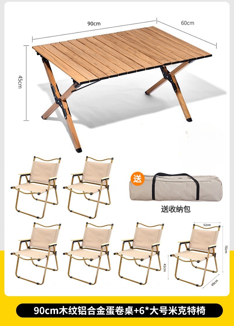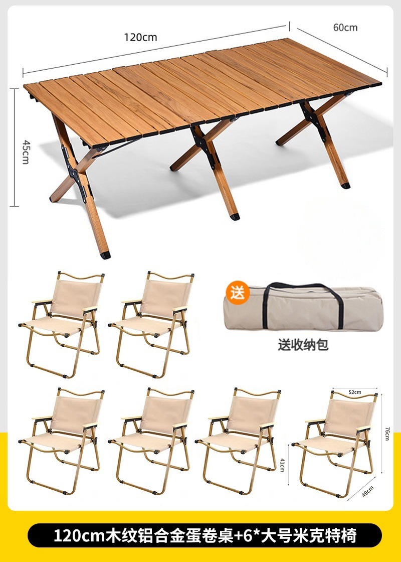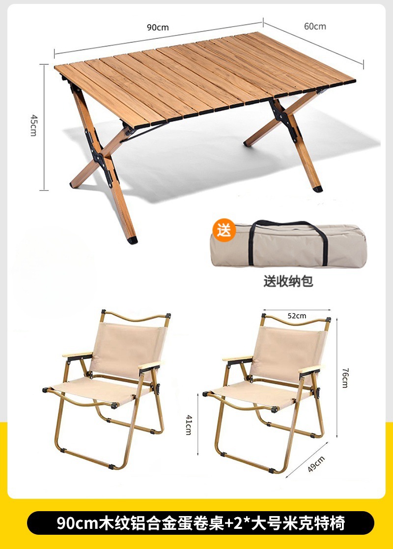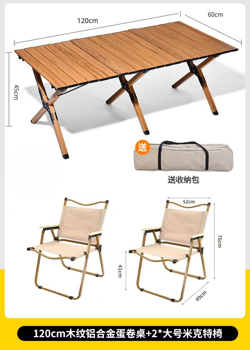 • 대형 모래 나뭇결 알루미늄 합금 계란말이 테이블 + 카키색 의자 2개