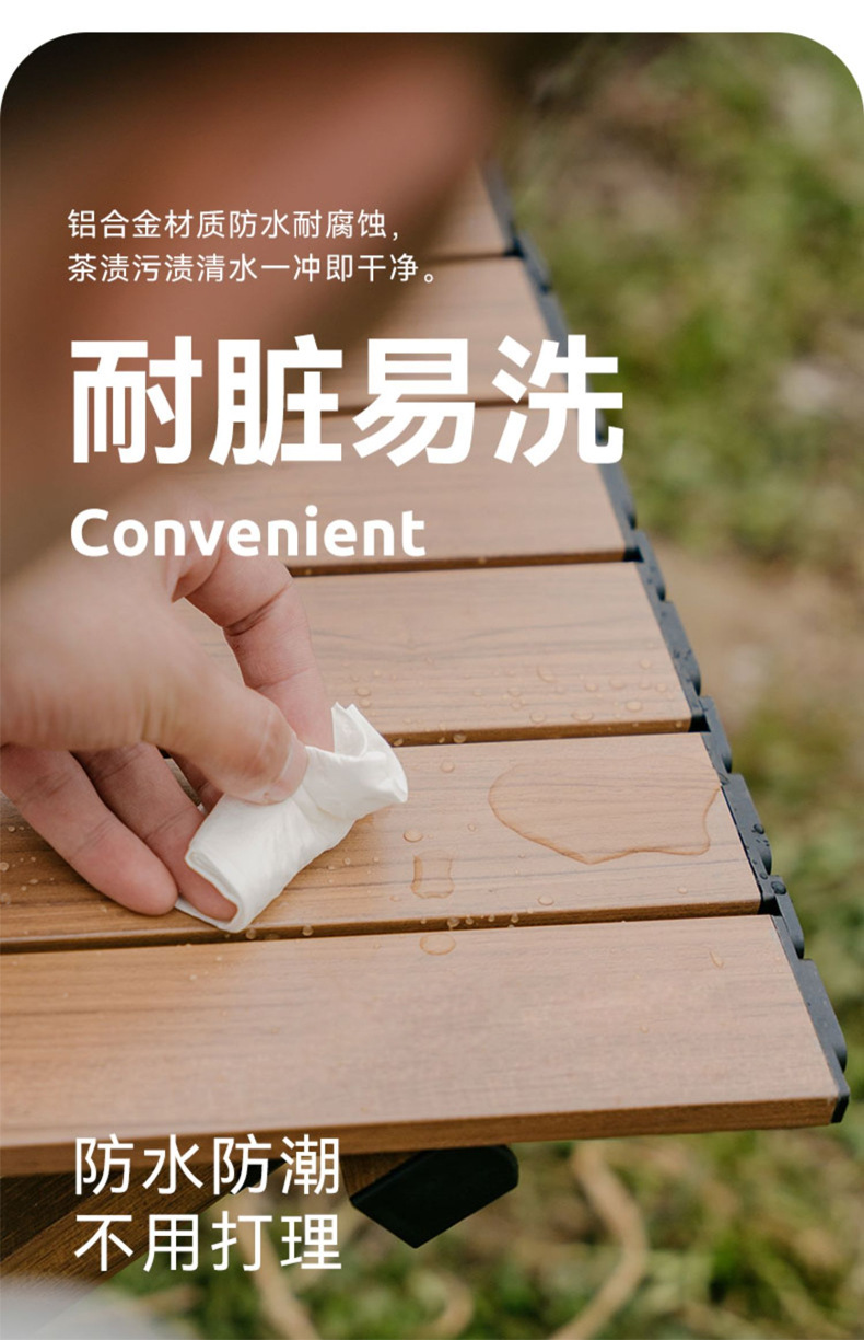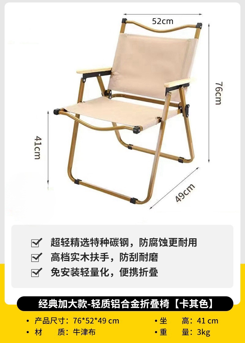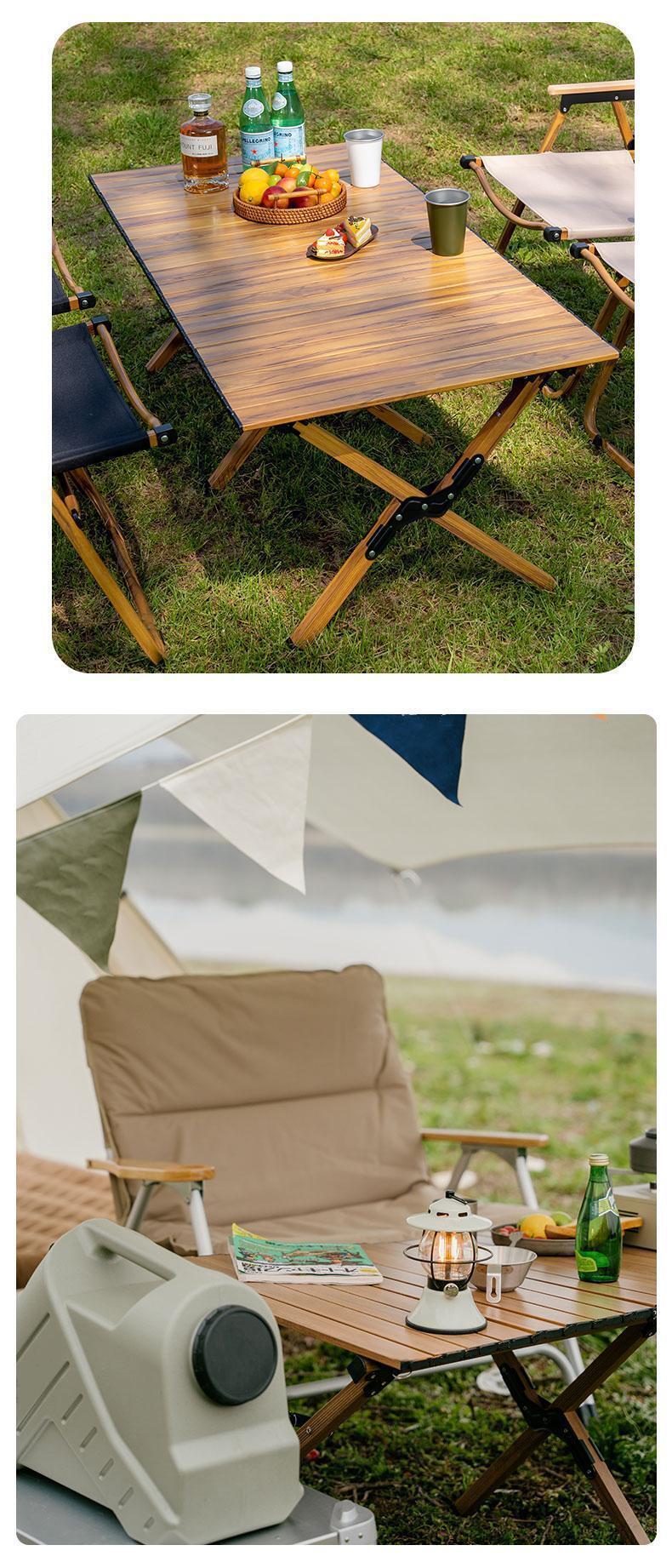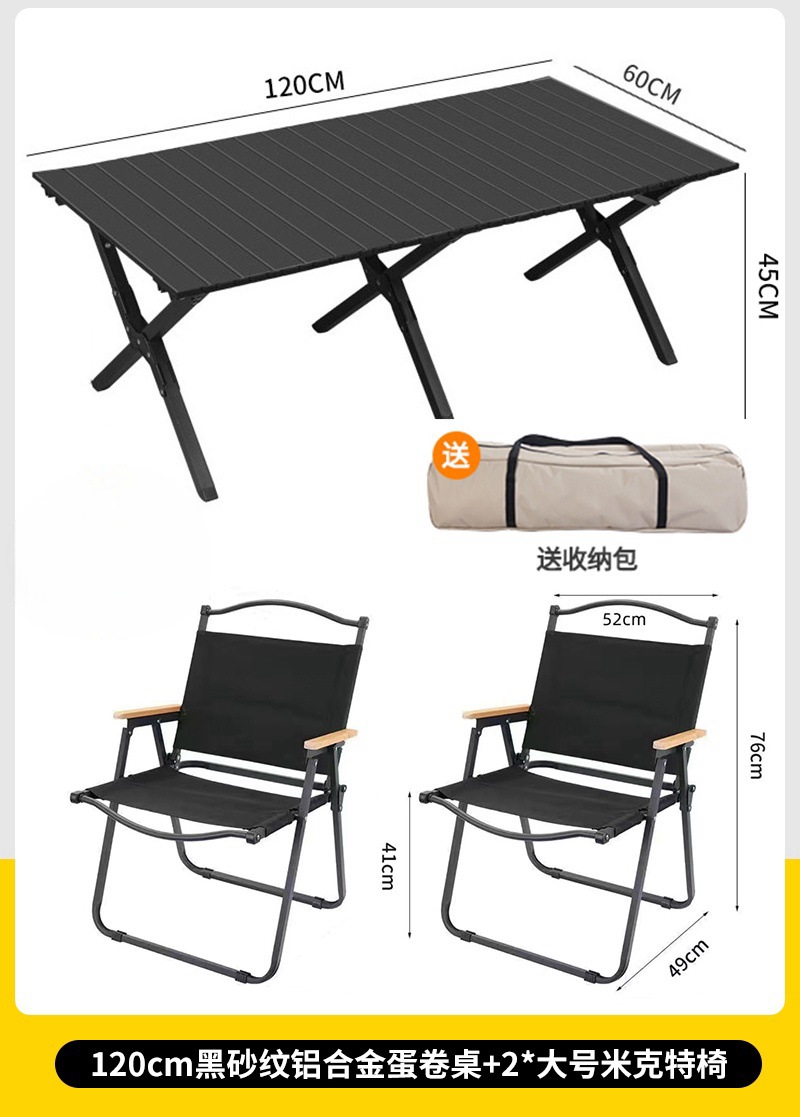 • 대형 모래 나뭇결 알루미늄 합금 계란말이 테이블 + 카키색 의자 2개