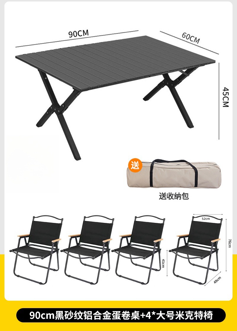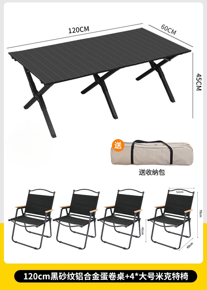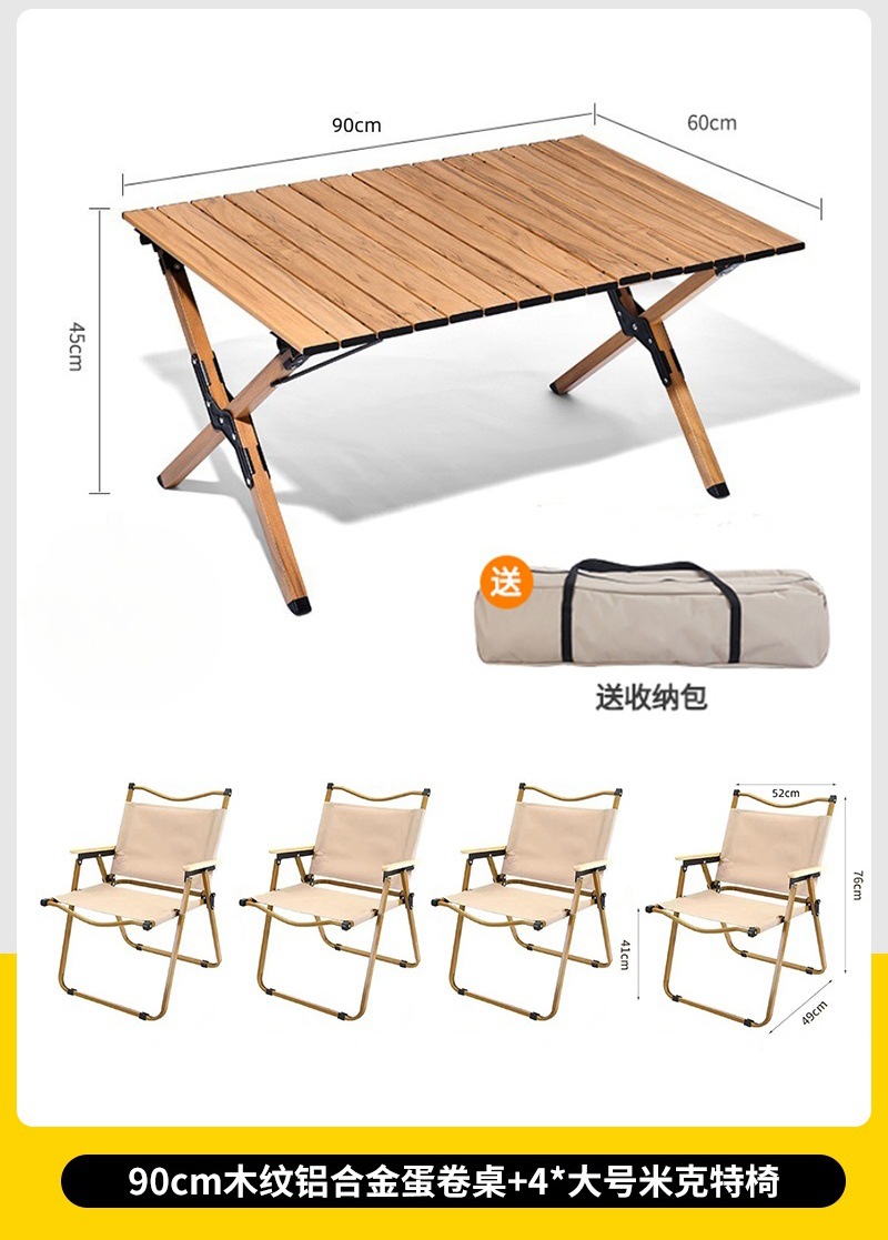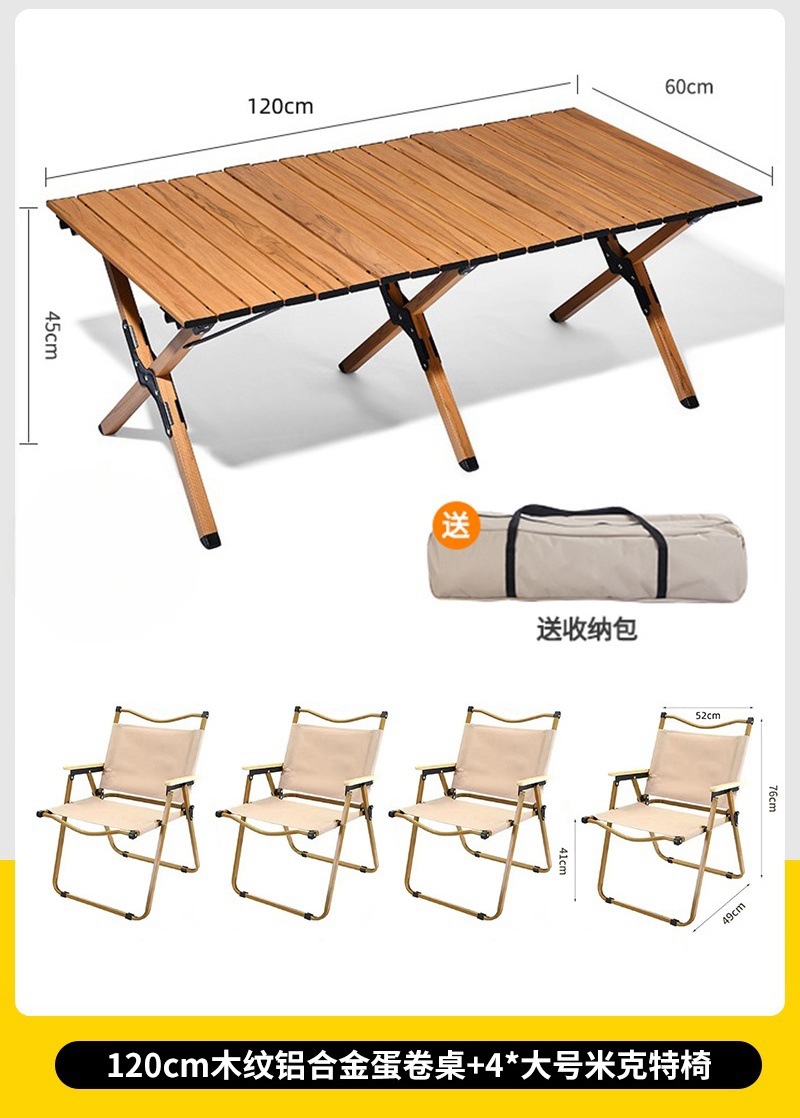 • 대형 모래 나뭇결 알루미늄 합금 계란말이 테이블 + 카키색 의자 4