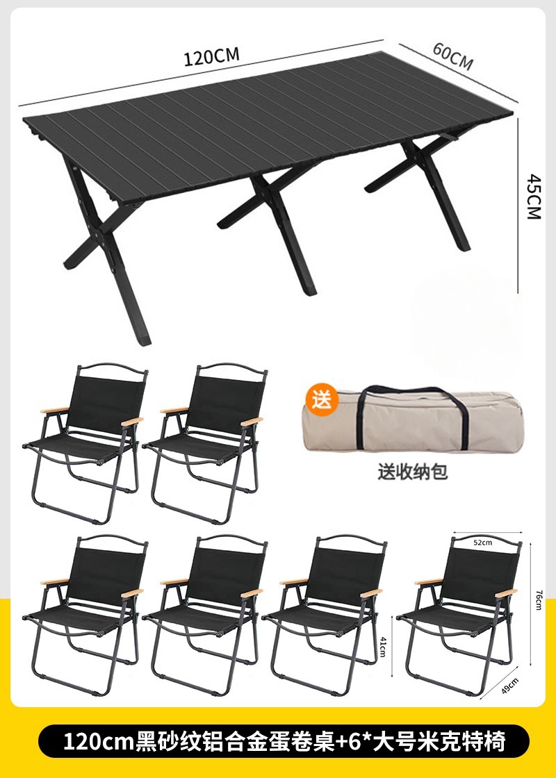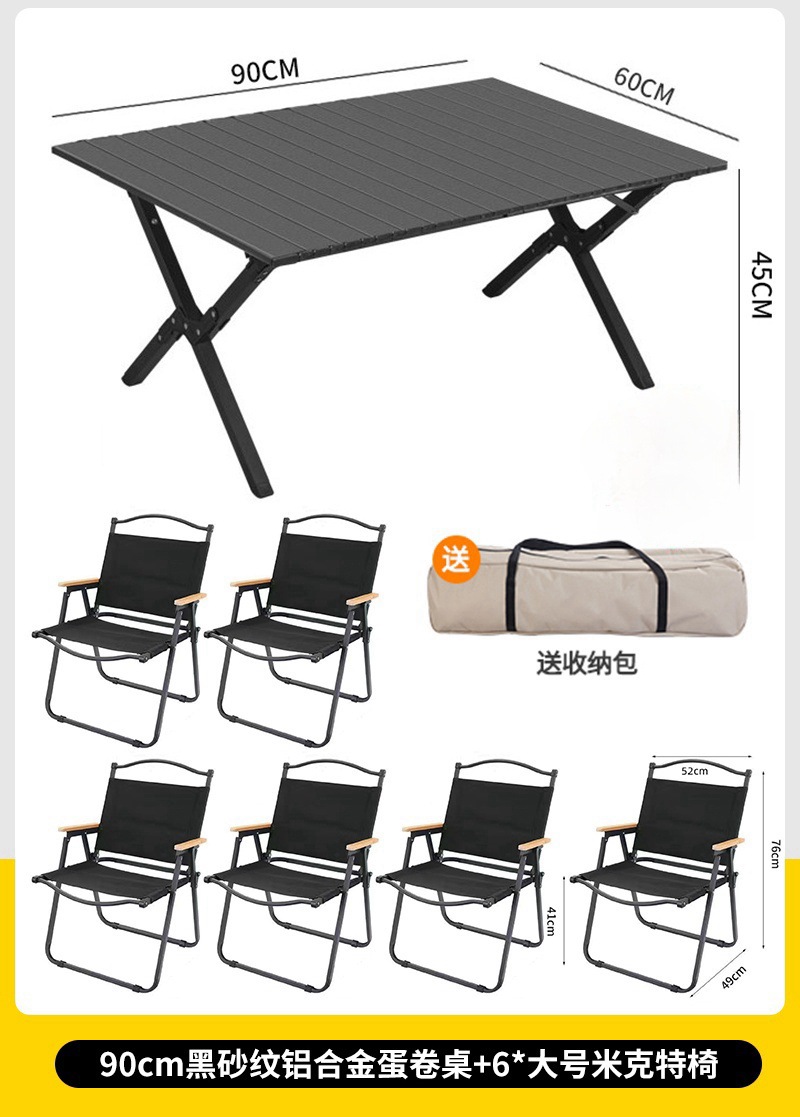 • 대형 모래 나뭇결 알루미늄 합금 계란말이 테이블 + 카키색 의자 6