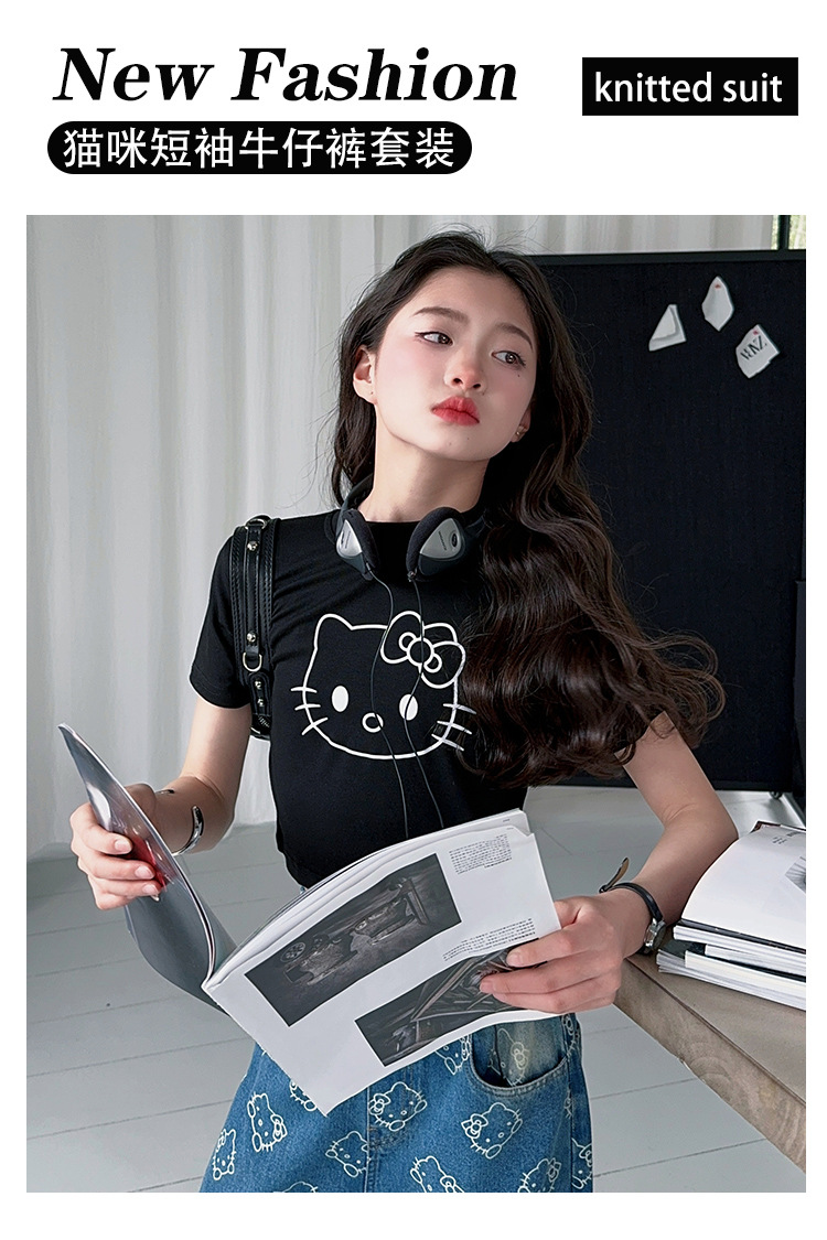 여학생 반팔 티셔츠 2025 여름 새 스타일 유행 프라이 스트리트 스포츠 여학생 투피스 세트스토어 가기