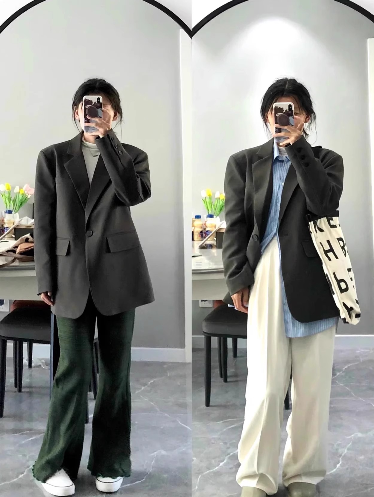 검은 세트 재킷 여성의 봄과 가을 2025 새로운 봄 한국 스타일 작은 느낌 우아한 캐주얼 작은 세트스토어 가기
