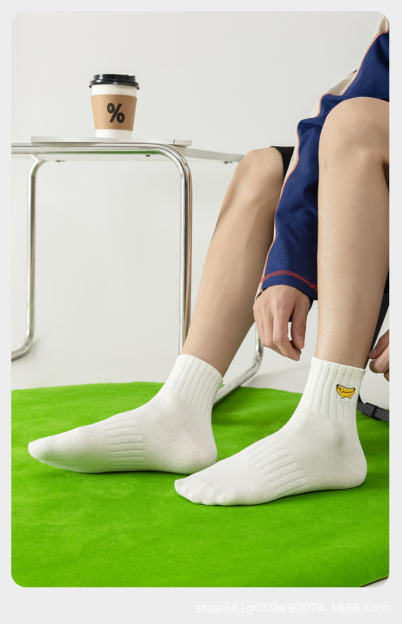 양말 남성용 종아리 중반 여름 학생 순면 탈취제 스포츠 양말 자수 7a 항균 뼈없는 대형 신장면 양말스토어 가기
