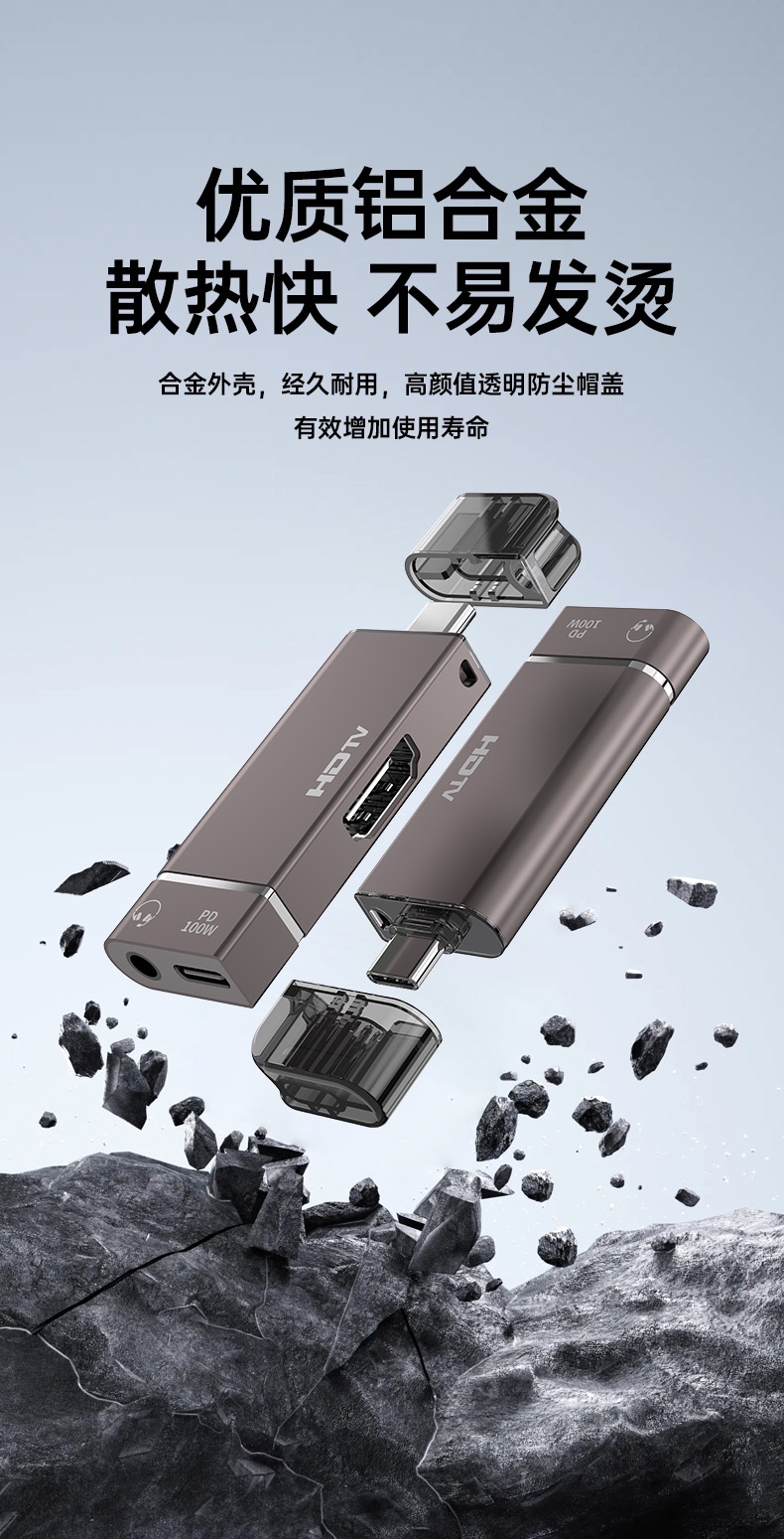 유형-c hdmi 어댑터 4K60HZ HD 화면 휴대 전화 노트북 100WPD 충전 3.5 헤드폰