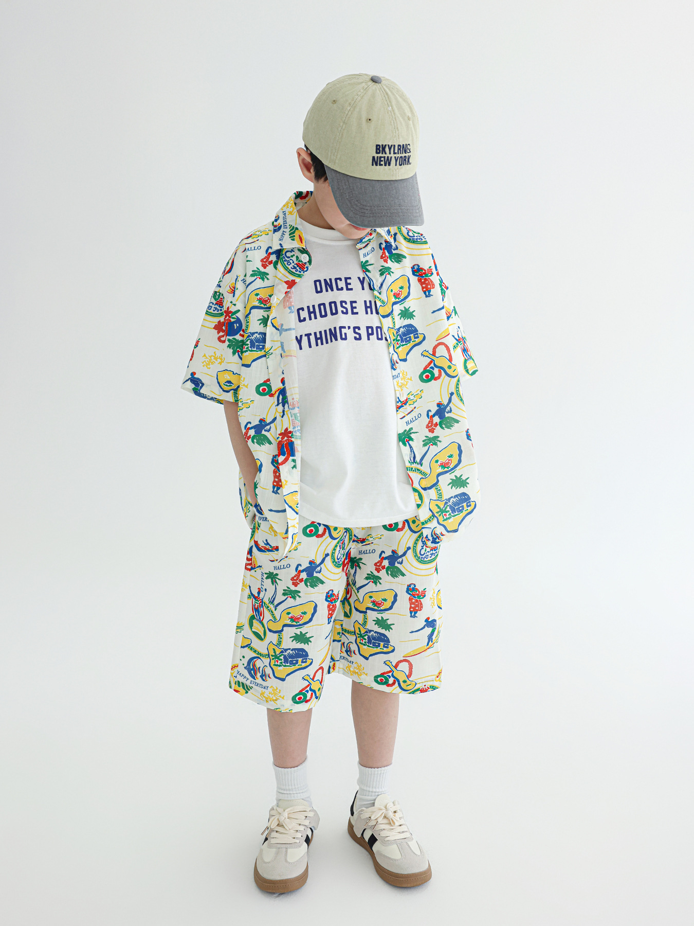 2025 여름 새 소년 레저 홀리데이 스타일 반팔 세트 두 조각 유행 편안한 면화와 리넨 셔츠스토어 가기