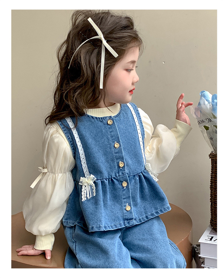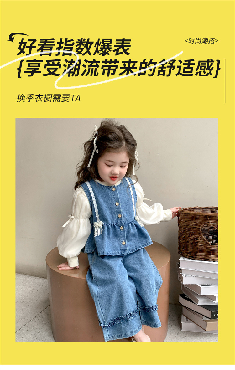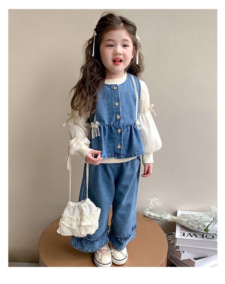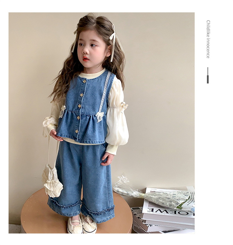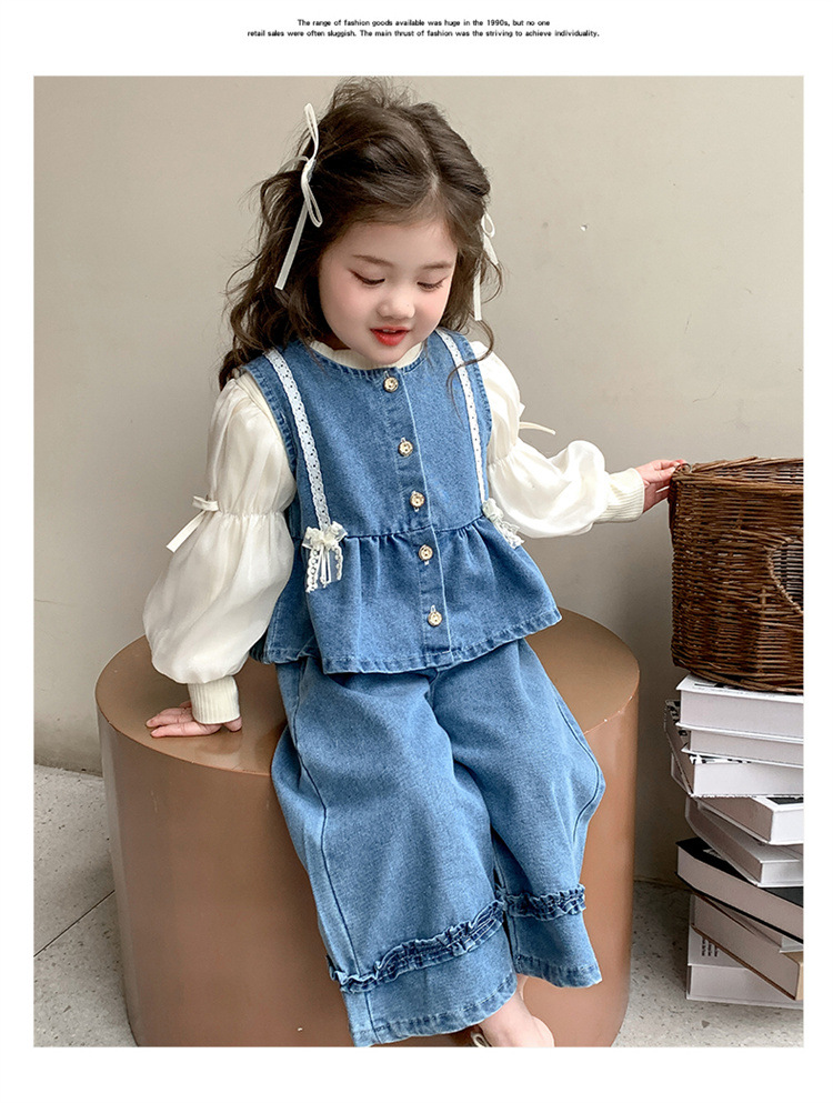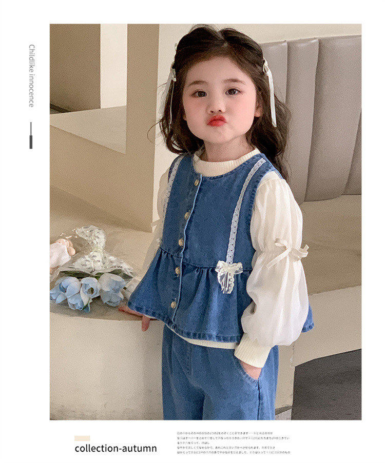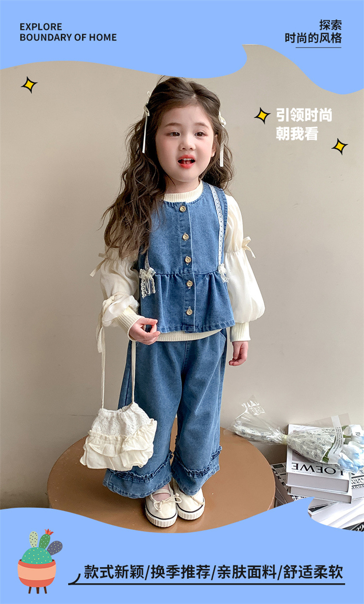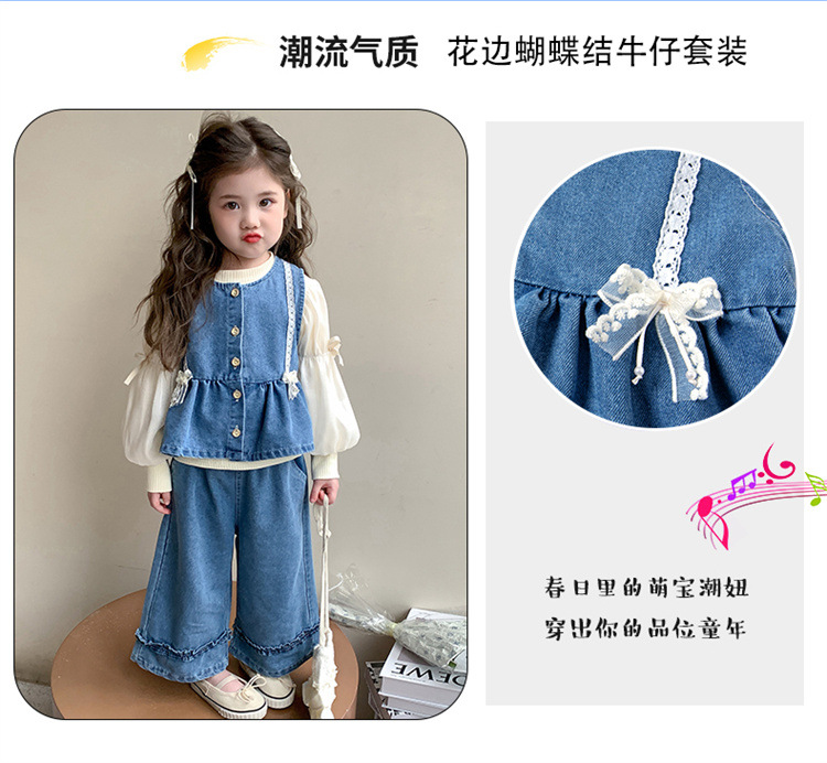소녀 데님 세트 봄 2025 새로운 어린이 서양식 간단한 달콤한 유행 봄과 가을 아기 소녀 3 종 세트스토어 가기