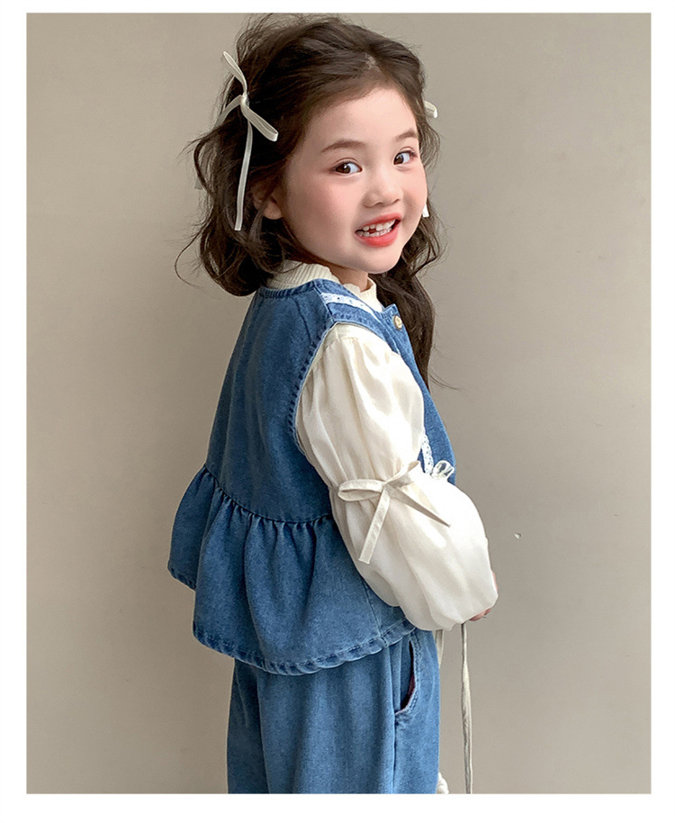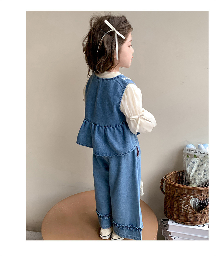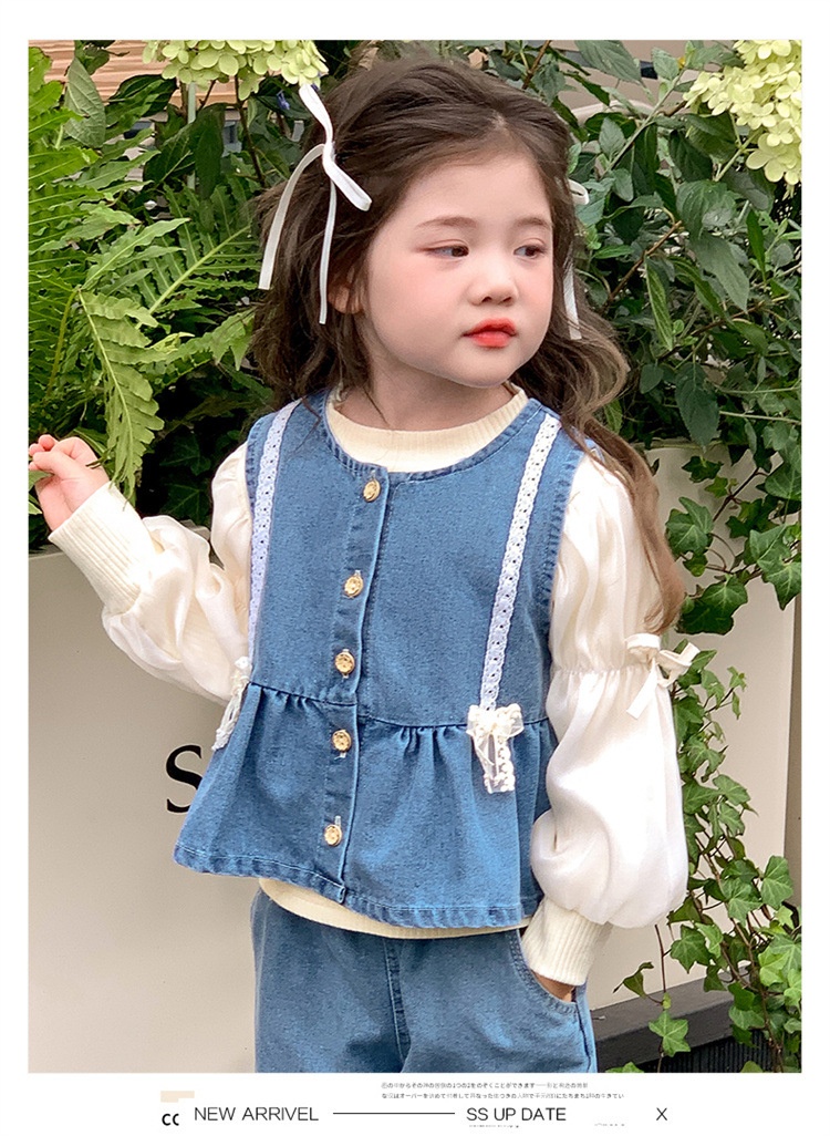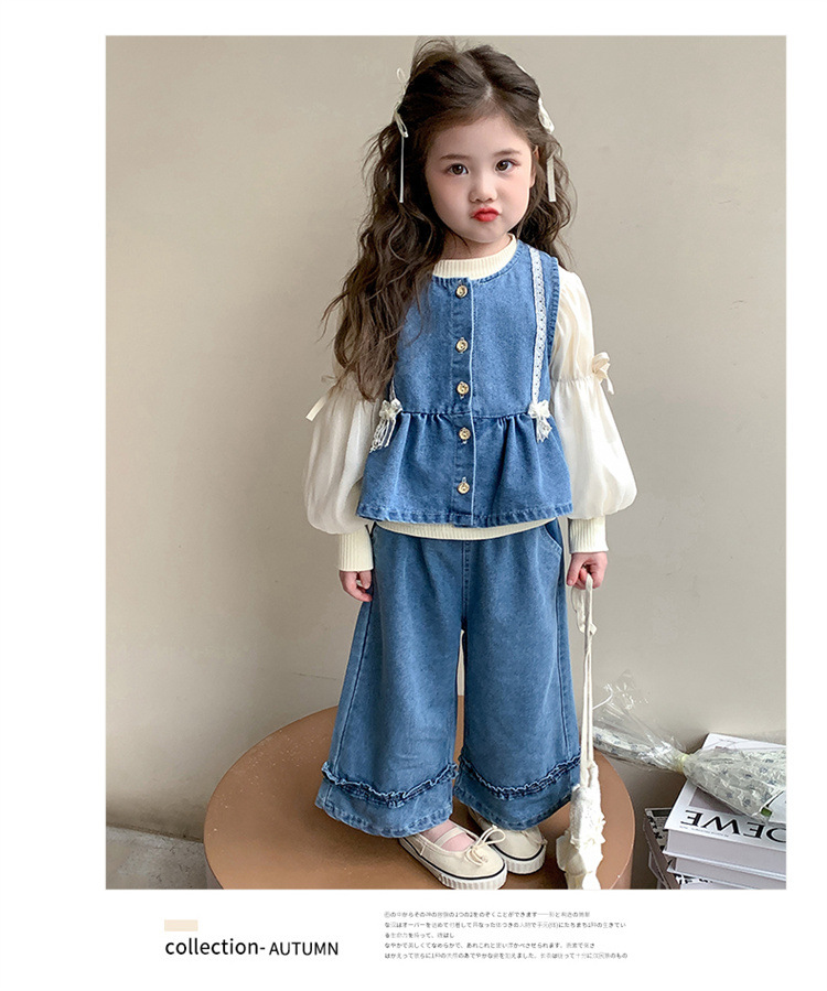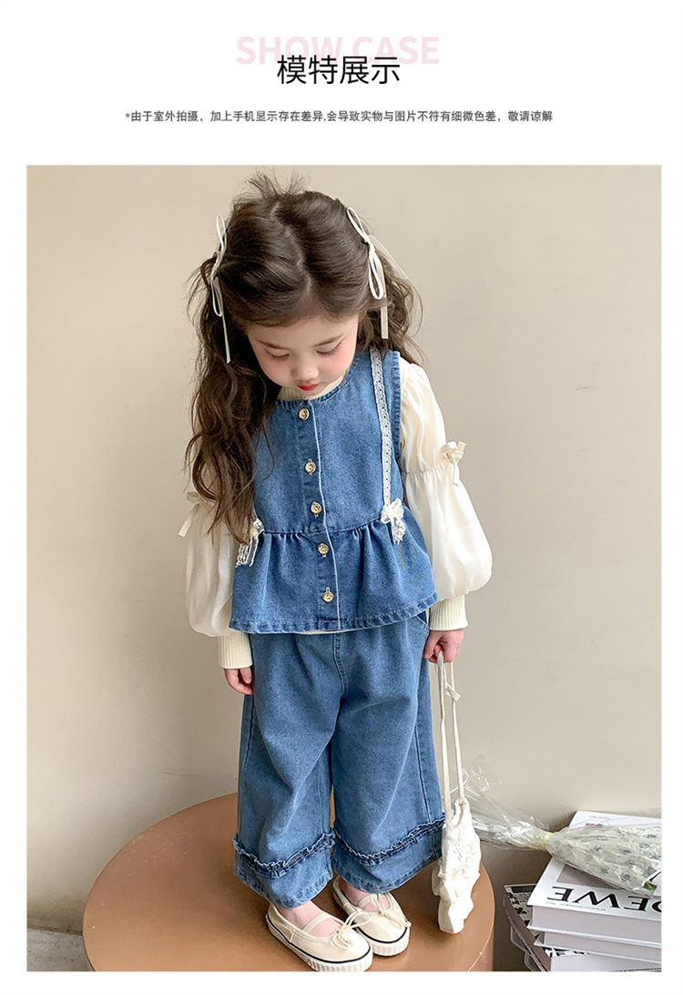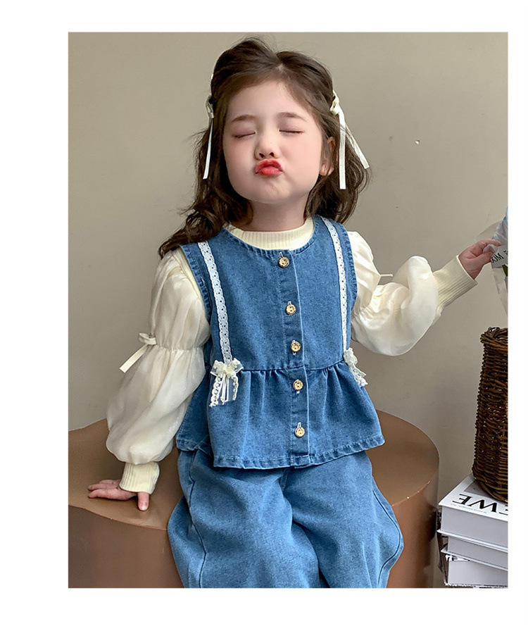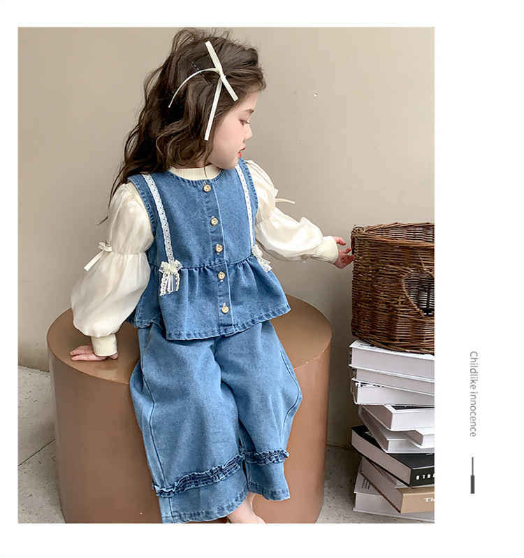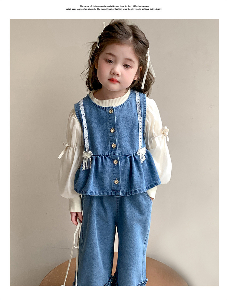 소녀 데님 세트 봄 2025 새로운 어린이 서양식 간단한 달콤한 유행 봄과 가을 아기 소녀 3 종 세트스토어 가기