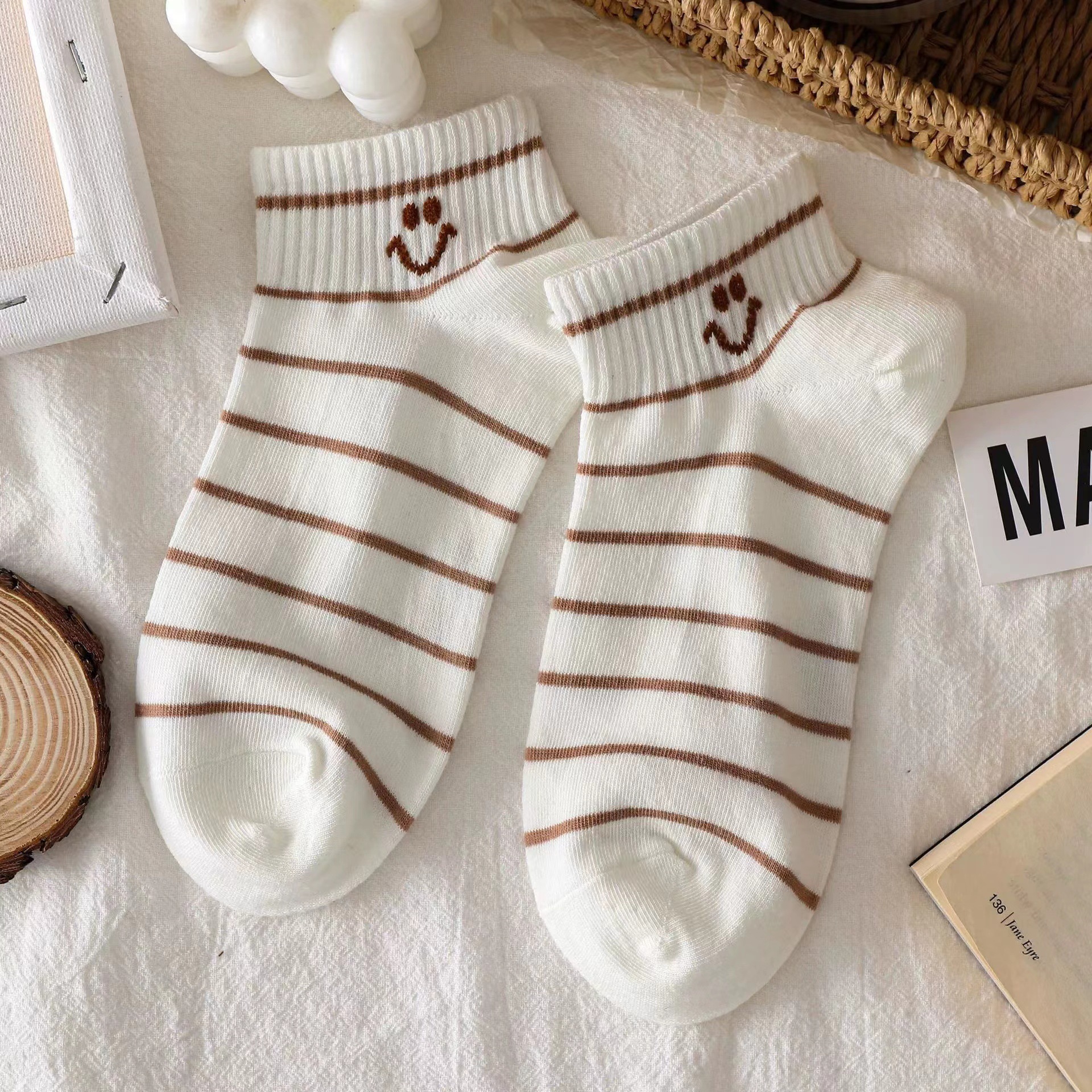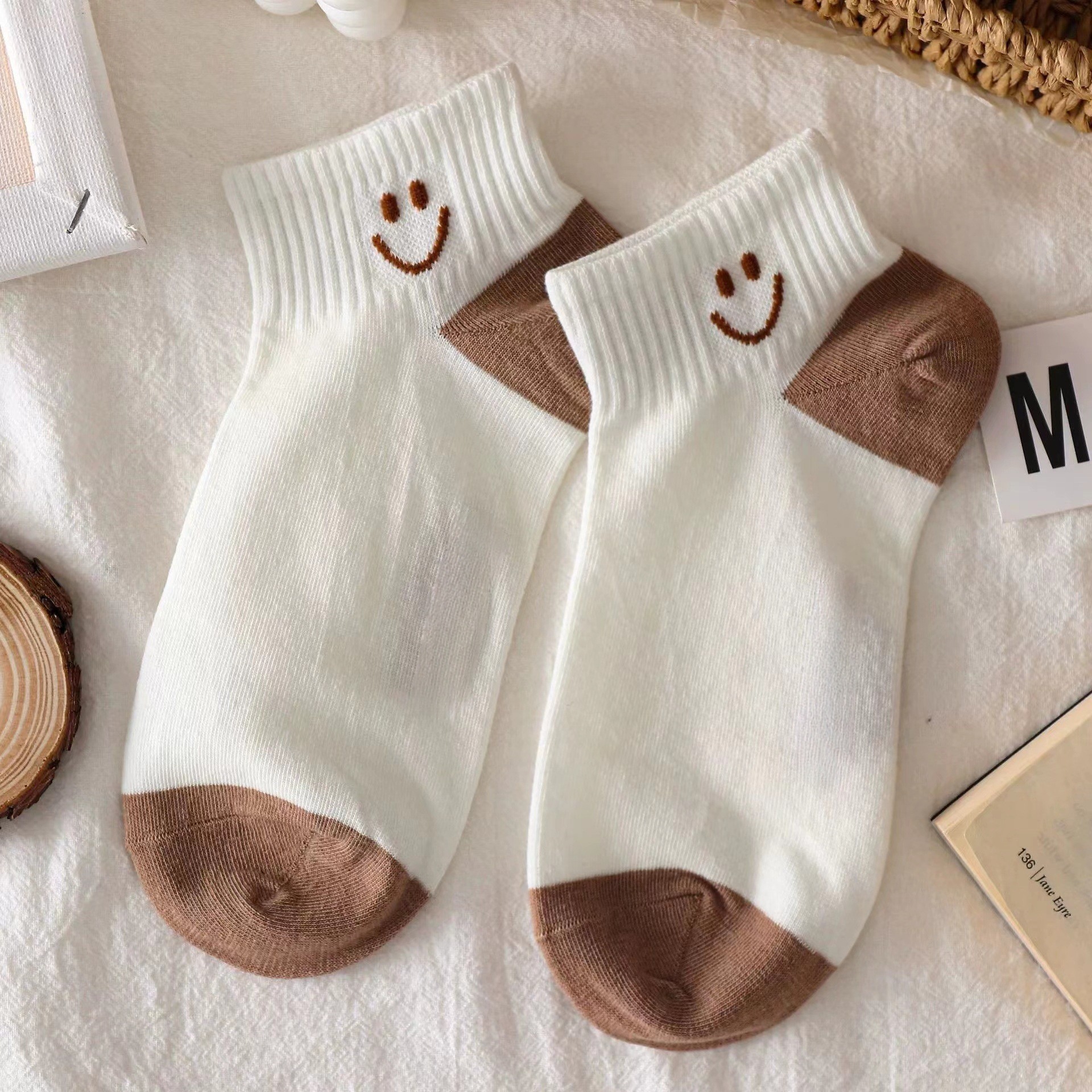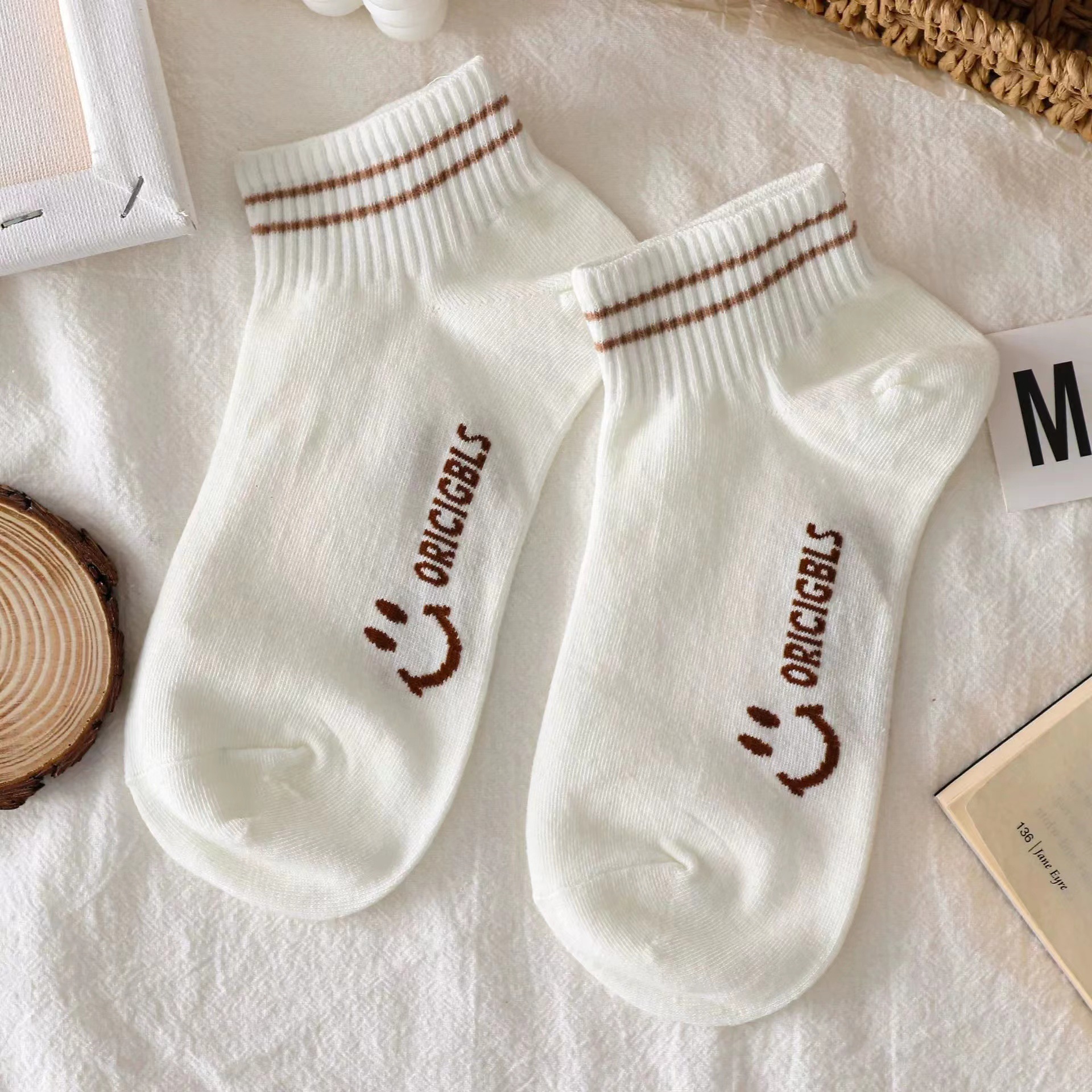 웃는 편지 양말 여성 봄과 여름 얇은 Ins 트렌디 한 한국식 귀여운 카키 로우 사이드 스포츠 학생 보트 양말스토어 가기