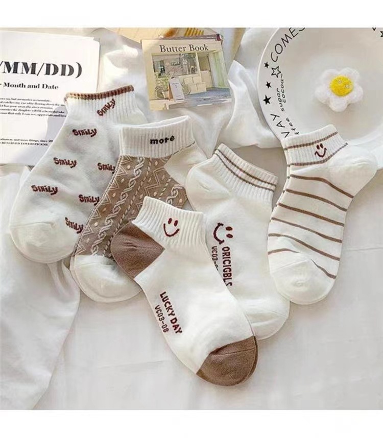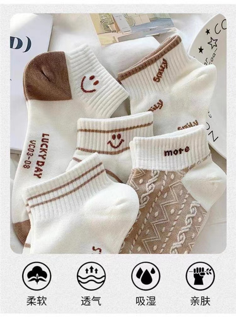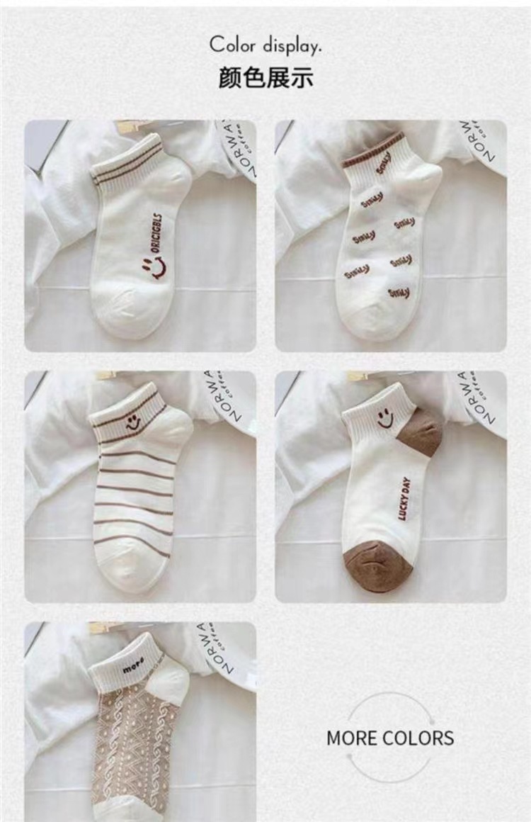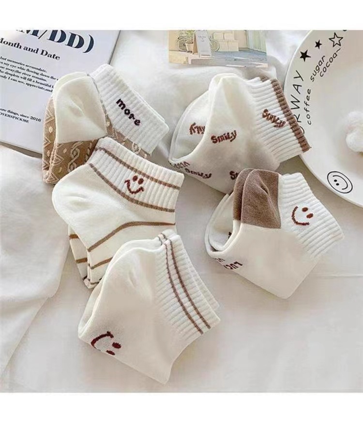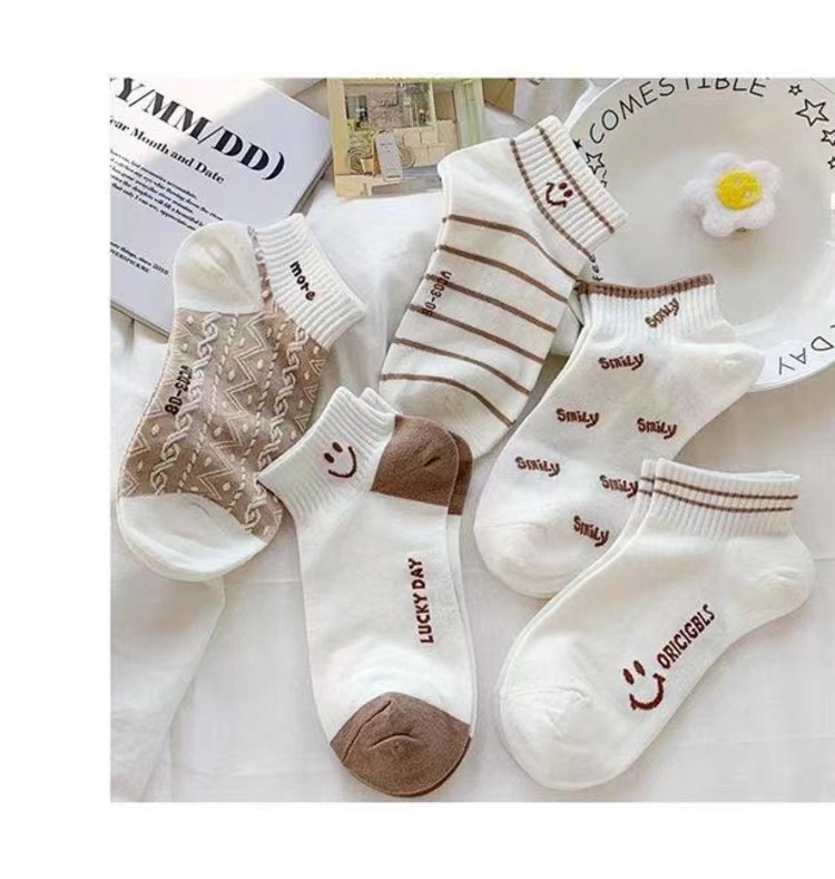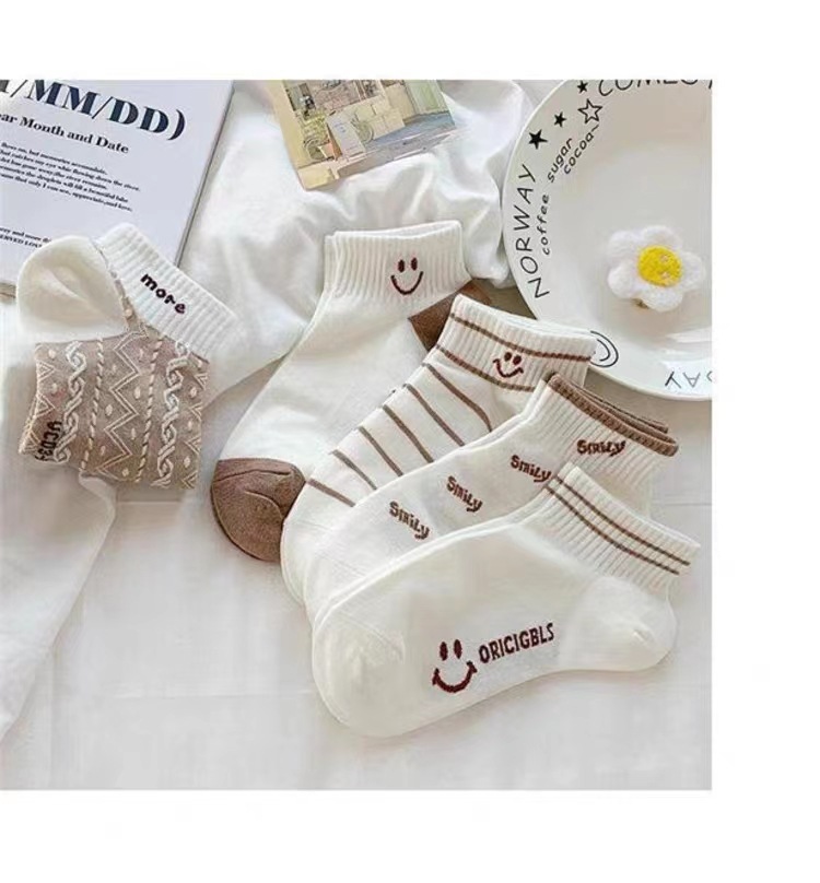 웃는 편지 양말 여성 봄과 여름 얇은 Ins 트렌디 한 한국식 귀여운 카키 로우 사이드 스포츠 학생 보트 양말스토어 가기