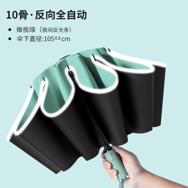 • 올리브 그린 10본 자동 앞으로 닫히는 우산