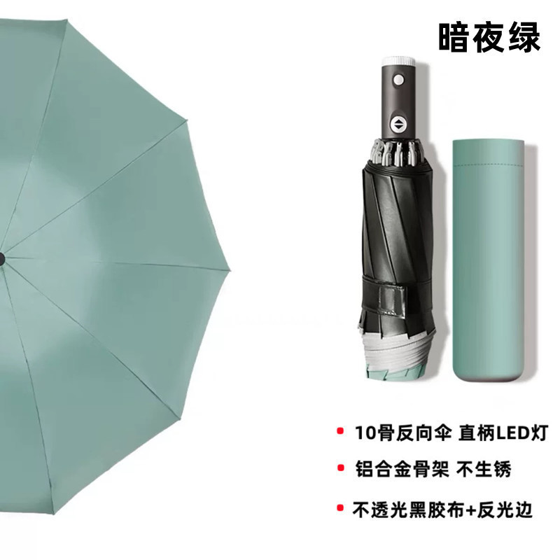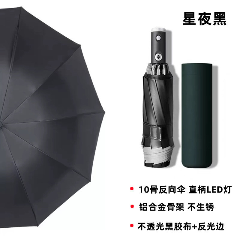 • 옵시디언 블랙 손전등 10본 자동 역접이식 우산