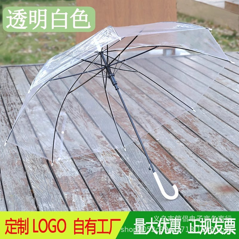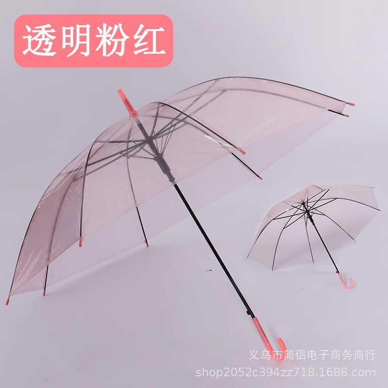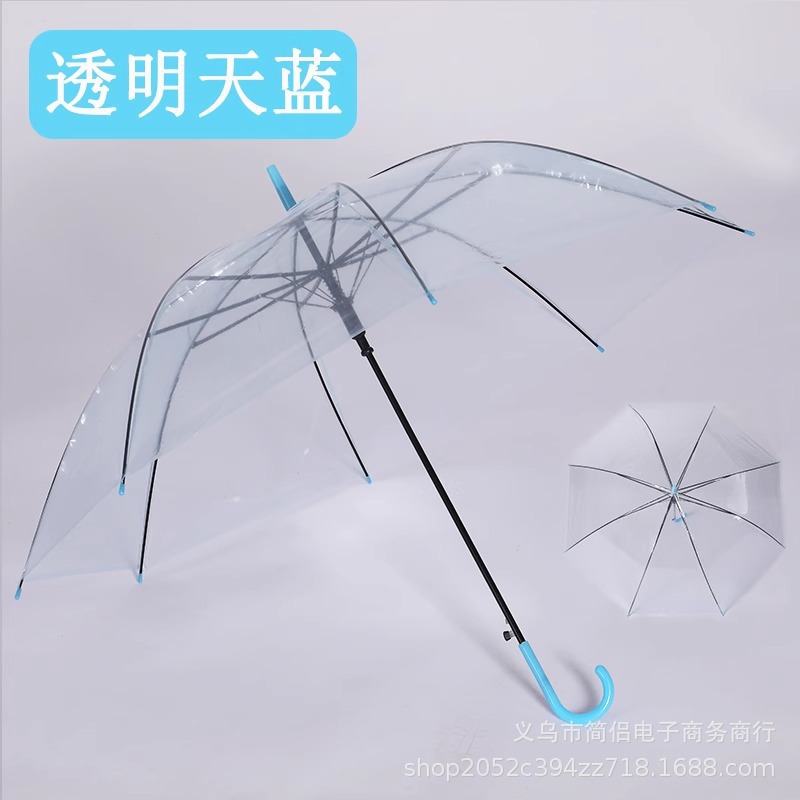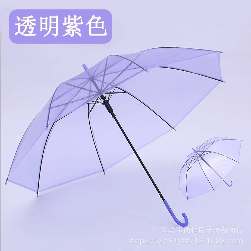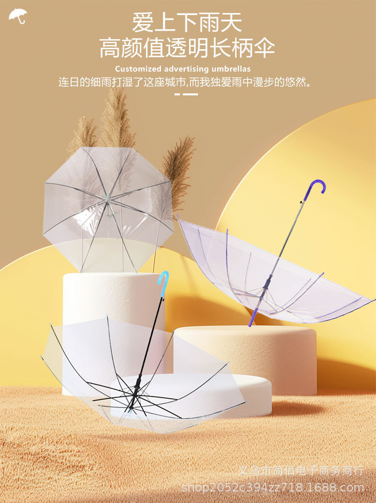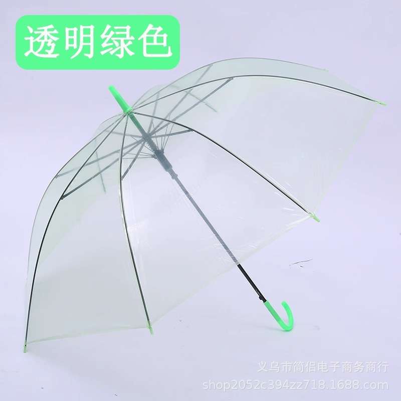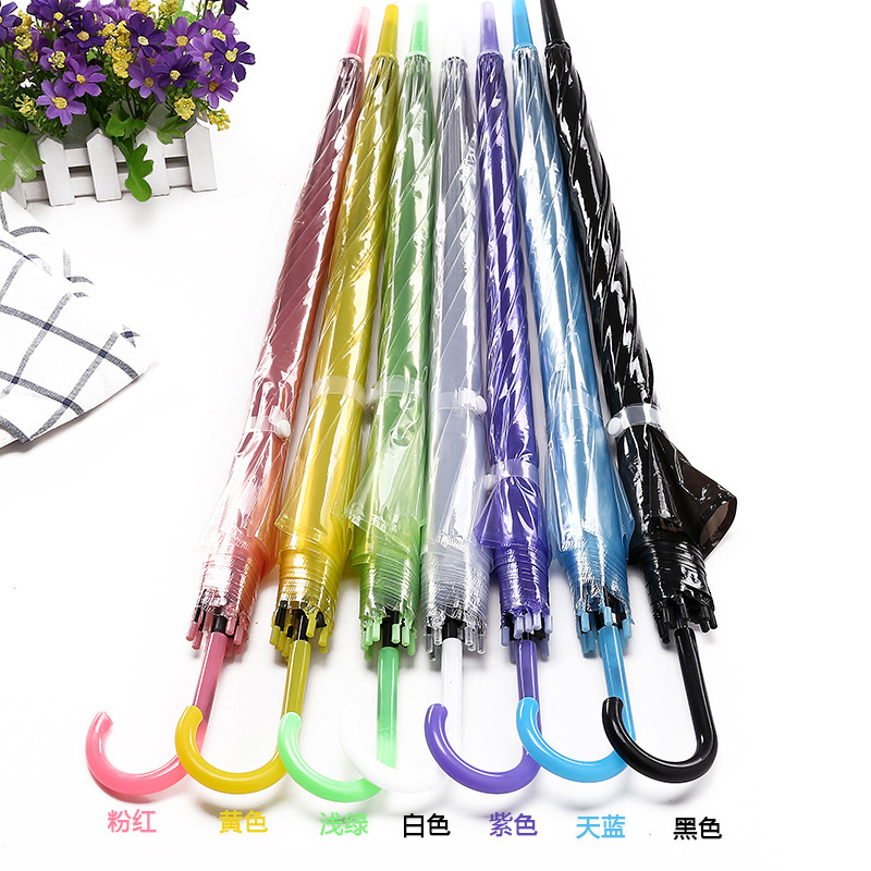창조적 인 작은 신선한 긴 손잡이 투명 우산 컬러 스트레이트 투명 우산 자동 도매 로고 광고 선물 우산