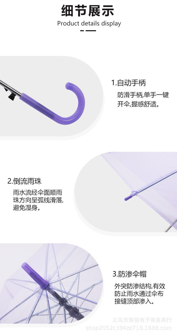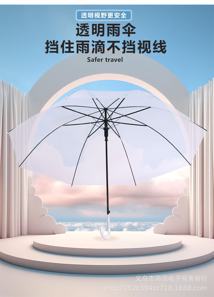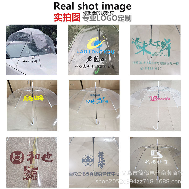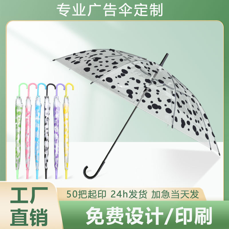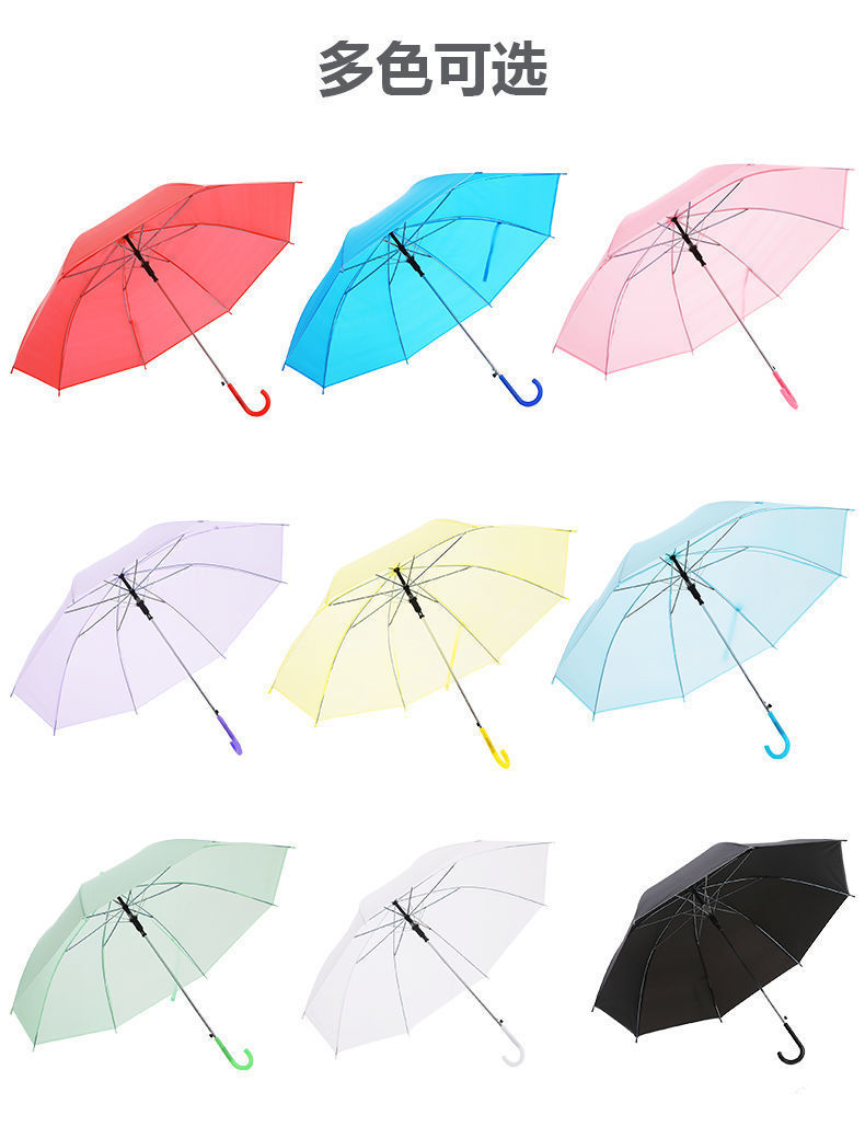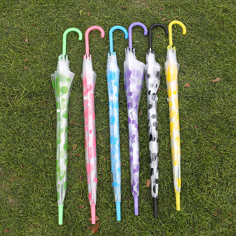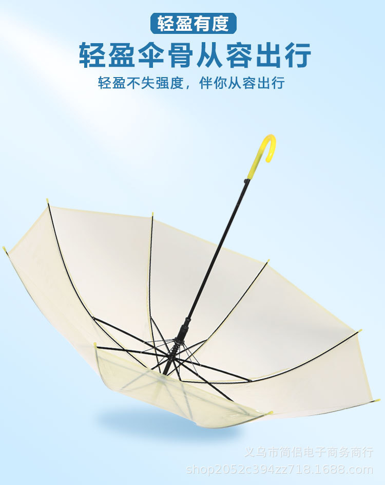 창조적 인 작은 신선한 긴 손잡이 투명 우산 컬러 스트레이트 투명 우산 자동 도매 로고 광고 선물 우산