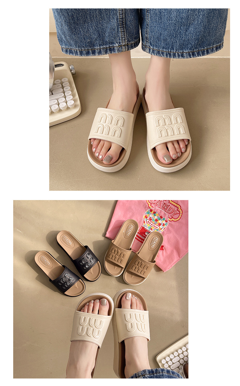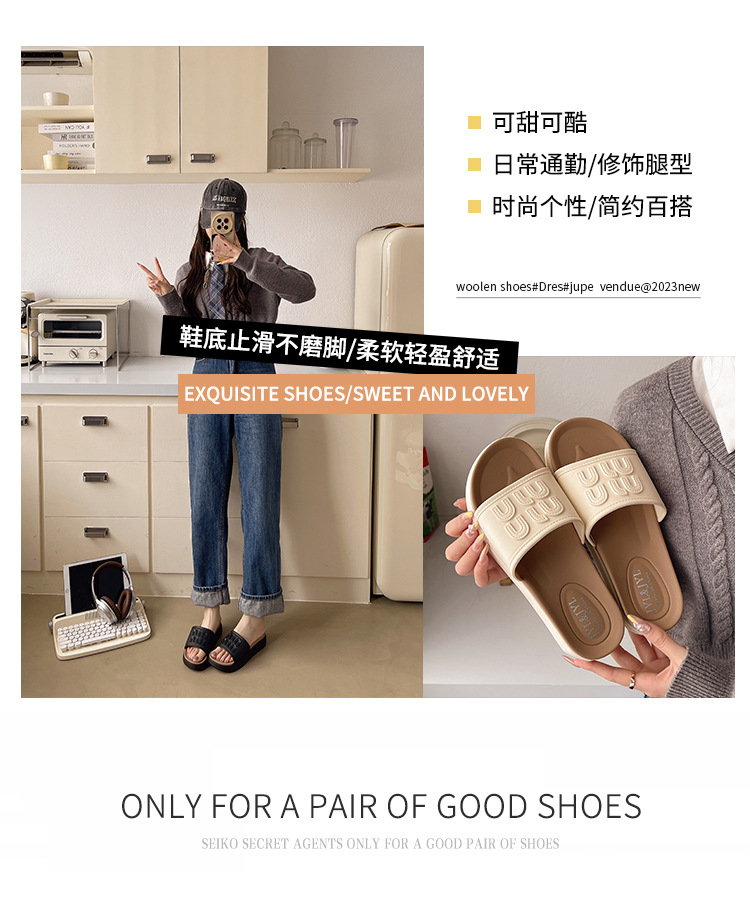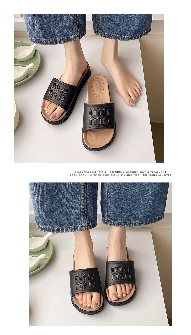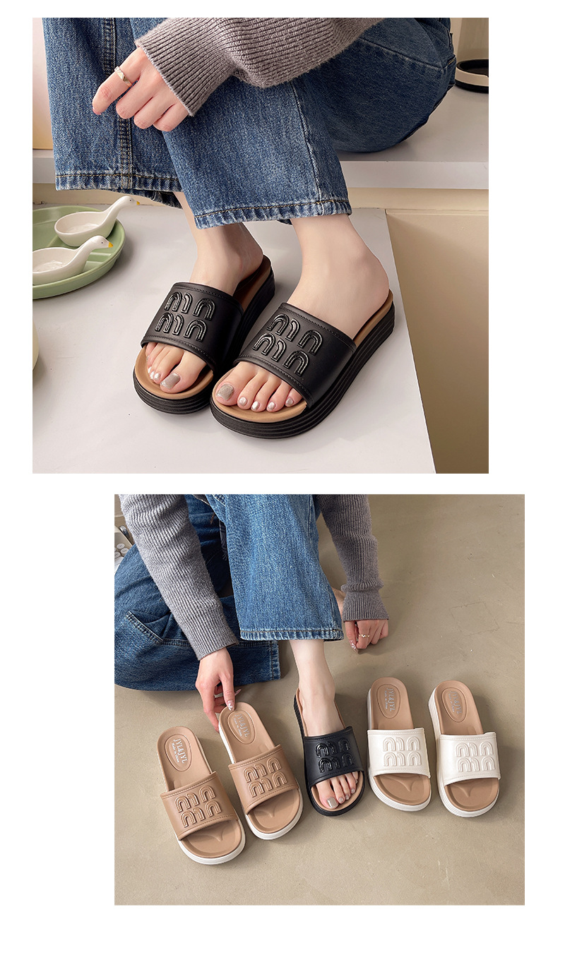 Mi Fanxin 2025 여름 새로운 패션 두꺼운 하단 미드 힐 슬리퍼 여성 올 매치 미끄럼 방지 비치 여성용 슬리퍼스토어 가기