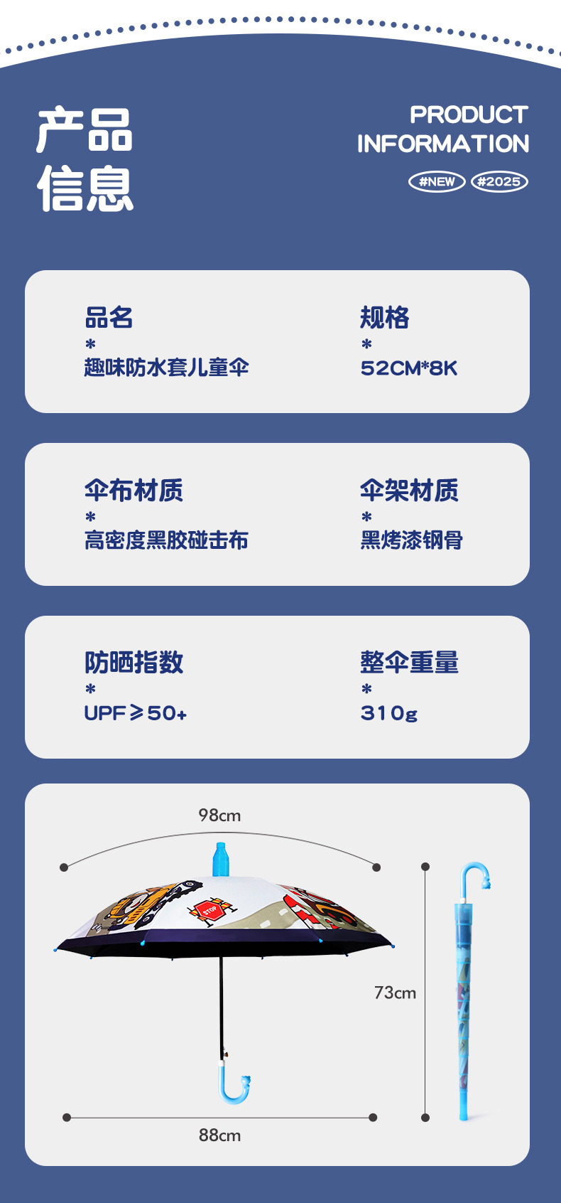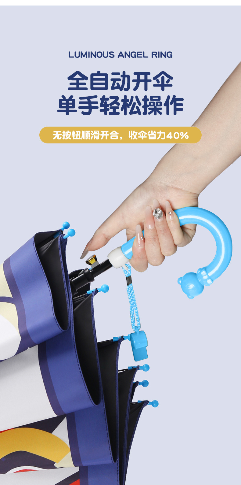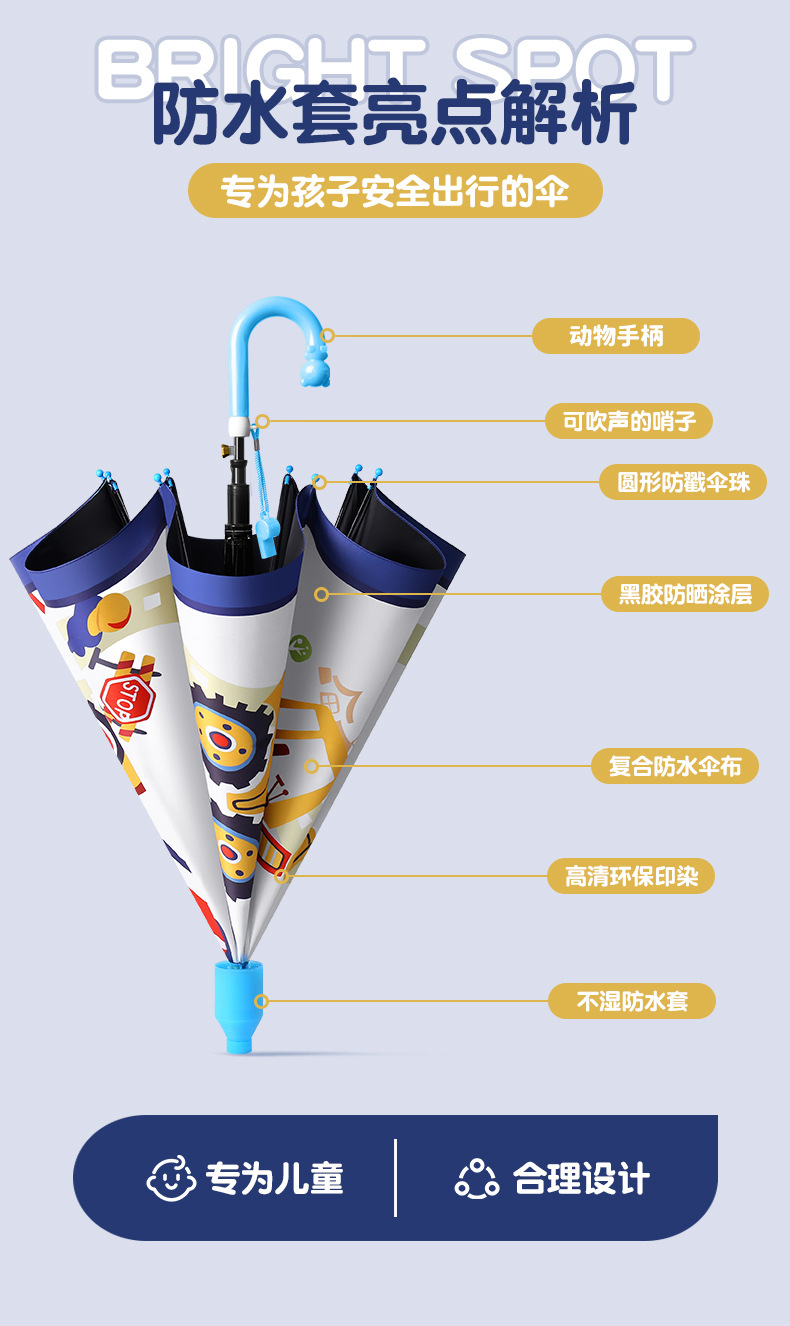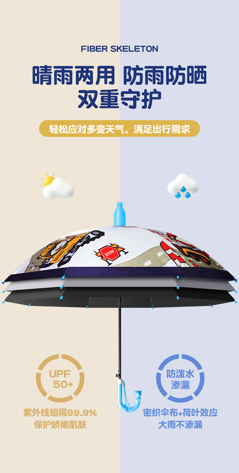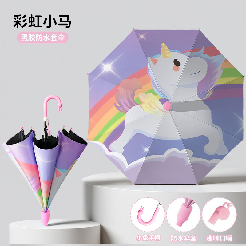 귀여운 어린이 우산, 아이스크림 손잡이 방수 커버, 만화 캐릭터 어린이 우산, 자동 개폐식 블랙글로스 자외선 차단 우산