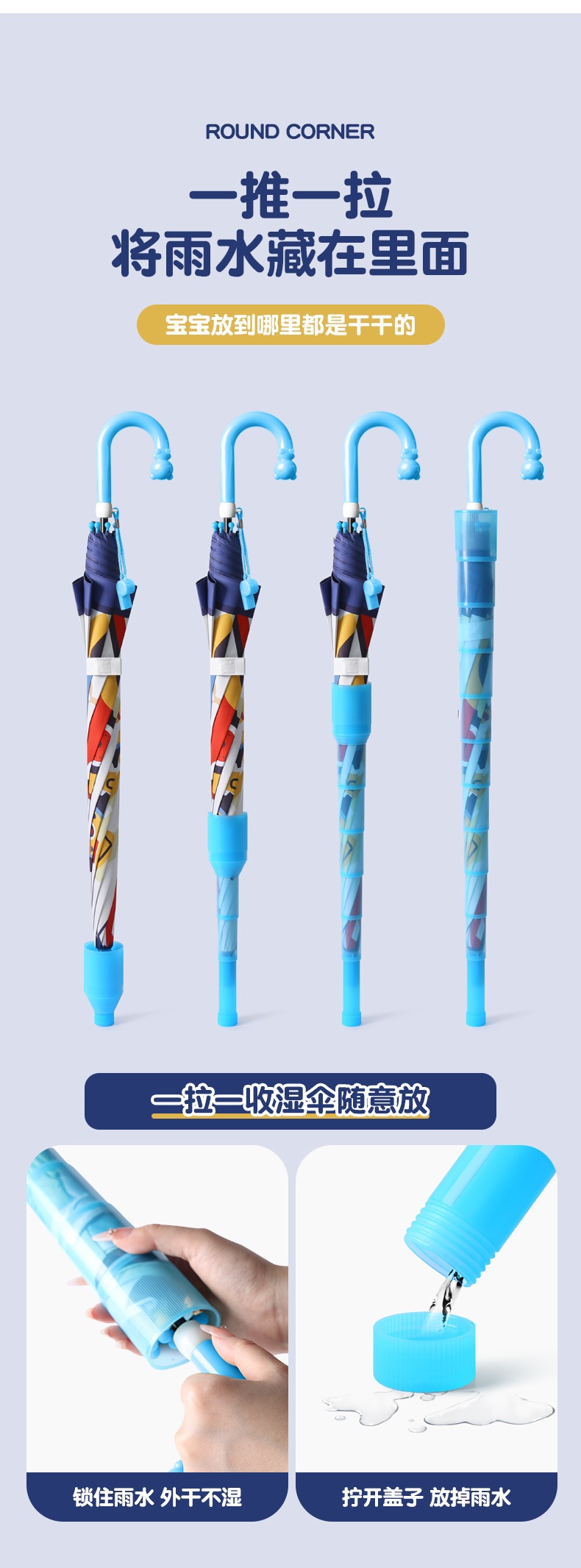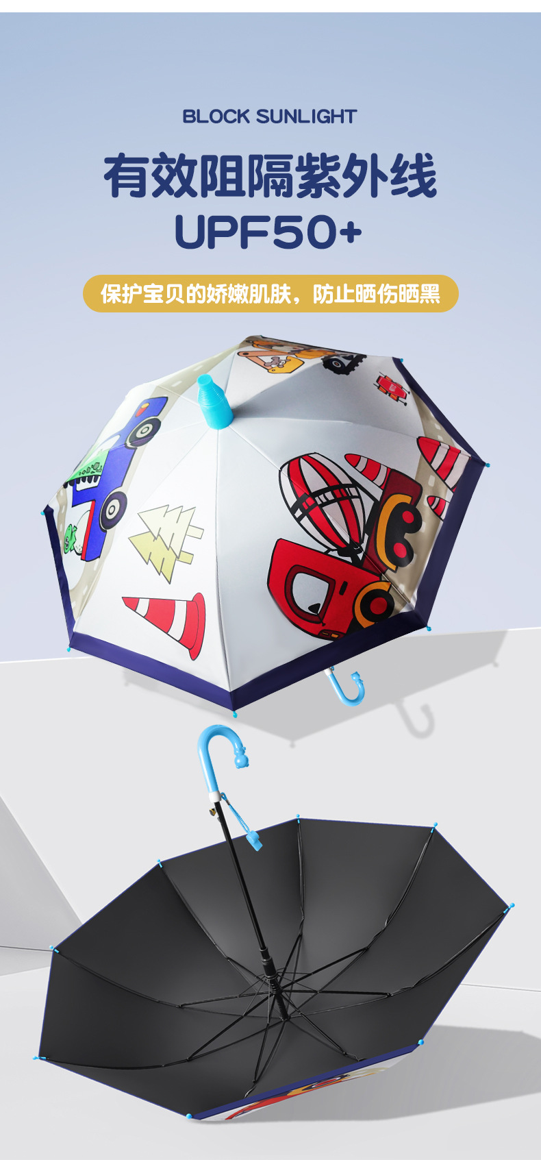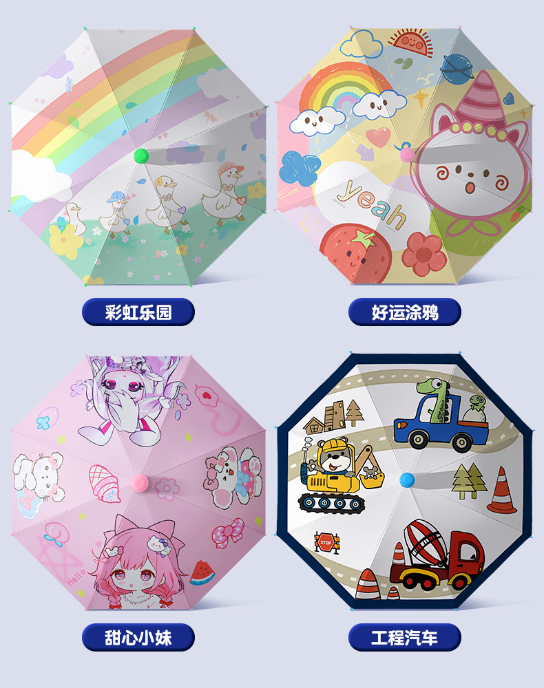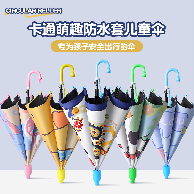 귀여운 어린이 우산, 아이스크림 손잡이 방수 커버, 만화 캐릭터 어린이 우산, 자동 개폐식 블랙글로스 자외선 차단 우산스토어 가기