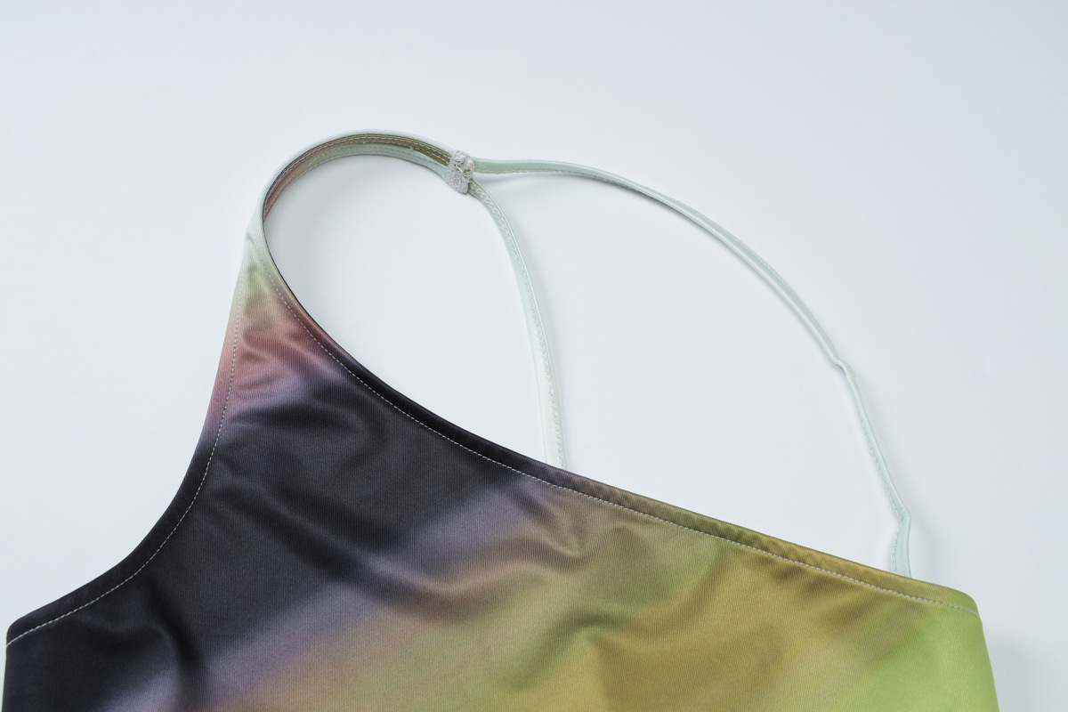 유럽풍 크로스보더 여성복 2025 여름 신상 그라데이션 컬러 원숄더 백리스 휴가 투피스 패션 세트스토어 가기