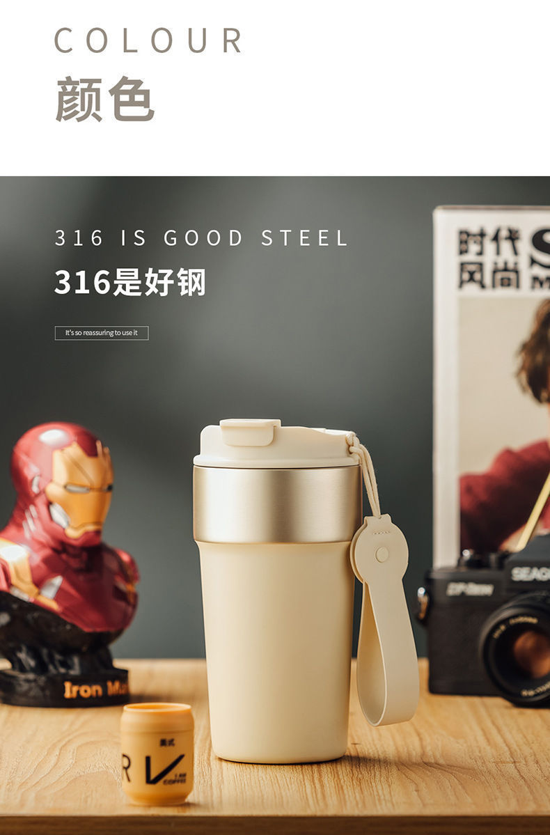 보온병 컵 316L 두꺼운 스테인레스 스틸 높은 색상 가치 두 배 음료 커피 컵 간단한 패션 흡입 컵 휴대용 자동차 컵