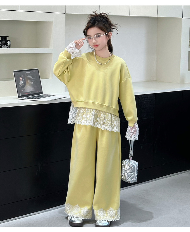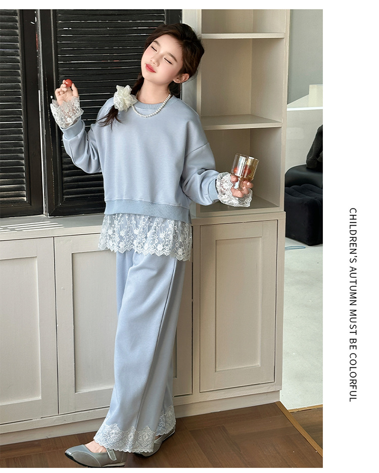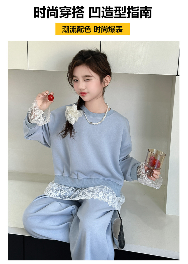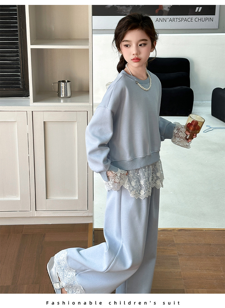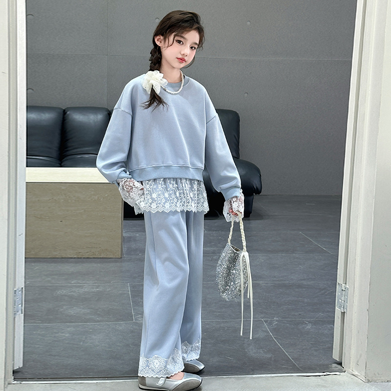 대외 무역 아동복 한국 스타일 서양식 봄 착용 소녀 레이스 니트 세트 2025 캐주얼 스웨터 투피스 유행스토어 가기