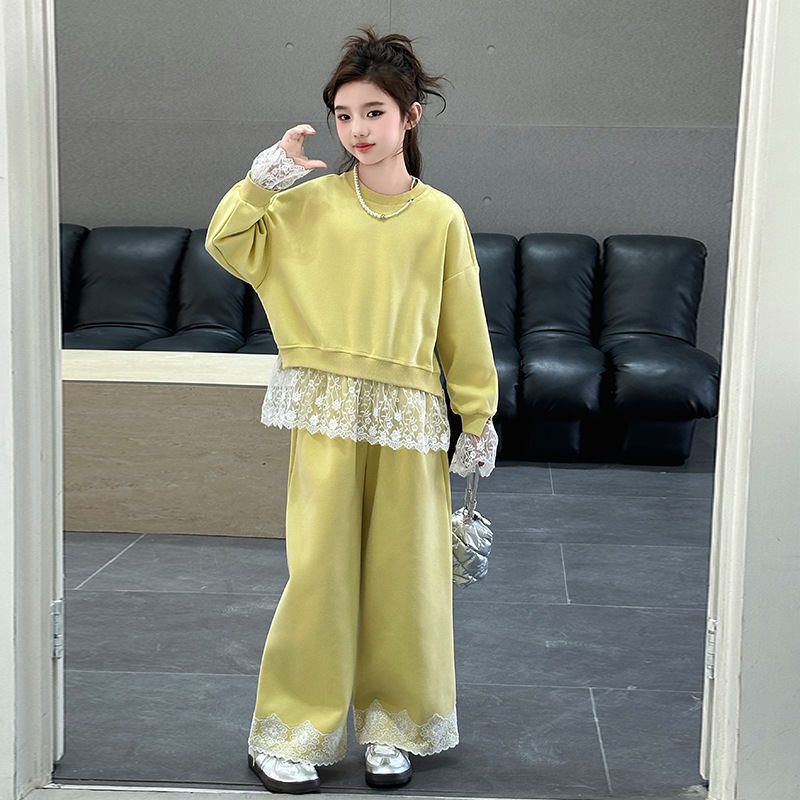 대외 무역 아동복 한국 스타일 서양식 봄 착용 소녀 레이스 니트 세트 2025 캐주얼 스웨터 투피스 유행