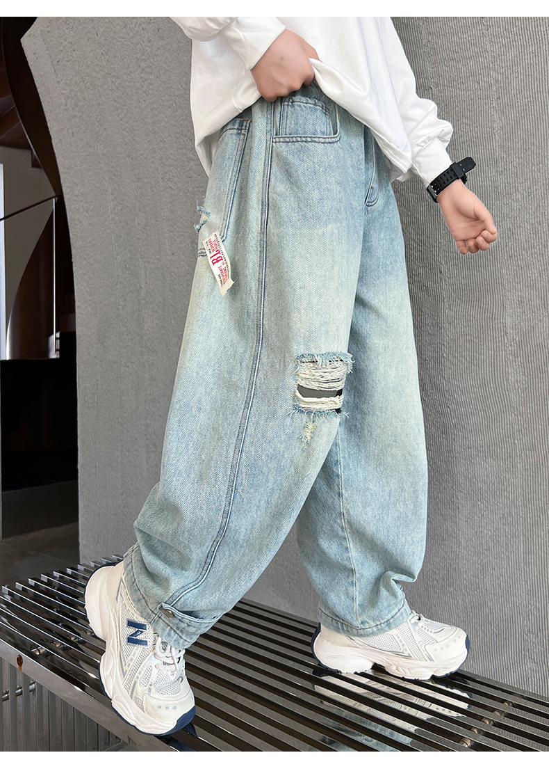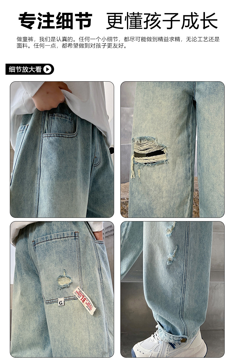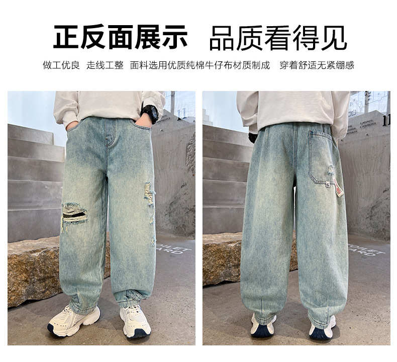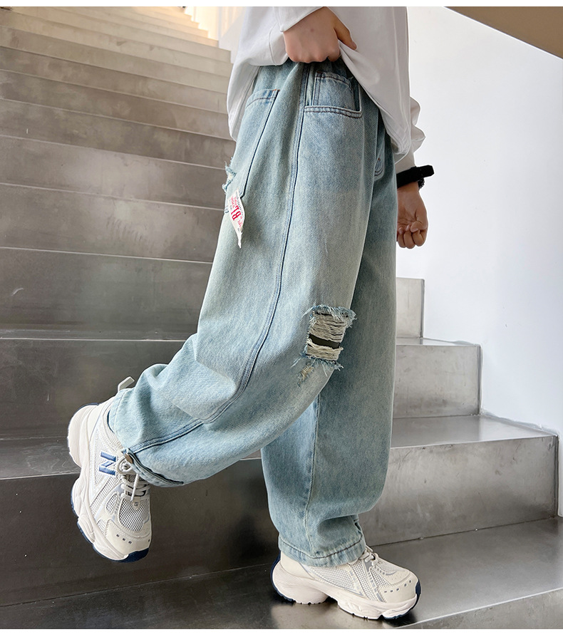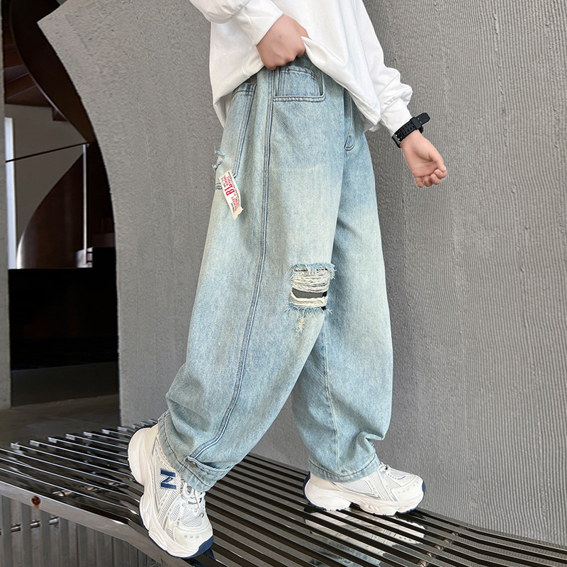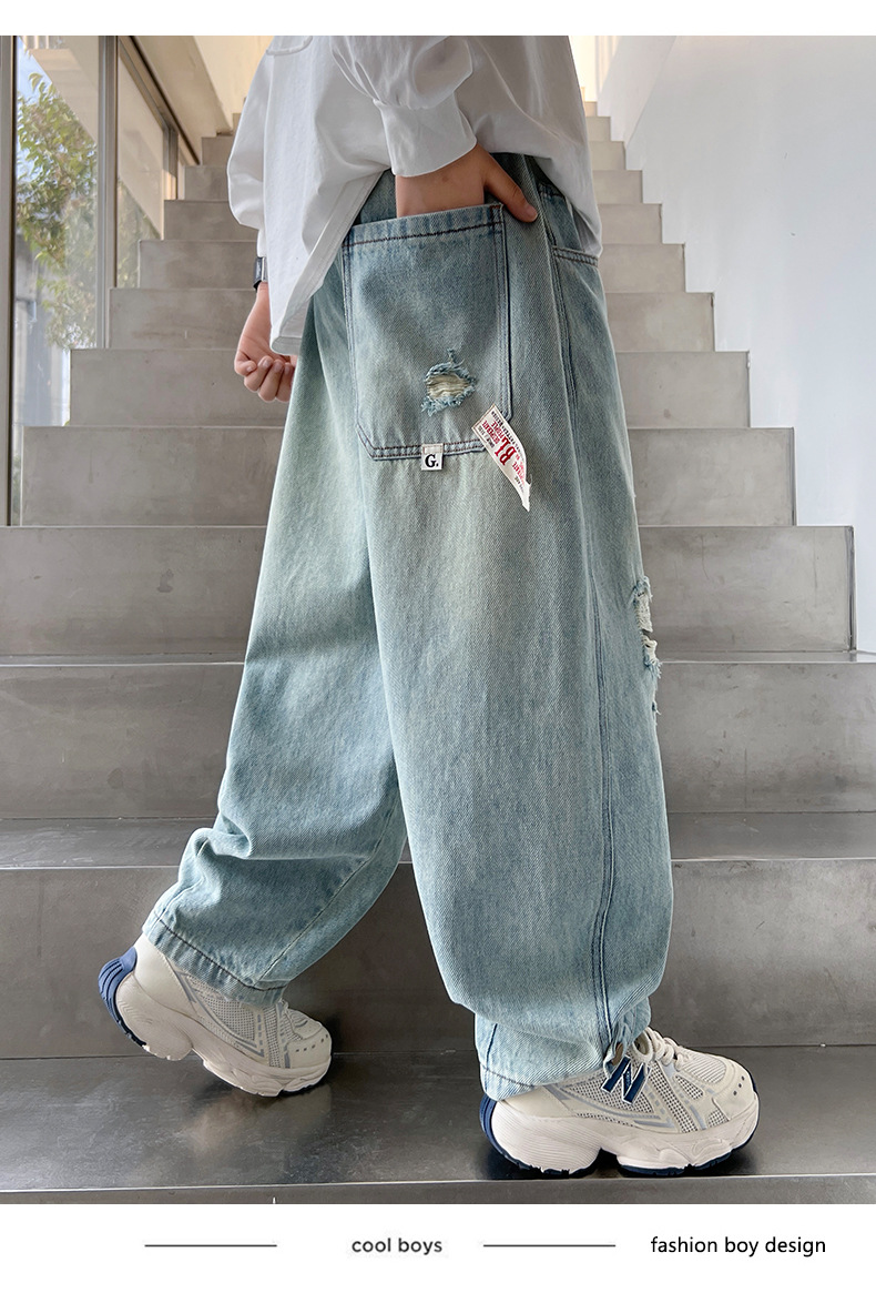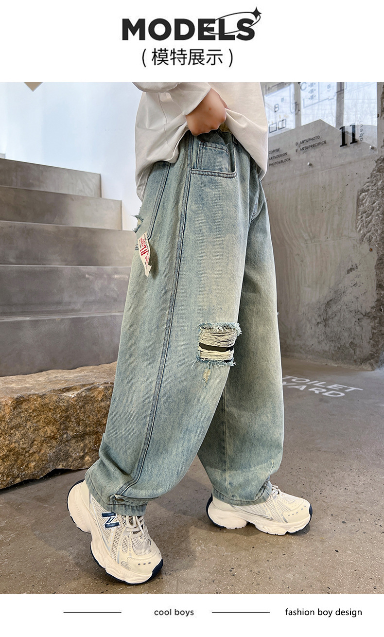 어린이 소년 봄 바지 2025 새로운 소년 바지 봄과 가을 청바지 캐주얼 중 큰 아이들스토어 가기