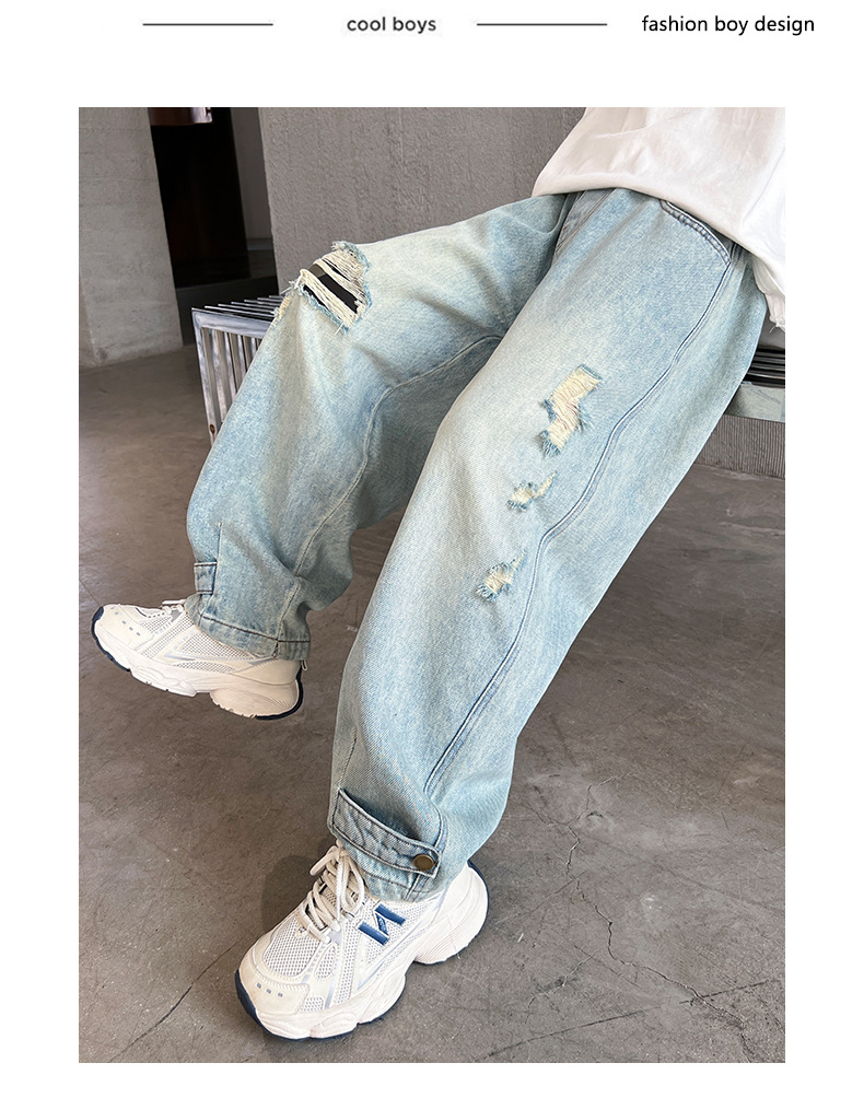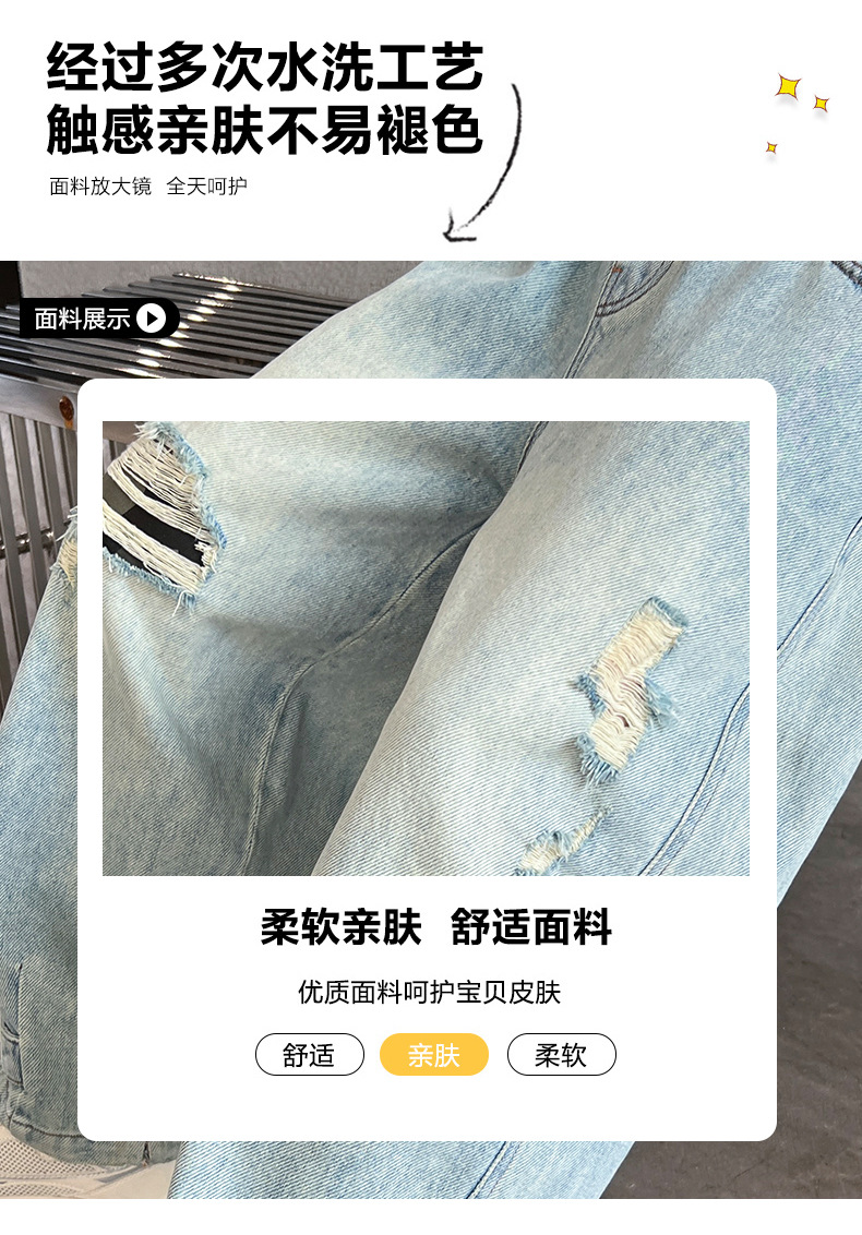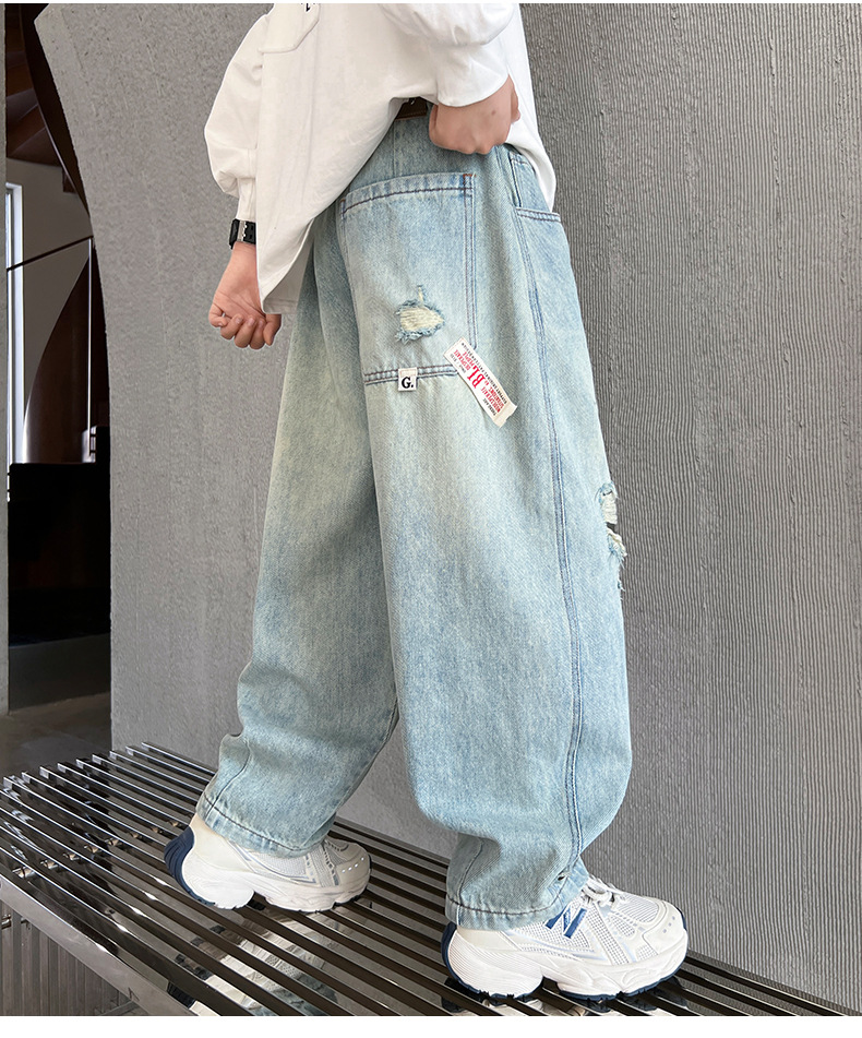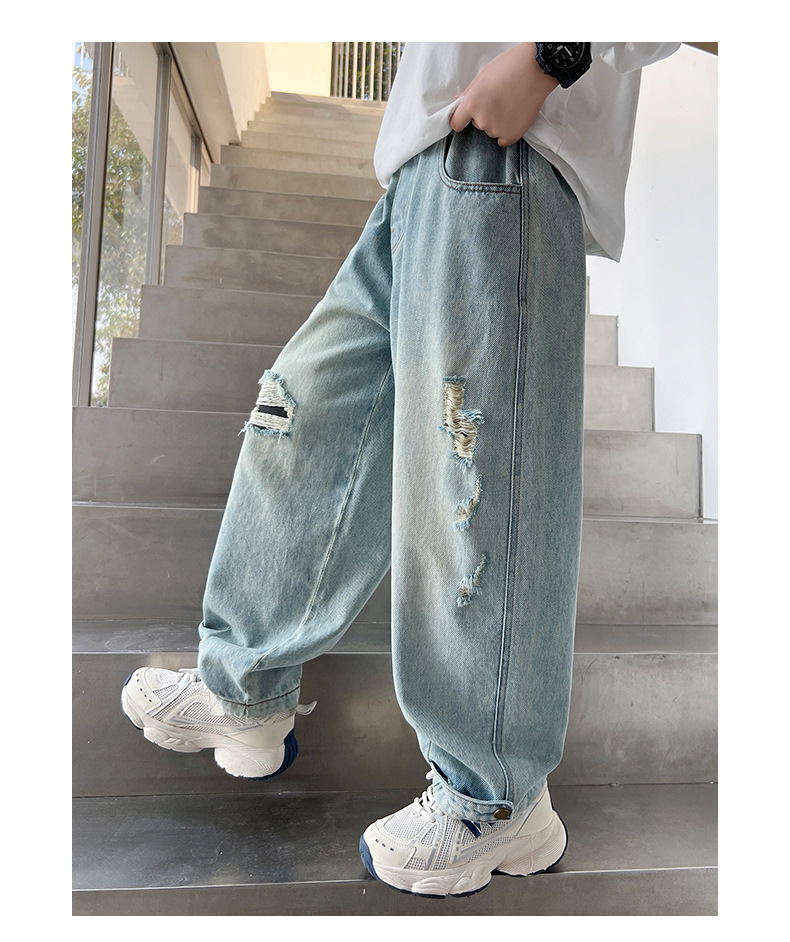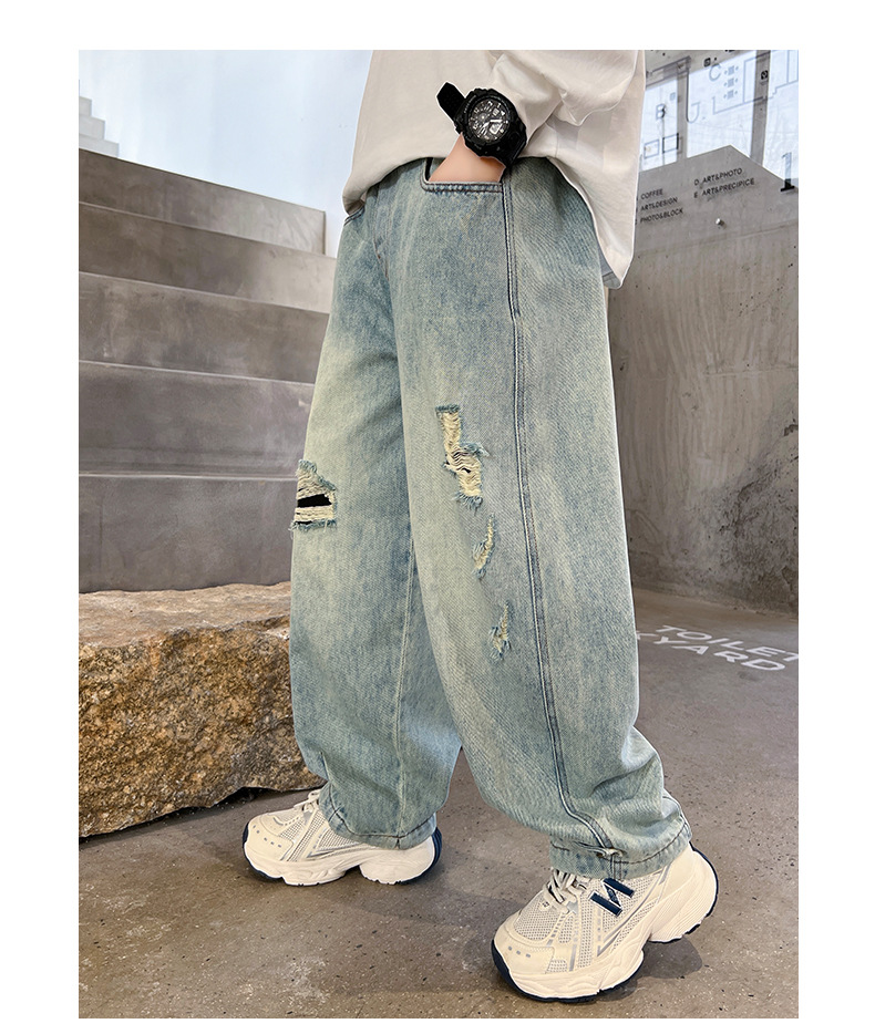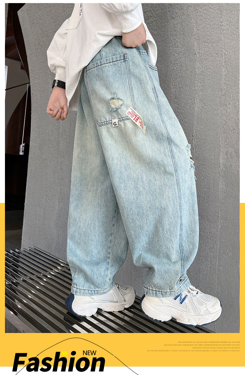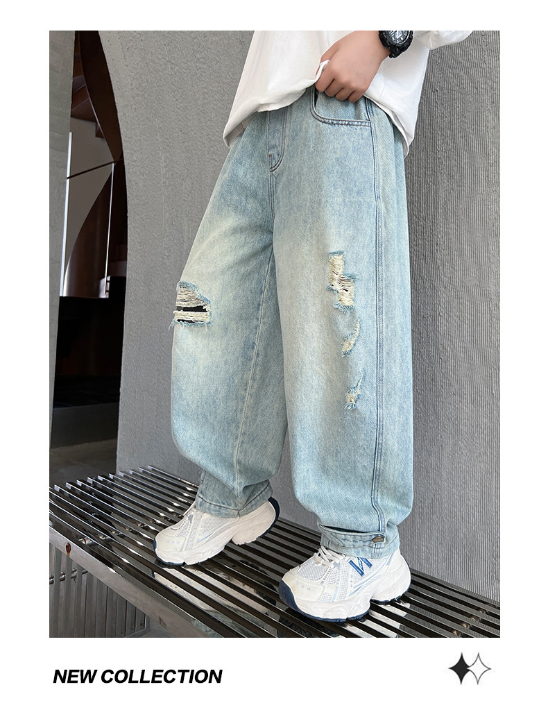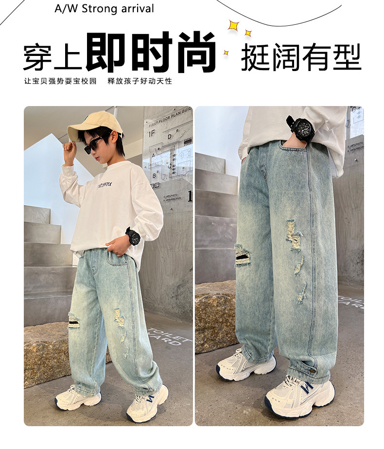 어린이 소년 봄 바지 2025 새로운 소년 바지 봄과 가을 청바지 캐주얼 중 큰 아이들스토어 가기