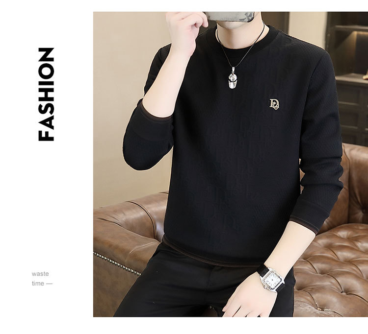 남자 하이 엔드 땀 2025 새로운 봄과 가을 유럽 패셔너블 캐주얼 긴팔 티셔츠 리퍼 잘 생긴 베이스 탑스토어 가기