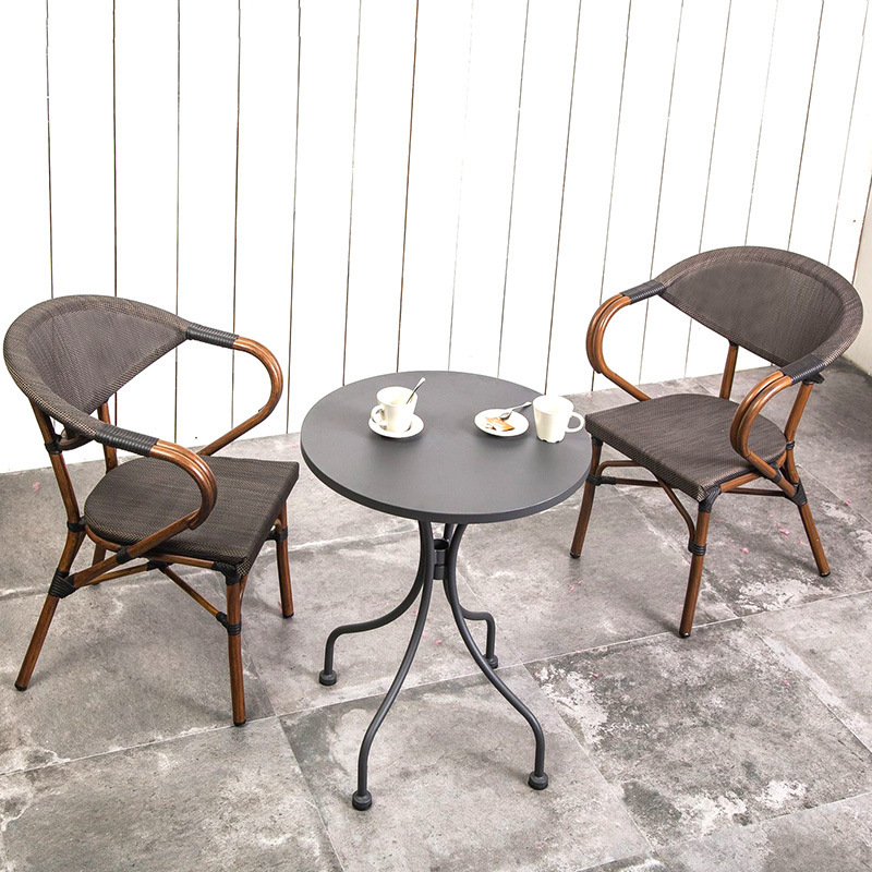 야외 테이블과 의자 조합 커피 숍 발코니 테이블과 의자 알루미늄 합금 레저 등나무 의자 우유 차 가게 야외 등나무 의자스토어 가기