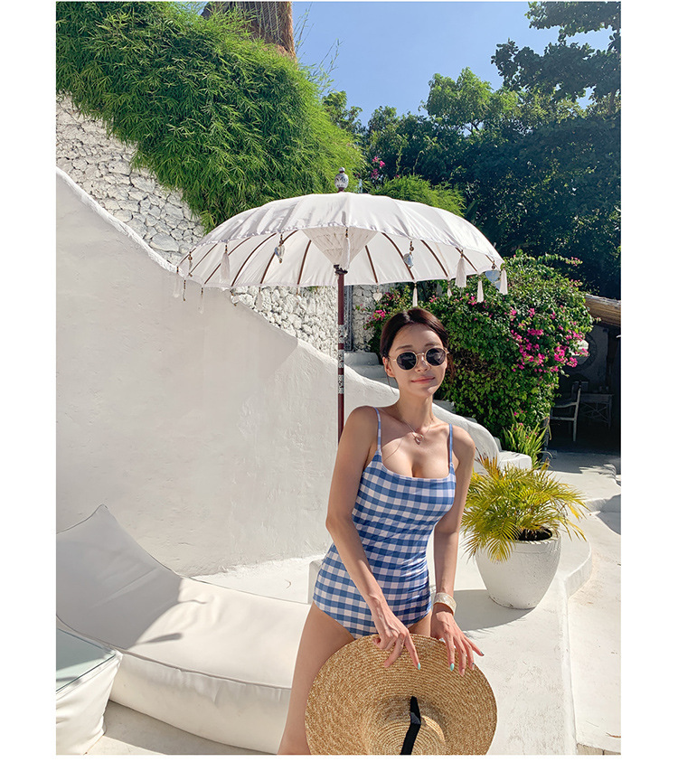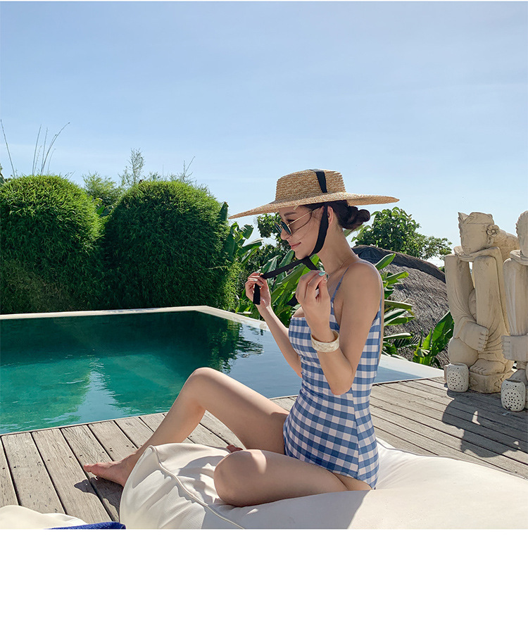 한국식 신학생 수영복 여성 성적 아름다운 뒷배 뒤쪽 슬림한 표정 유행 격자 보수 온천 비키니스토어 가기