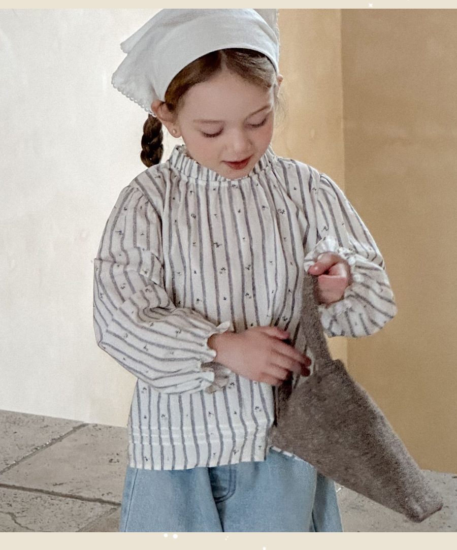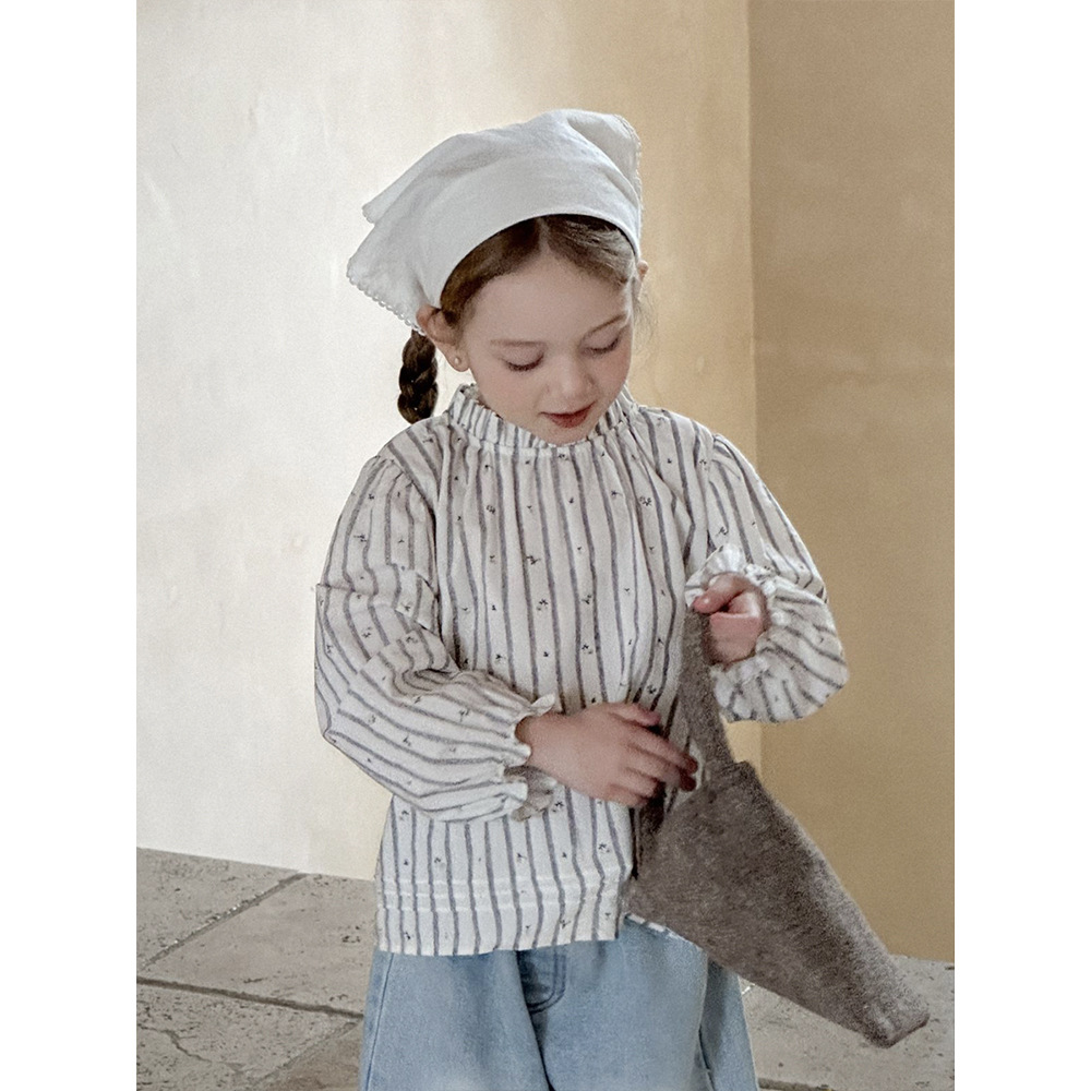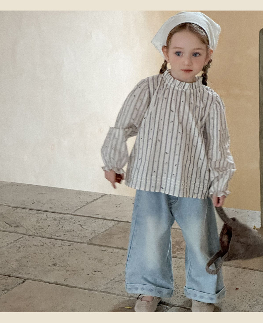 소녀 한국 스타일 아동복 2025 봄과 가을 프랑스 줄무늬 긴 소매 셔츠 어린이 세탁 청바지 아기 투피스 세트스토어 가기