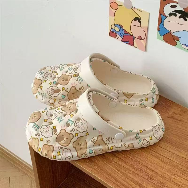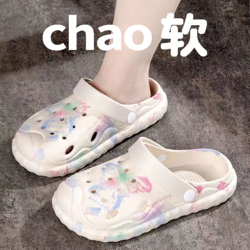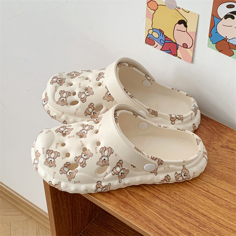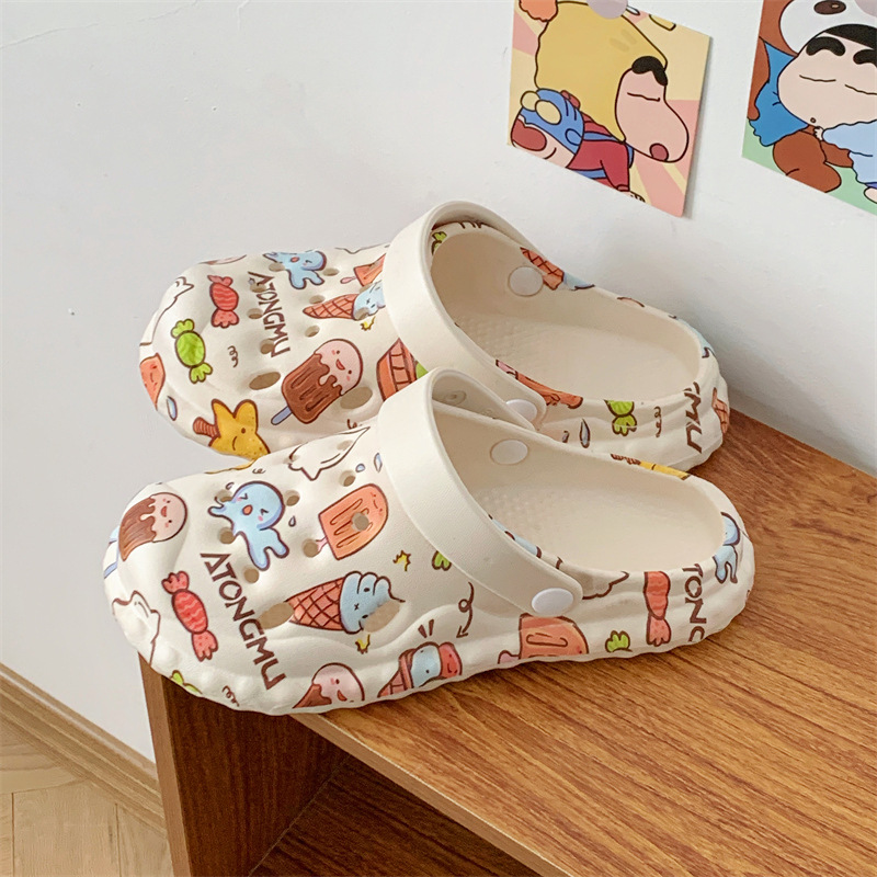 2025 슬립 온 슬리퍼 여성용 여름 외부 귀여운 실내 홈 미끄럼 방지 가정용 두꺼운 구멍 신발 여름