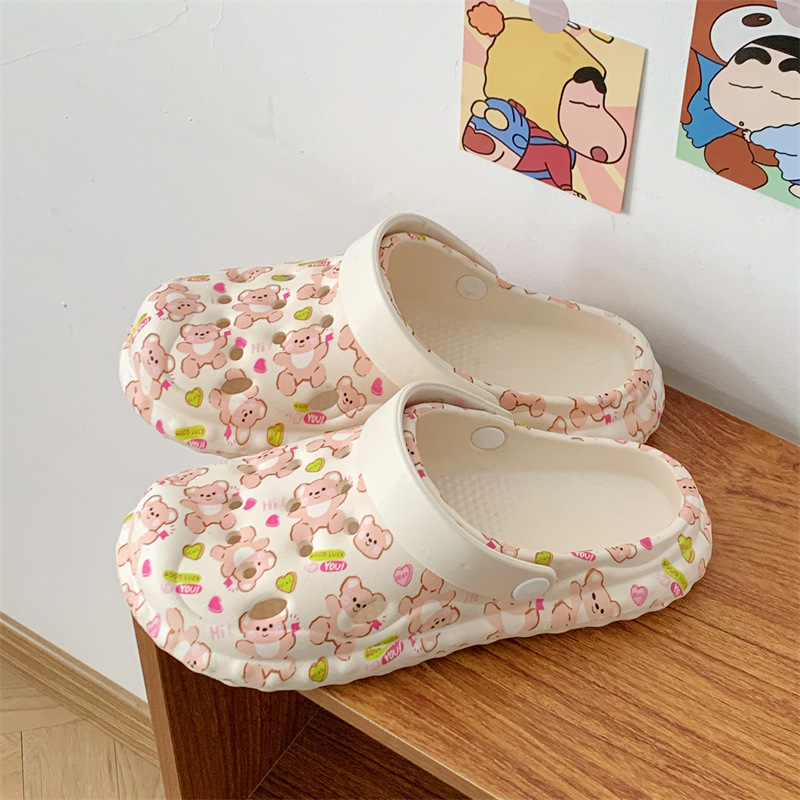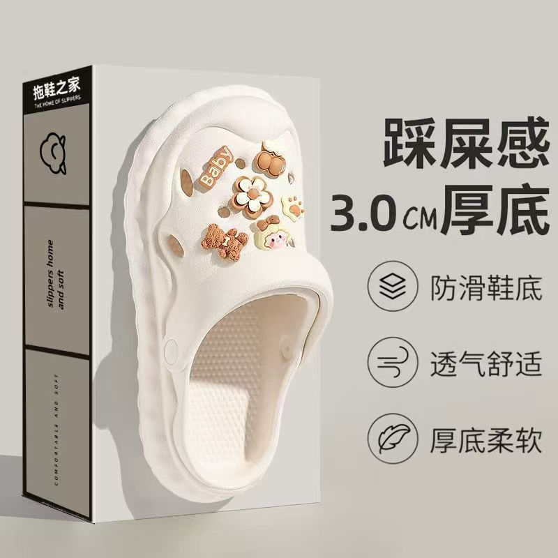 2025 슬립 온 슬리퍼 여성용 여름 외부 귀여운 실내 홈 미끄럼 방지 가정용 두꺼운 구멍 신발 여름스토어 가기