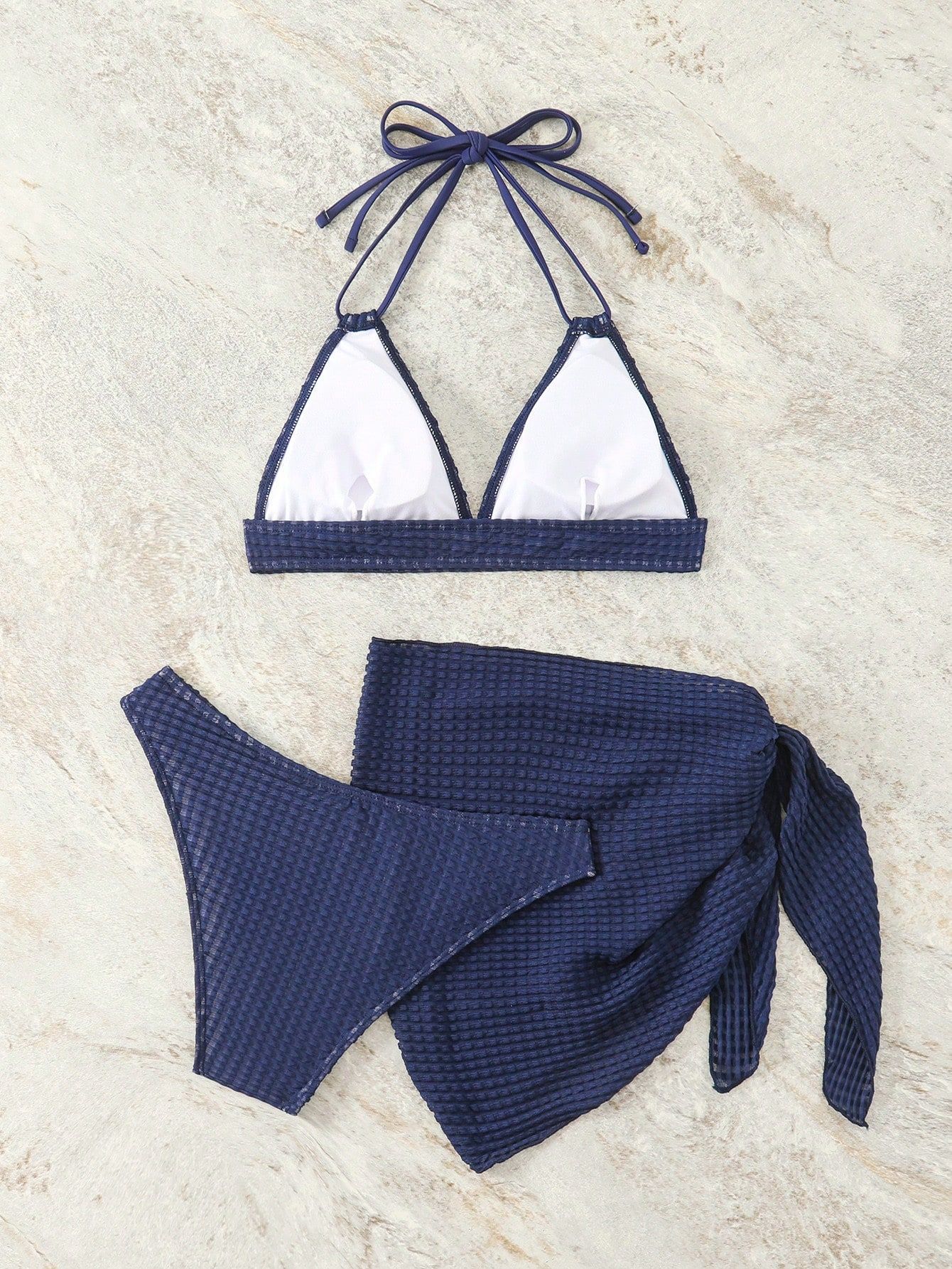 국경 간 여자 수영 3 피스 수영복 단색 백리스 비키니 여름 여성의 섹시한 비키니 SH847