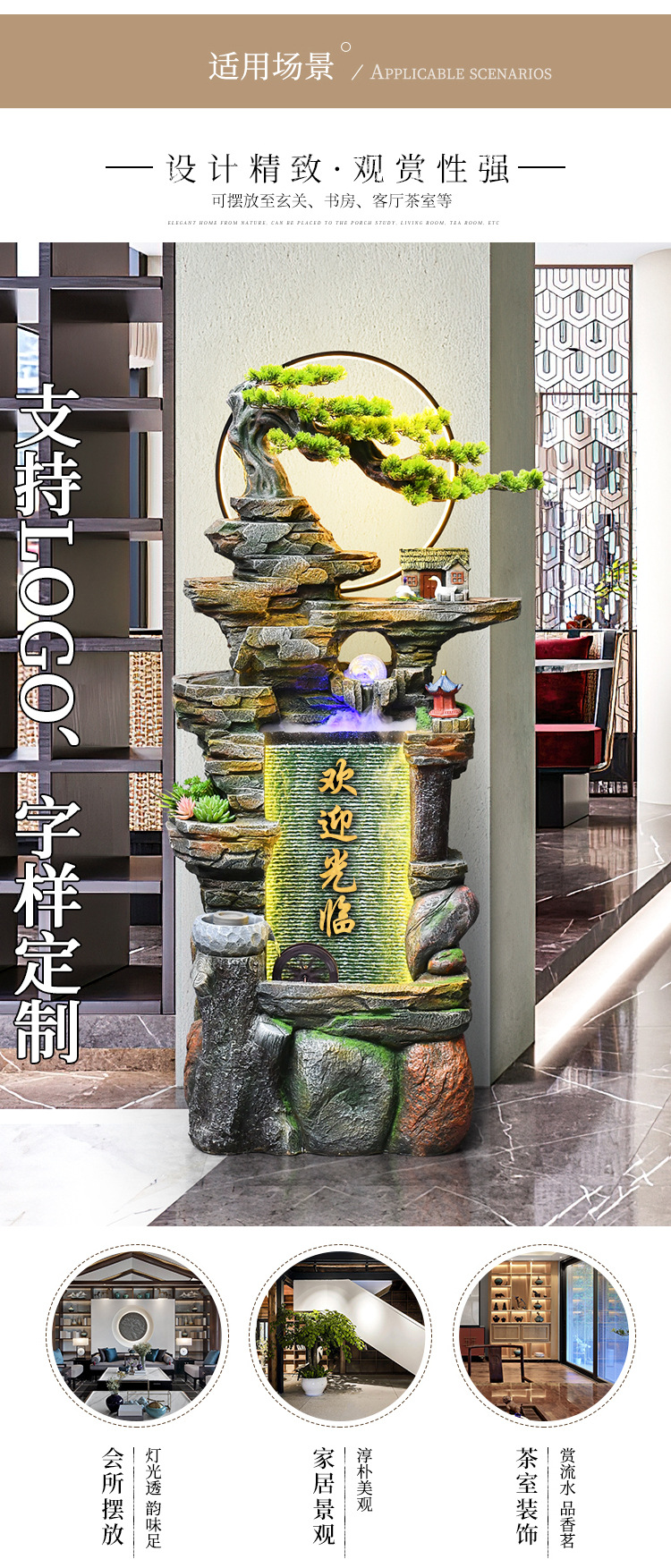 바위 흐르는 물 분수 장식 사무실 거실 순환 물 풍경 바닥 풍수 바퀴 장식 오프닝 집들이 선물스토어 가기