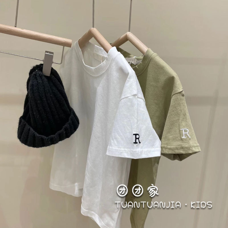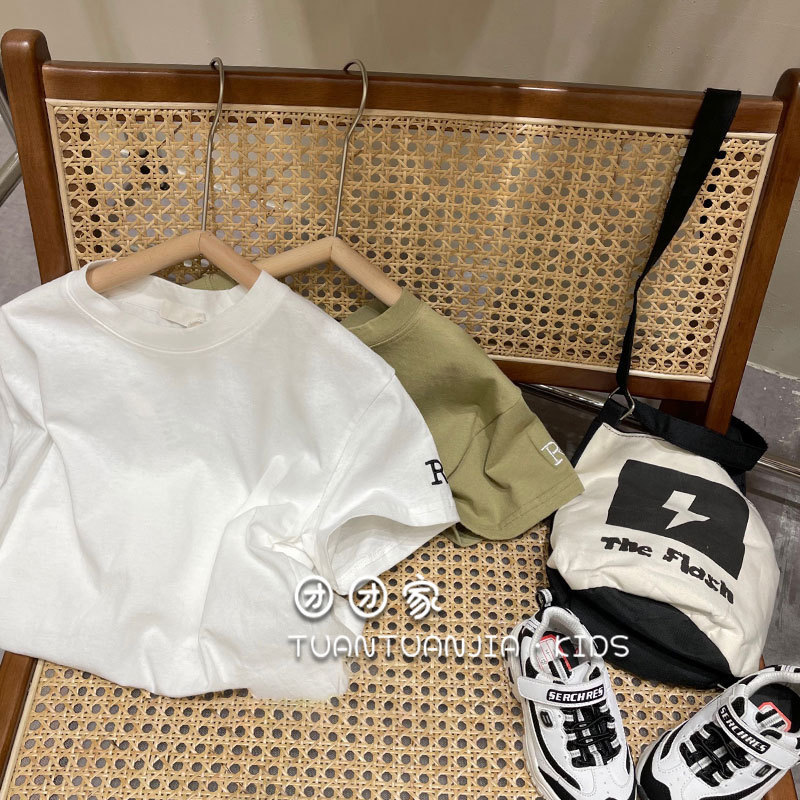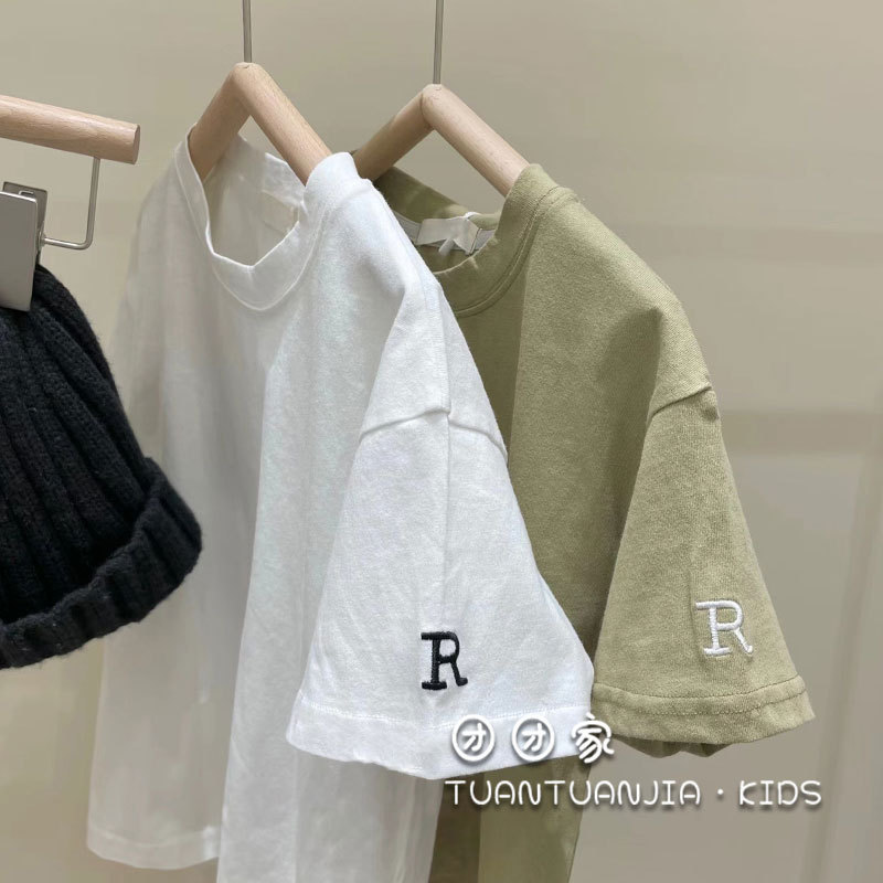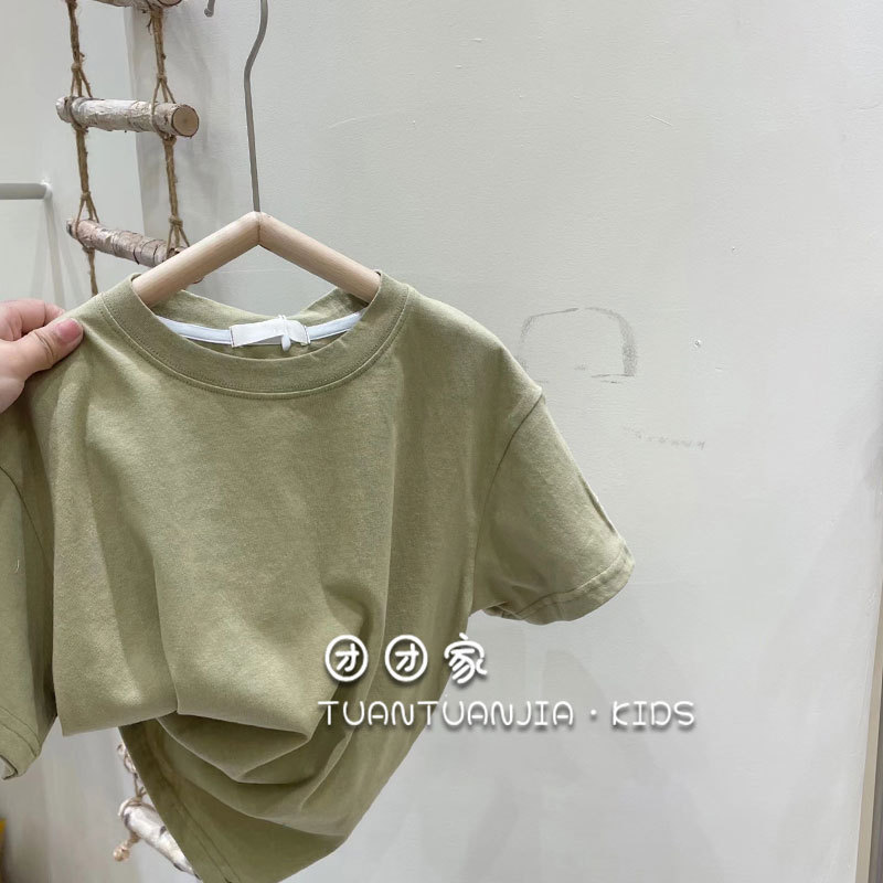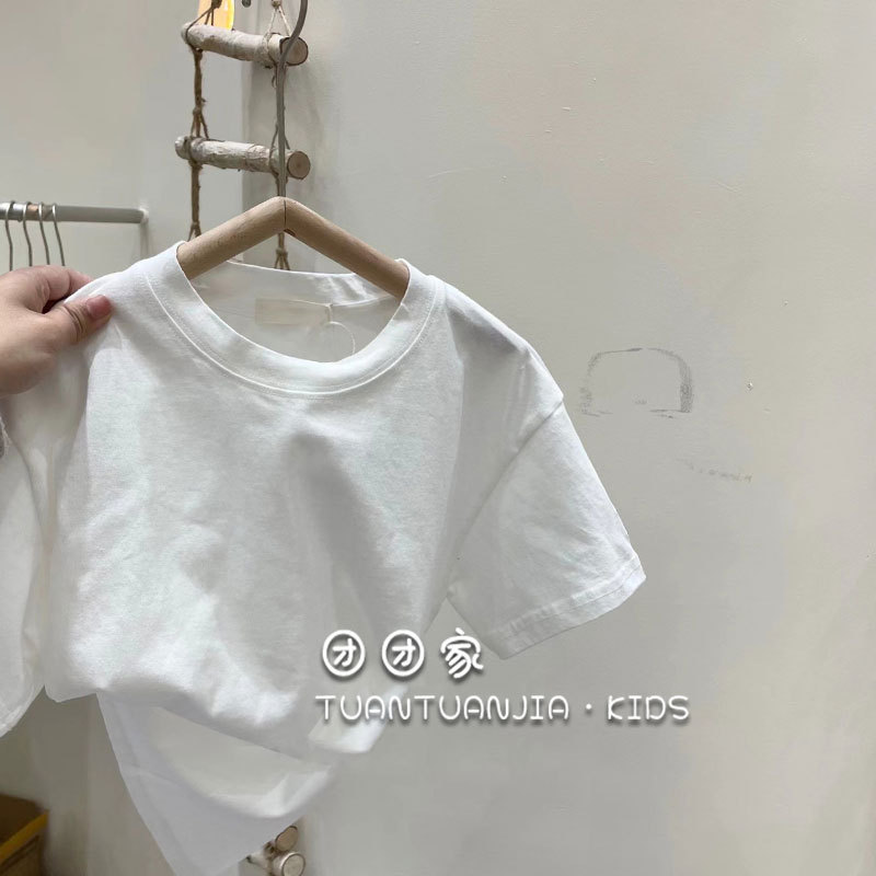 남학생 반팔 티셔츠 2025 새 여름 어린이 솔리드 컬러 코튼 티셔츠 대형 아동복 얇은 통기성 탑 트렌디 5스토어 가기