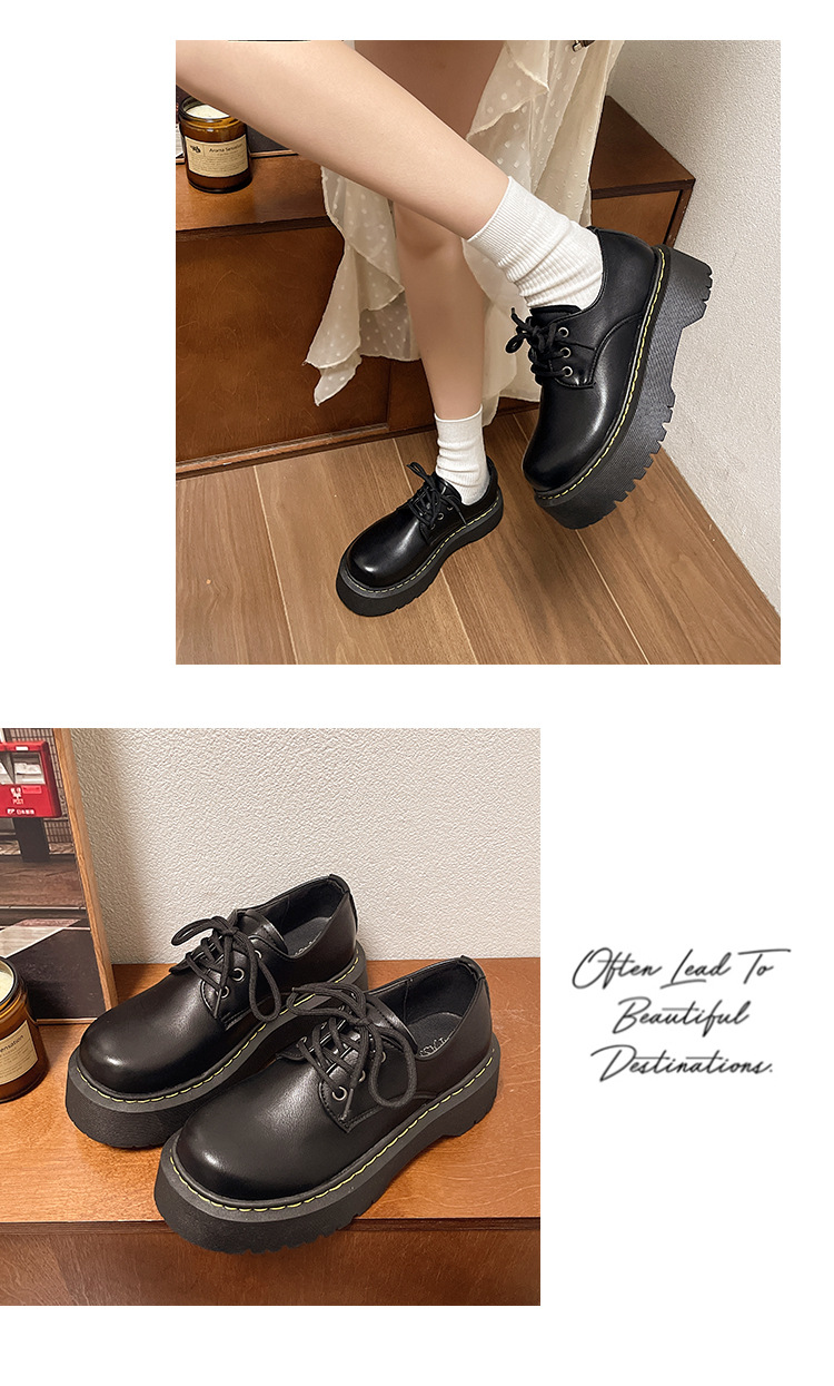 로퍼 2025 봄과 여름 둥근 발가락 얕은 입 영국 싱글 레이어 신발 여성의 작은 높이 높이기 두꺼운 밑창 작은 가죽 신발스토어 가기